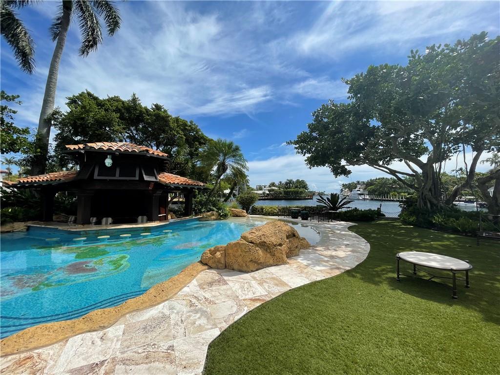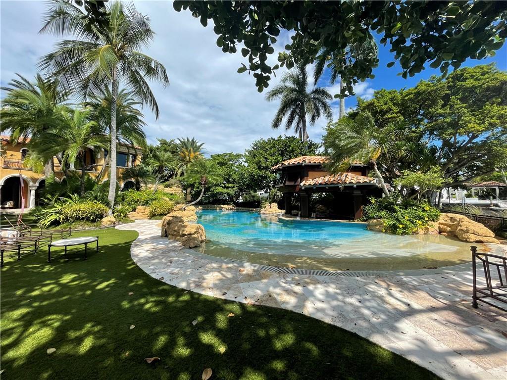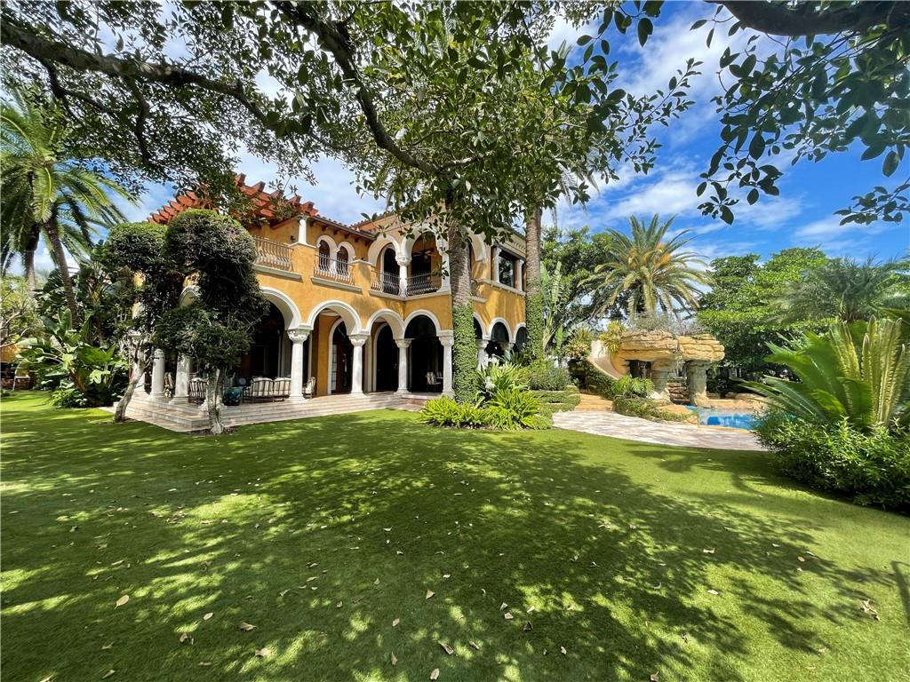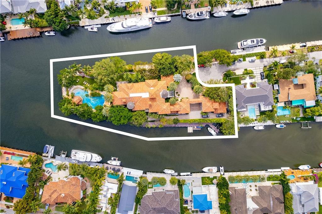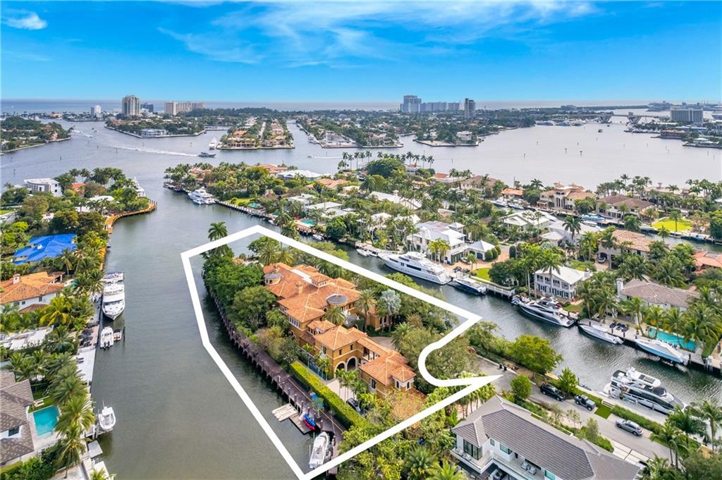 Mizner inspired Mediterranean point lot estate in the historic neighborhood of Rio Vista! Custom built property, privately tucked away on over an acre of land w/ lush landscaping,a true tropical paradise. Designed by Randall Stofft Architects, home features mahogany framed windows, theater, office, elevator, aquarium, guest house, exotic stone & intricate architectural millwork throughout, a 1-of-a-kind masterpiece. State of the art commercial grade lighting, security & music systems. Relax in the generous master suite w/ his & hers bathrooms, closets, sitting area & wraparound terrace overlooking the water. Sit outside by a resort-style pool & waterslide, swim up bar & tanning shelf. Easy ocean access w/ +/- 700' of WF perfect for the avid boater. Close to shops, dining, Airport & beach.