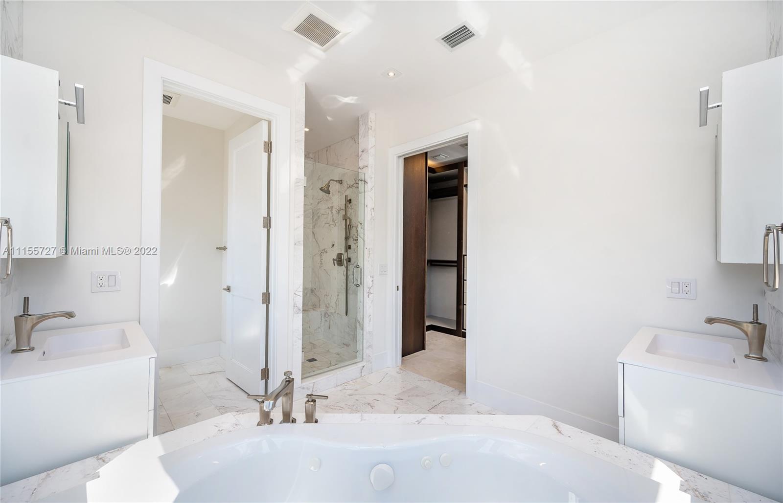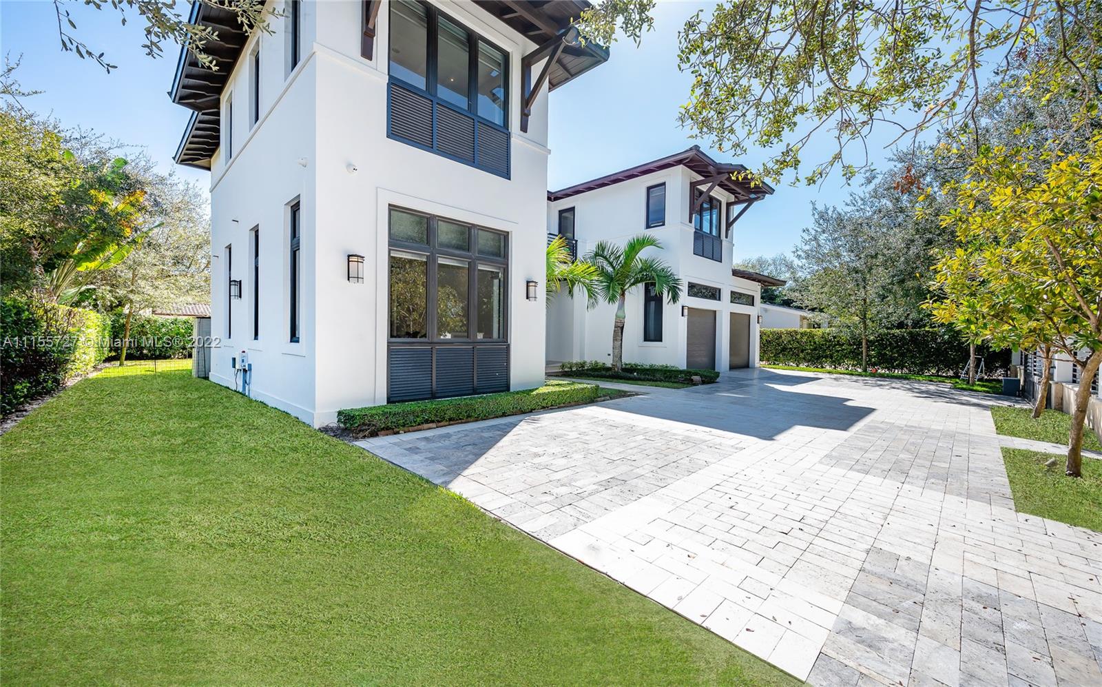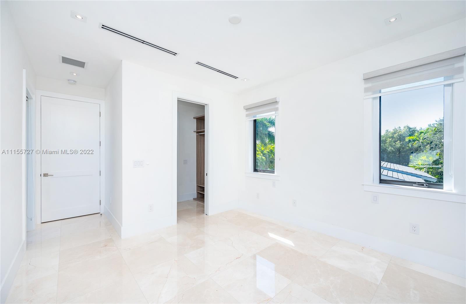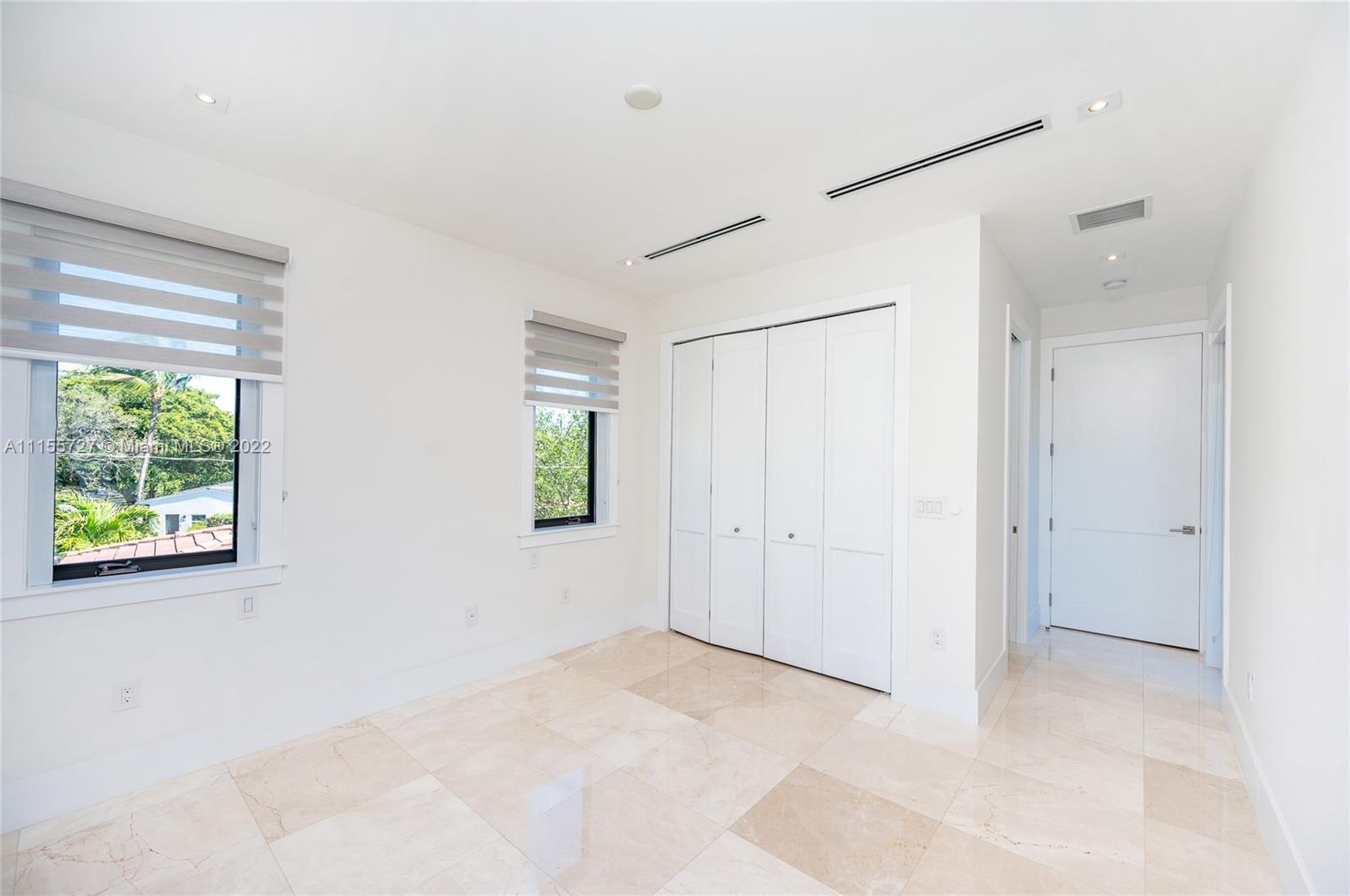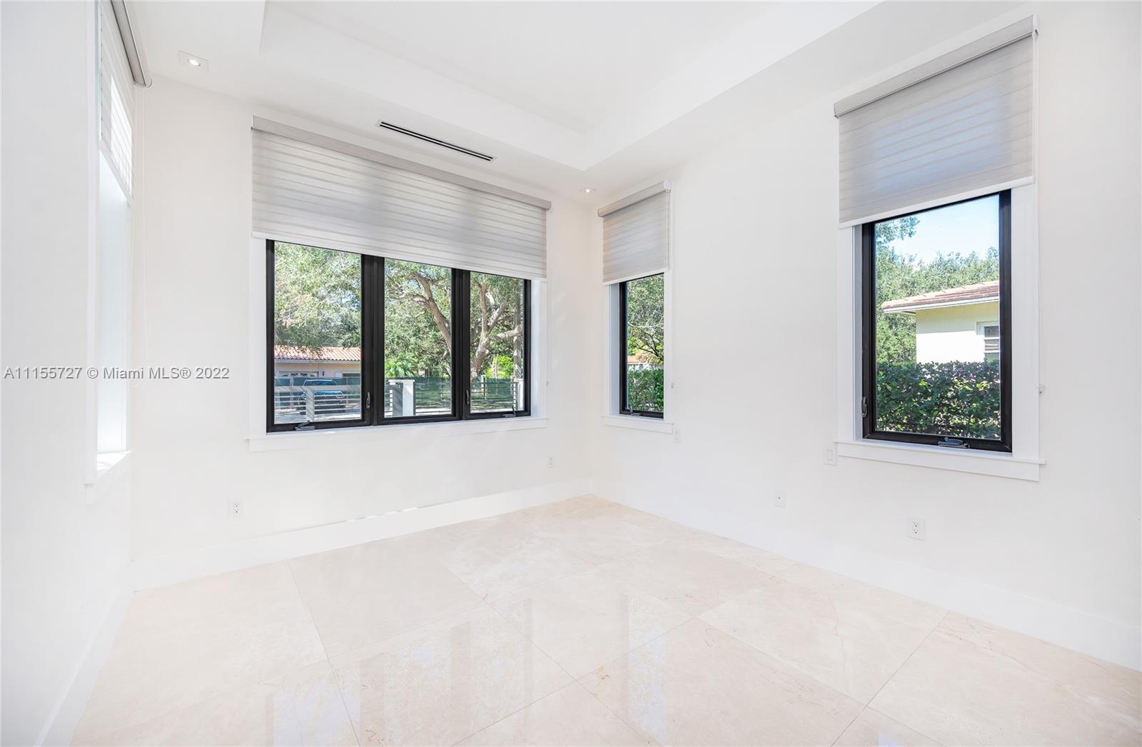 Beautiful modern house, backyard has space for a POOL. 4 Bed / 4.5 Bath nestled in one of the most desirable areas of Coral Gables, on a very quiet street, zero traffic, lined with trees producing a lush canopy. Conveniently located near US-1, Doctors Hospital, Merrick Park & Riviera Country Club. Built in 2018 with all the details & materials of modern architecture: Flat tile roof, Marble floors, Quartz countertops, ceramics in bathrooms, Italian wooden closets, impact resistant floor to ceiling windows & doors, recessed lighting, linear diffusers, motorized linen shades in living area, zebra shades & blackouts in all bedrooms. All 4 bedrooms have en suite bathrooms. 1 bedroom is on the 1st floor. Laundry Room is located on 2nd floor. Home has been impeccably maintained and move-in ready.