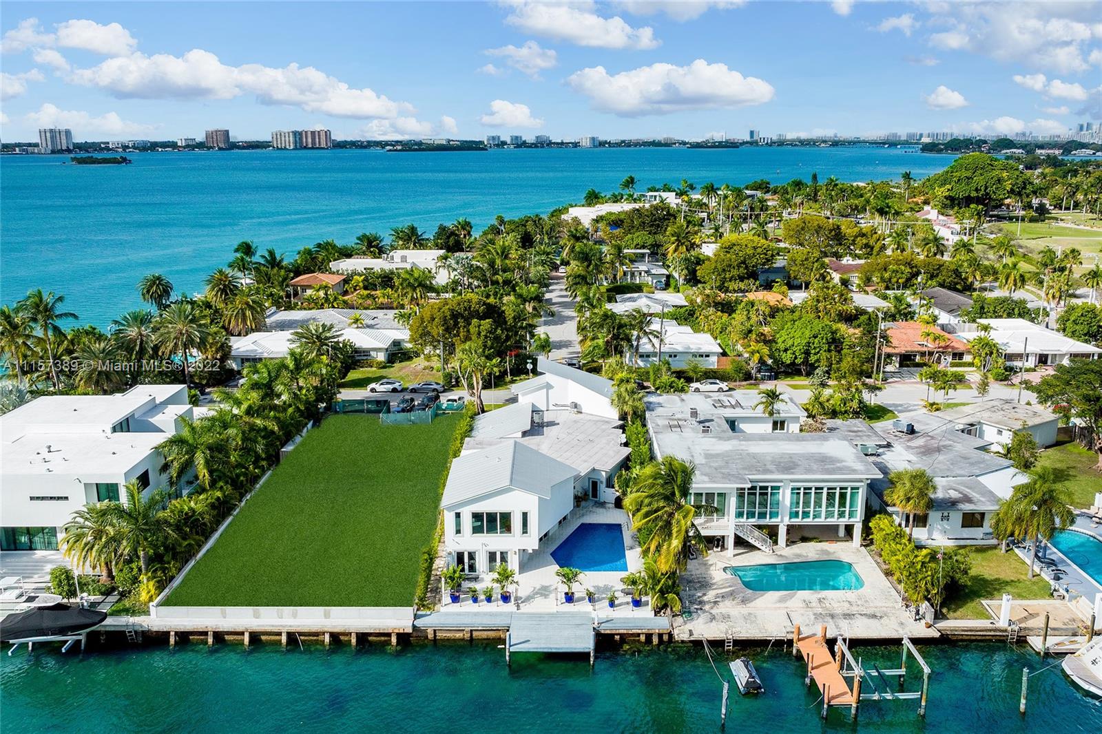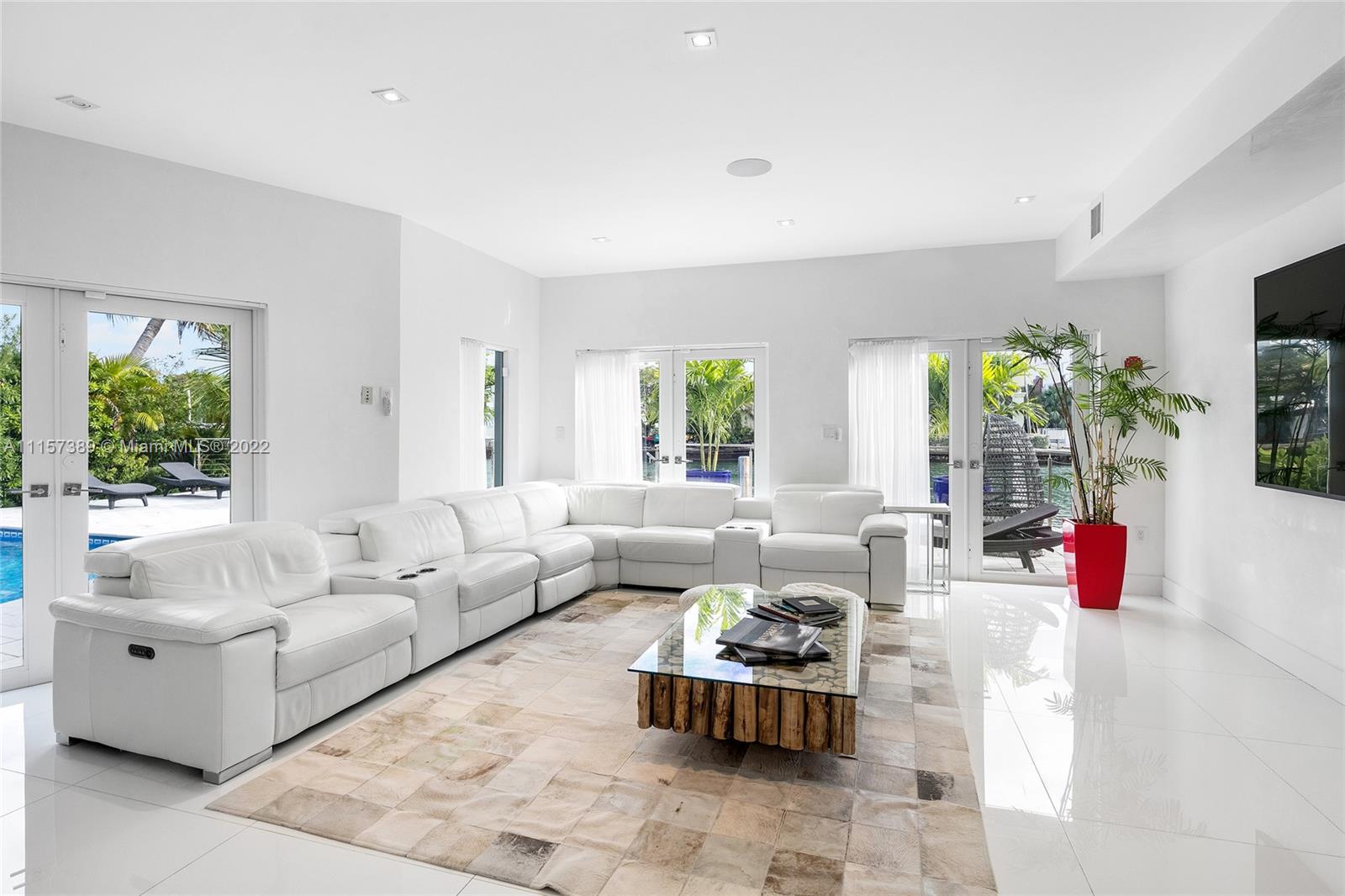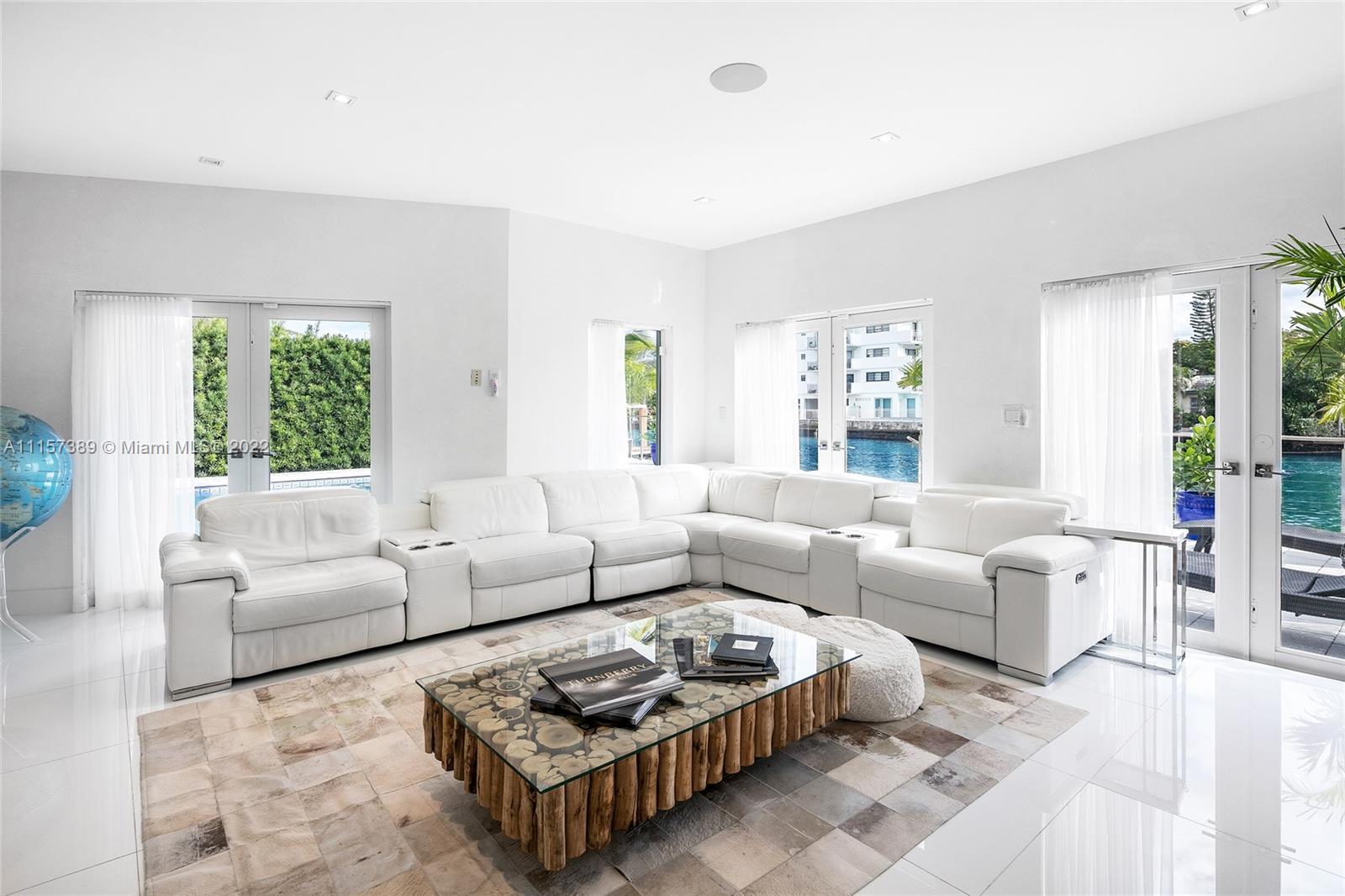 A truly amazing opportunity to purchase a stunning contemporary 2-story waterfront home in guard-gated Normandy Isles. The home features 6BR/5+1 BA, white glass tile floors throughout, open flowing dining & living room layout surrounded by walls of glass w/amazing bay & sunset views, a movie theater & 1,300 bottle temperature-controlled wine room. Sleek chef’s kitchen sports top-of-the-line Thermador appliances, quartz center island w/eat-in seating & custom cabinetry. A spacious 2nd floor principal suite offers direct views to the Bay, a custom walk-in closet & principal bathroom w/sunken tub & glass rain shower. Additional features include a private guest suite, large pool & deck to entertain, a private dock, open Biscayne Bay & Ocean access. Hurricane impact windows & doors. Must see!