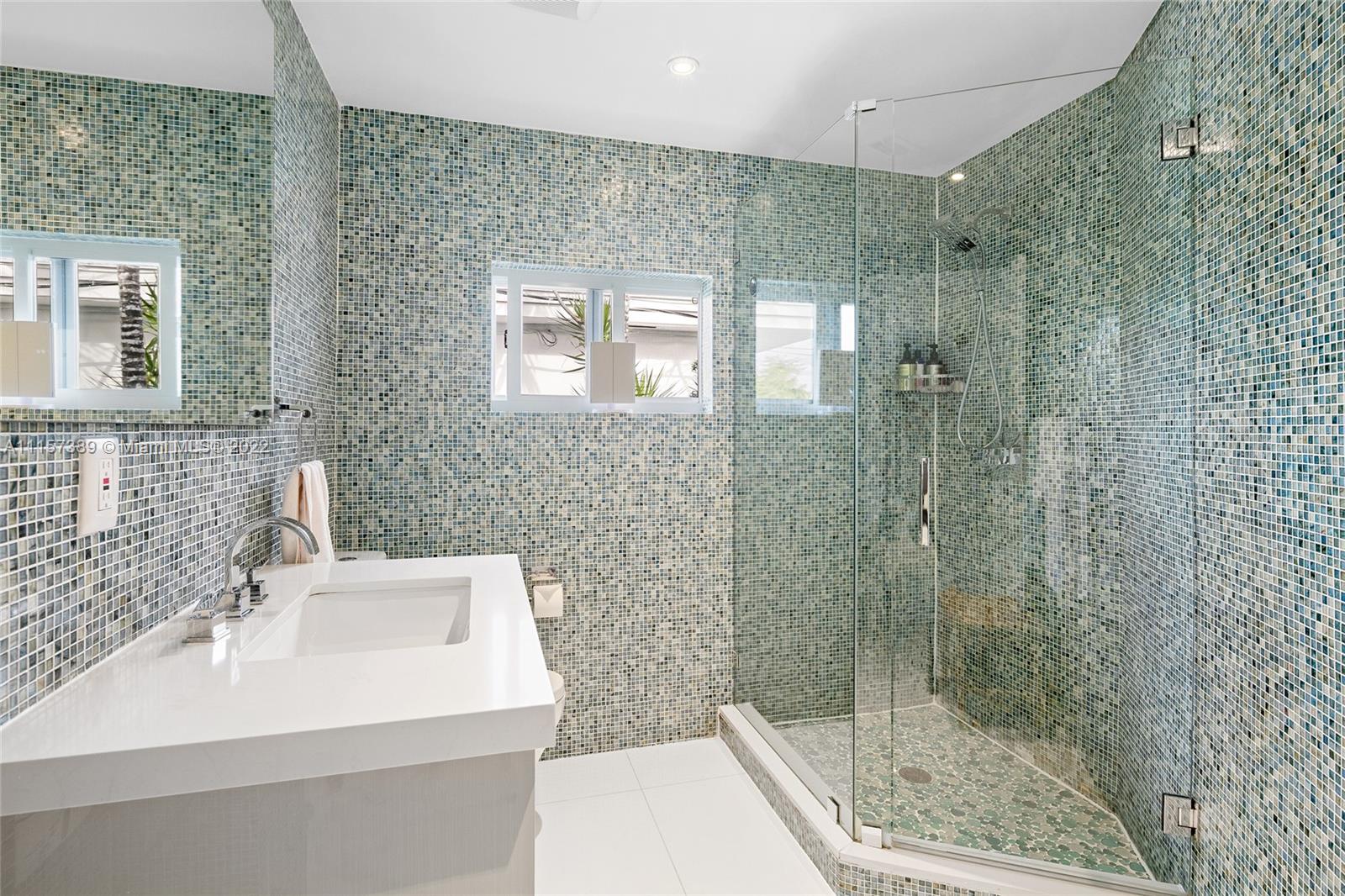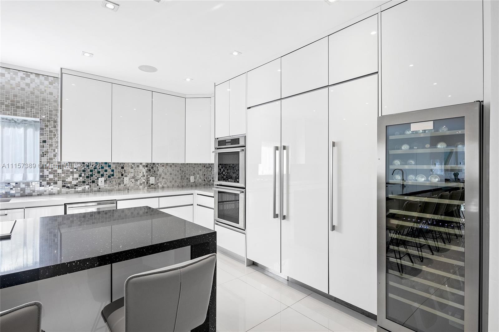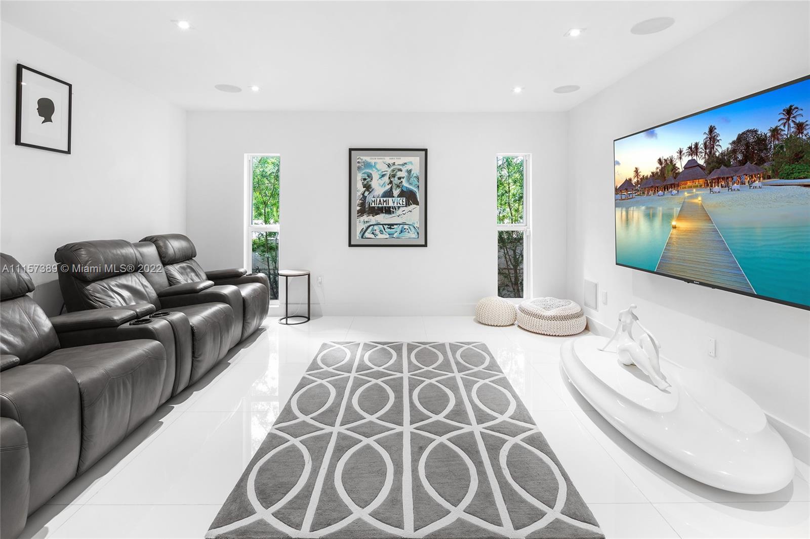 A truly amazing opportunity to purchase a stunning contemporary 2-story waterfront home in guard-gated Normandy Isles. The home features 6BR/5+1 BA, white glass tile floors throughout, open flowing dining & living room layout surrounded by walls of glass w/amazing bay & sunset views, a movie theater & 1,300 bottle temperature-controlled wine room. Sleek chef’s kitchen sports top-of-the-line Thermador appliances, quartz center island w/eat-in seating & custom cabinetry. A spacious 2nd floor principal suite offers direct views to the Bay, a custom walk-in closet & principal bathroom w/sunken tub & glass rain shower. Additional features include a private guest suite, large pool & deck to entertain, a private dock, open Biscayne Bay & Ocean access. Hurricane impact windows & doors. Must see!