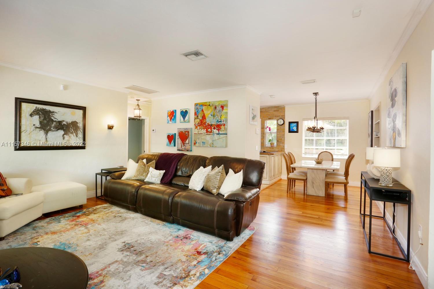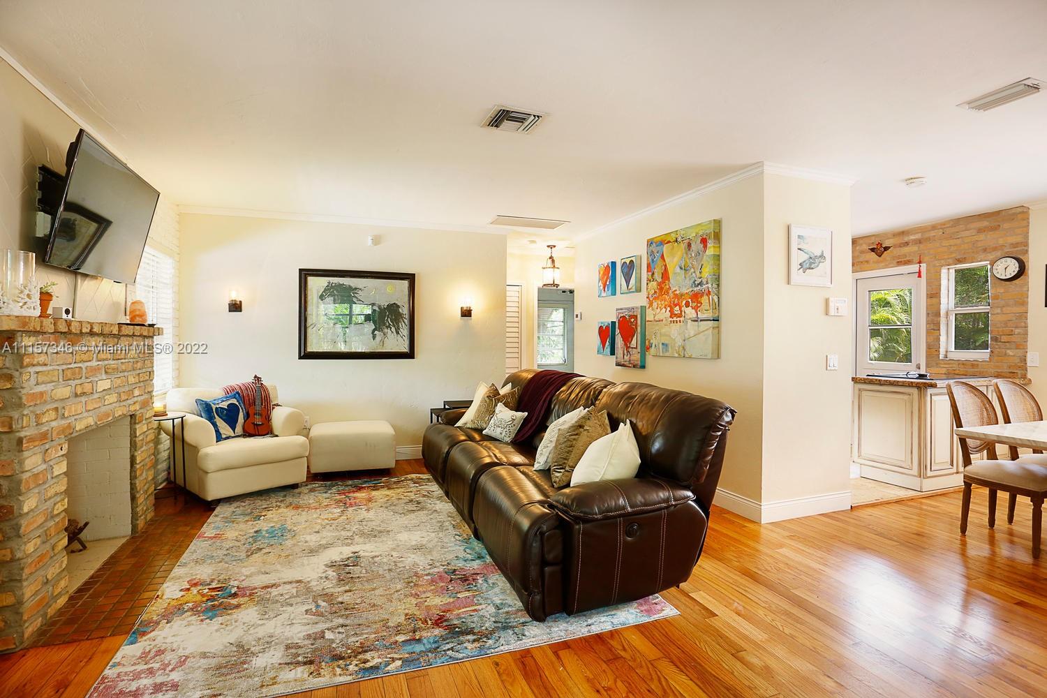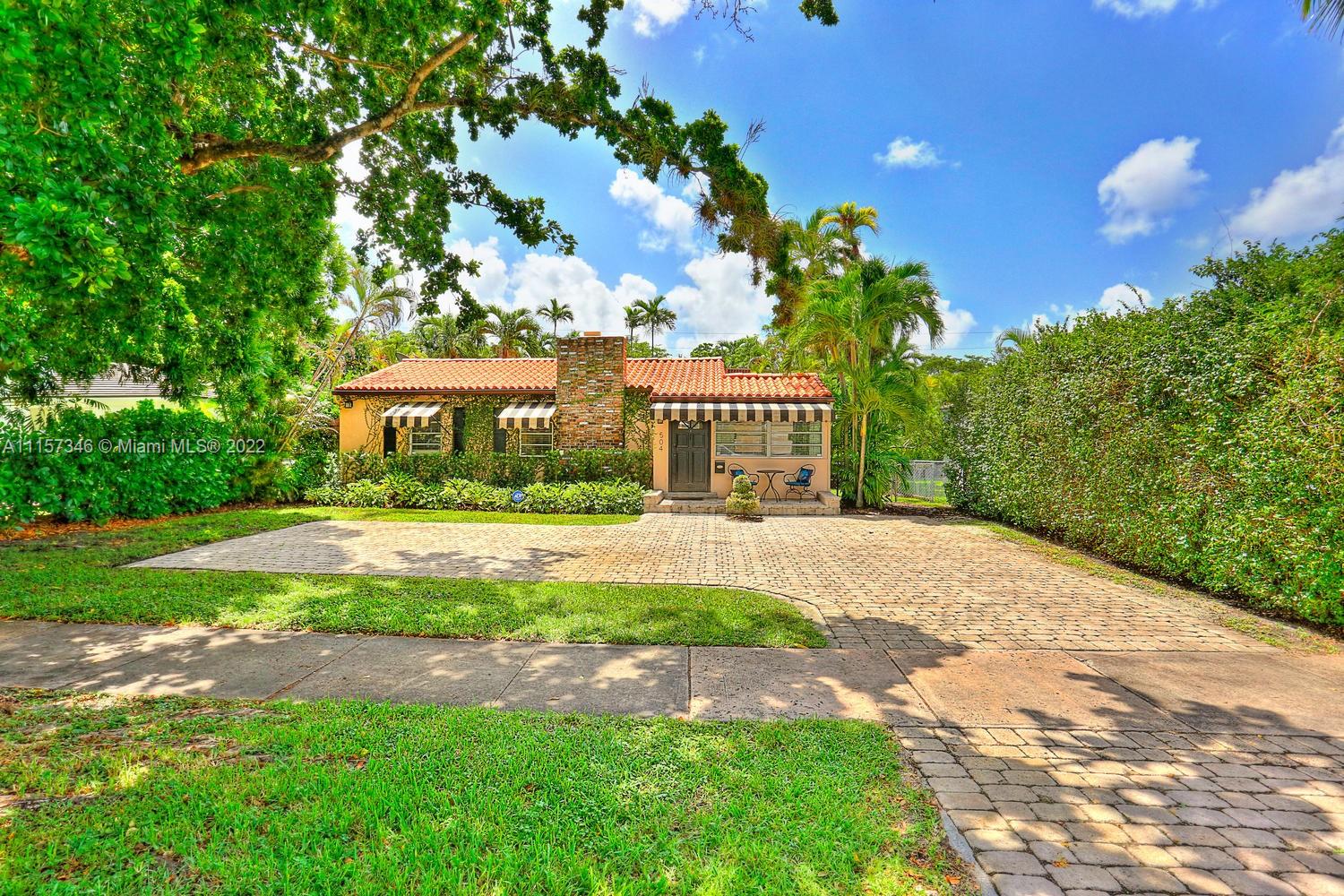 Gables home, filled with great design choices, a beautiful renovated kitchen and bath. Custom cabinets, stainless steel appliances, smooth cook top range w/microwave and conventional oven, granite counters. Kitchen opens to back deck. Closets have been maximized and customized! Lovely lighting features throughout. Spacious living room, fireplace and sunroom/den with open beam ceiling. Glass enclosed shower. Hardwood floors. Laundry room. Oversized, private yard, front porch, spacious driveway, lush landscaping and mature trees. Municipal water and sewer. Amazing location that checks off every box: lovely tree lined street, walking distance to Miracle Mile, fine dining and shopping just minutes from your door. Welcome home!