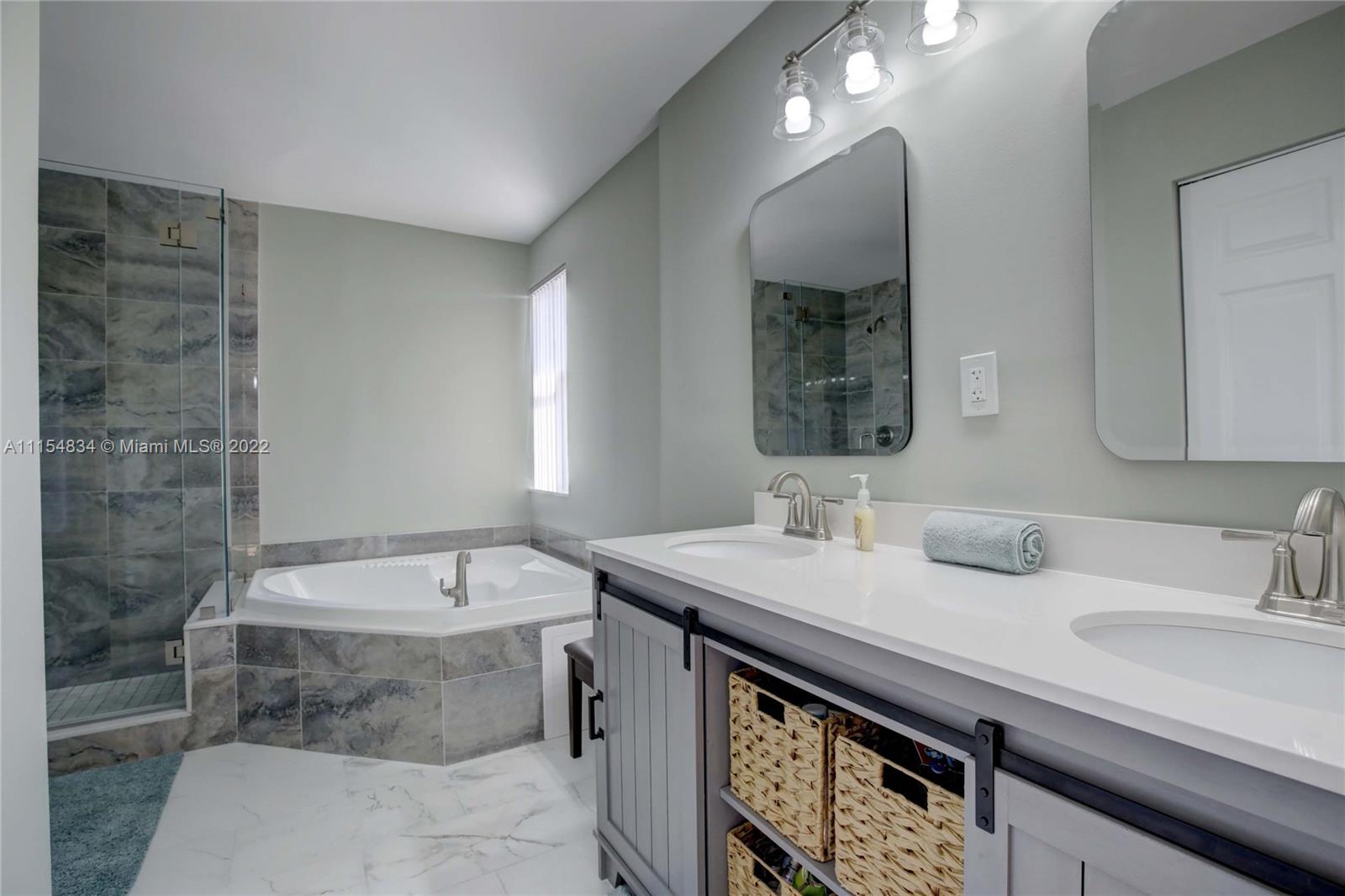 Spacious 3 Bed 2.5 Bath 2 STORY Pool Home•INTERIOR FEATURES: NEW 20x20 Tile on Lower Level•Granite Tops & Back Splash in Kitchen w/Granite Snack Counter at Pass through•Black Appliance Pkg•36" Raised Panel Honey Oak "Crowned" Cabinets•Double Door Pantry•Pot&Pan Drawers•Hi Hat Lighting•6" Baseboards•Crown Moldings Throughout•Nice Neutral Interior Paint•French Doors to Patio/Pool•Powder Room w/Upgraded Vanity/Lighting/Plumbing•Wood Floors on Upper Level•"Barn Door" to Just Completed Master Bath Renovation•Jaccuzi Tub•Framless Shower Doors•New Dual Sink Vanity•New Tile on Floor & Walls•New Lighting/Plumbing••EXTERIOR FEATURES: ACCORDION SHUTTERS•Freeform Pool•HUGE Concrete Pool Deck•Covered Patio•Fully Fenced Yard•Loads of Palm Trees•HUGE Lot•Cul de Sac•MORE!!