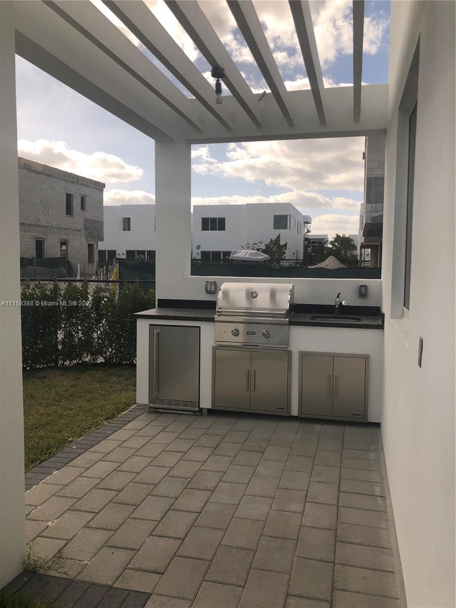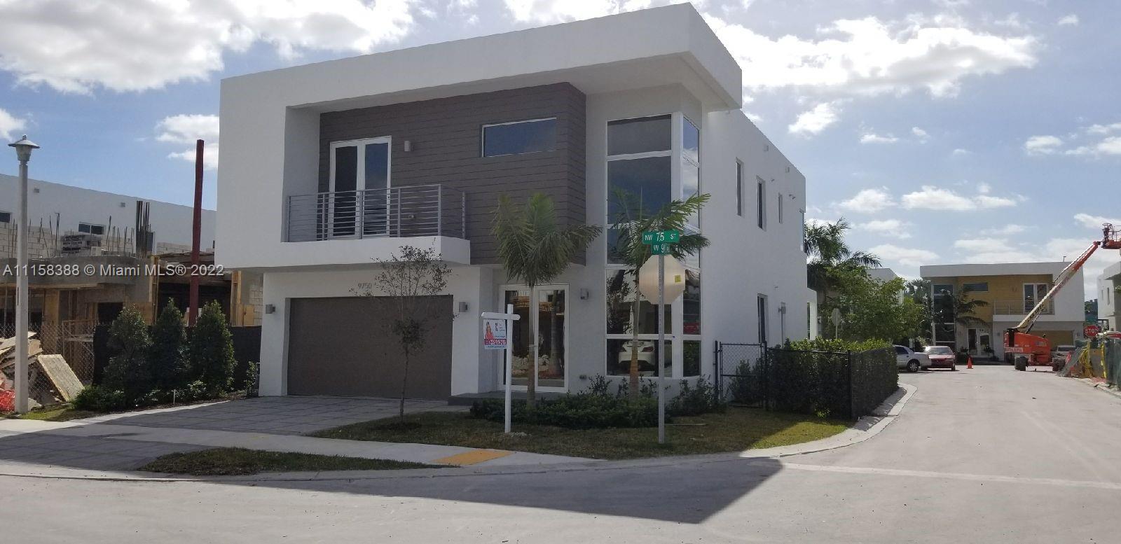 Modern Doral 45 two story home featuring 5bed/5baths. 1st Floor Bedroom. High Ceilings. Formal Living. Formal Dining. Family Room. 2nd Floor Laundry Room. Modern wood floors on stairway and second floor. 30 x 30 Porcelain Floors throughout 1st floor. Bosch Appliances & Quartz countertops. Gated community with 24/7 watch guard. Private pool w/ built in BBQ. Community pool, BBQ Gazebo. Access to clubhouse which includes fitness center, children's playroom, fitness center, business center, oversized pool, sun deck & spa. No back or side neighbors. Lots of Privacy.