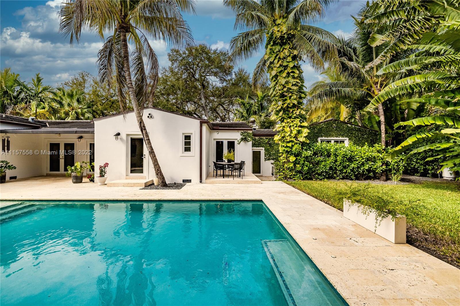 Welcome to Three Oaks! This beautifully updated trophy pool home is canopied under 3 magical majestic oaks, for the ultimate in indoor-outdoor living! Vaulted living with fireplace, updated gourmet chef’s eat-in kitchen with soaring beamed ceiling, vaulted dining and media room with double French doors to lushly landscaped terrace and stunning rear gardens with summer kitchen, gorgeous step-entry pool and veranda. Great privacy: split bedrooms and an incredible main suite retreat with gigantic spa-like bath with double shower, two elongated vanities, soaking tub, extra-large walk-in closet and double French doors to the pool for a midnight dip! Nicely updated with impact windows-doors, updated electric-plumbing, beautiful laundry room, large 2 car garage, surround sound inside and out!
