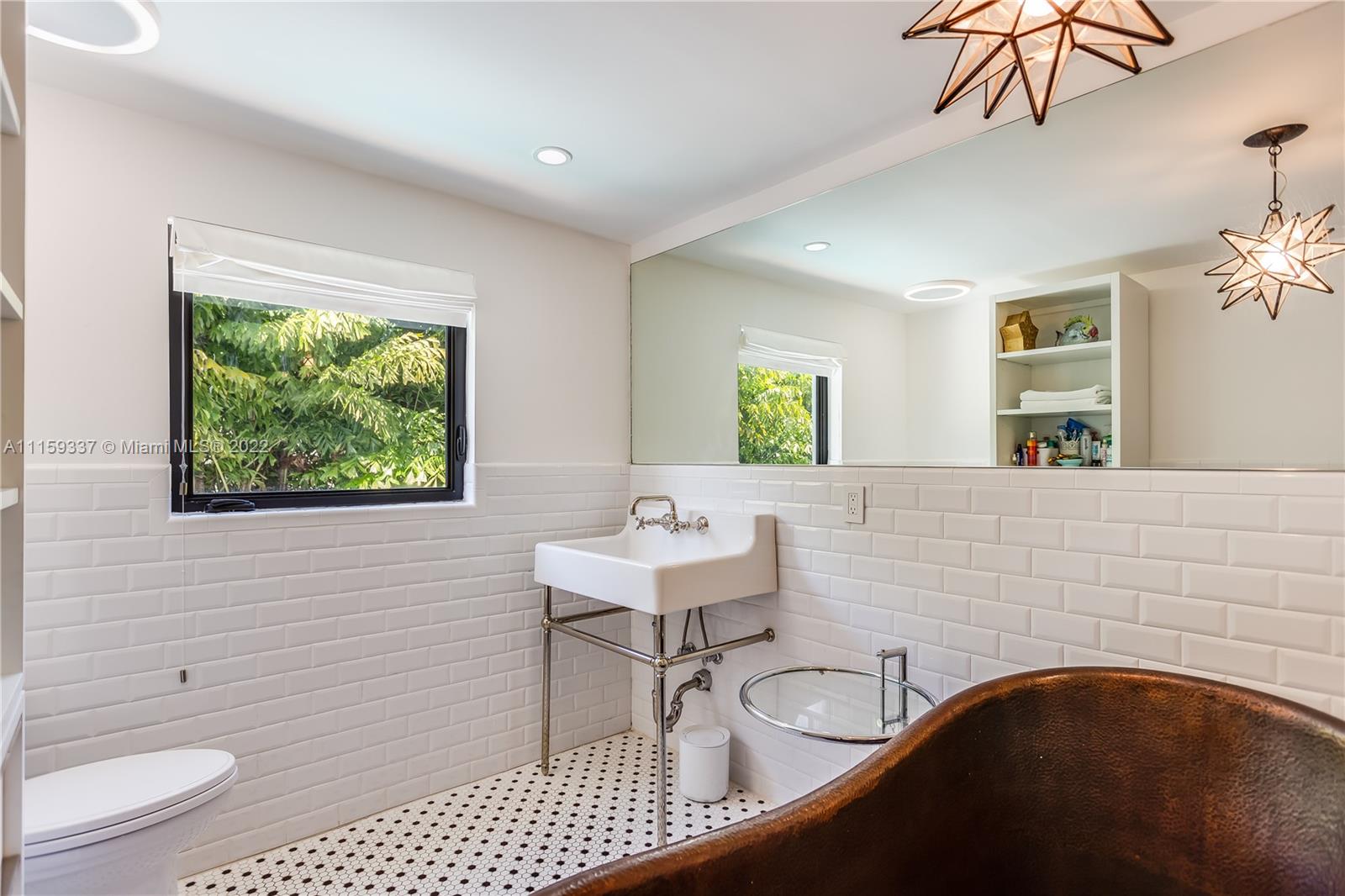 Stunning 5 bedroom/5 bathroom Mediterranean Miami Beach remodeled home which includes a separate guest house and full bathroom. Gourmet chef's kitchen features LaCornue range & hood combo, double ovens, & Subzero fridge. Large bedrooms. Master bath features a gorgeous solid copper soaking sub and dual head showers. 1st Floor guest room with private side entrance. Circular automatic gated driveway for easy in & out- fitting 5+ cars. Impact windows & doors throughout. Beautiful outdoor dining area. New heated saltwater pool with built in spa feature. Dual Zone Nest A/C, alarm system, new roof, 2 wood burning fireplaces, Pelican home water filtration system, and custom California Closets. No expense spared, this home is truly the beautiful Miami Beach house you've been looking for.