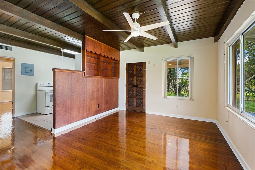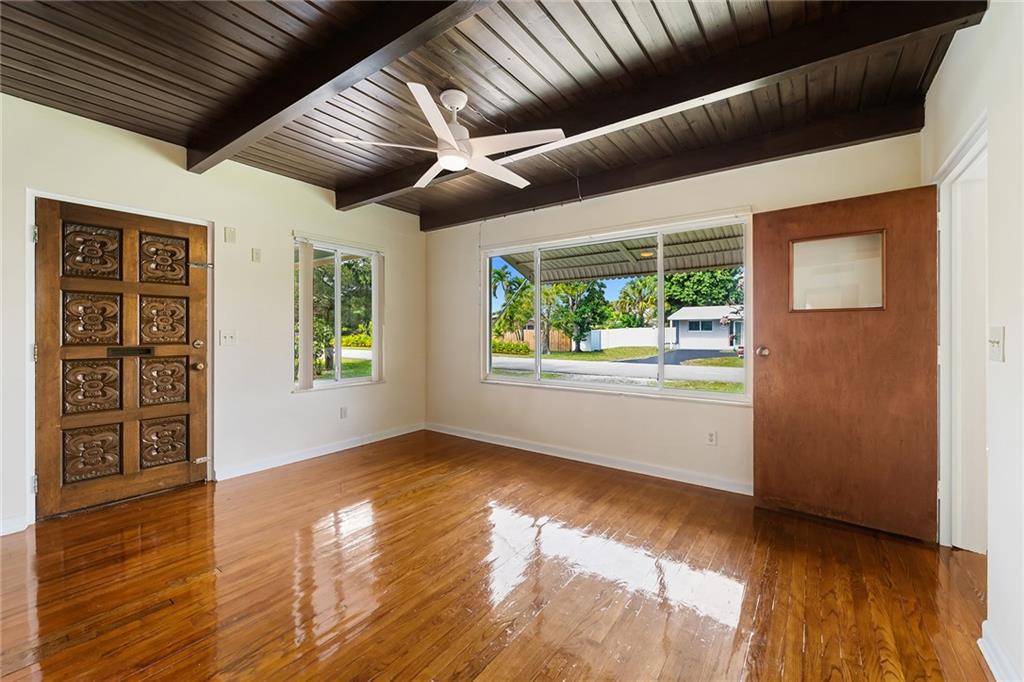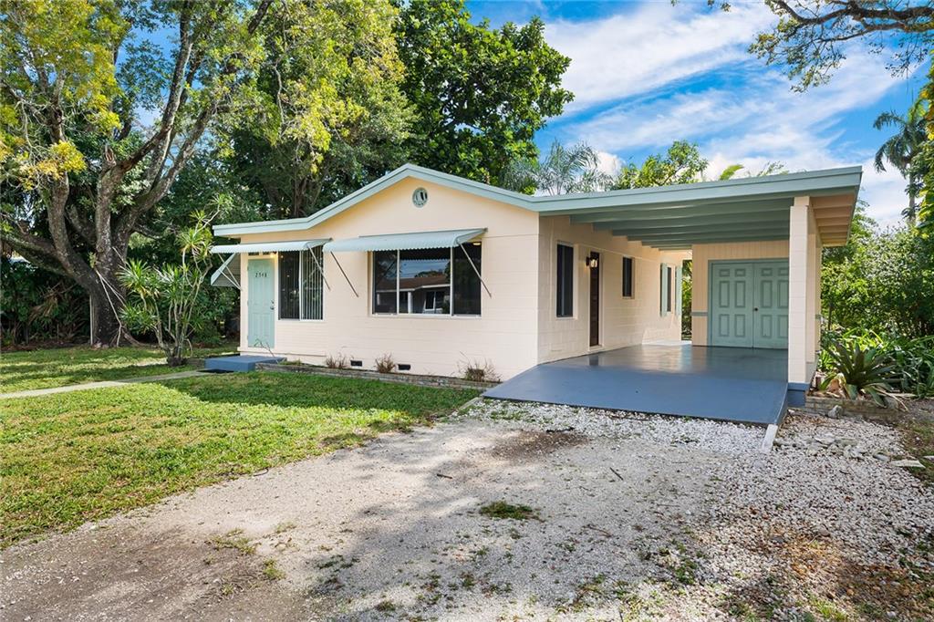 Welcome home to this exceptionally maintained 2 BEDROOM/1 BATH cottage in Riverland situated on a 10,000SF lot. Freshly varnished wood floors and exposed beam ceilings greet you upon entering this residence. A move-in ready home with good bones that is calling for potential cosmetic improvement. The kitchen is ready for an open concept design and the den has potential to become a third bedroom with an en-suite bathroom. Covered carport with an enclosed laundry/storage room. Freshly painted exterior. Lush foliage, coconut palms and multiple mahogany trees provide privacy and bring character to the home. Conveniently positioned close to I-95 as well as shopping locales and Riverland Park & Pool.