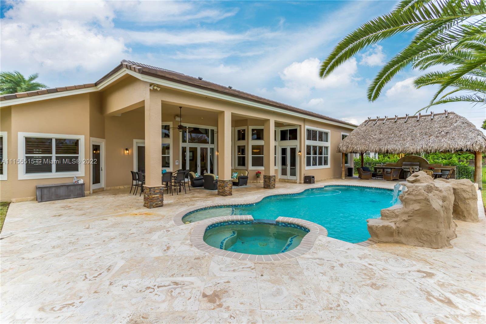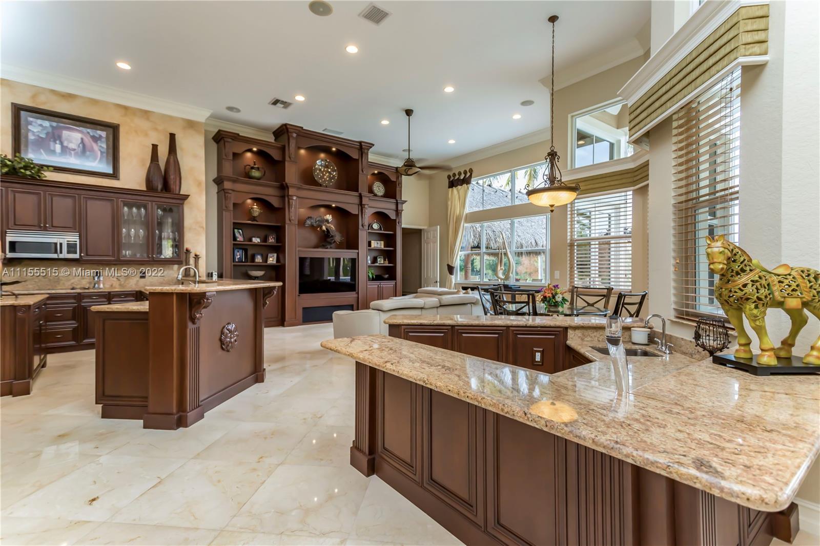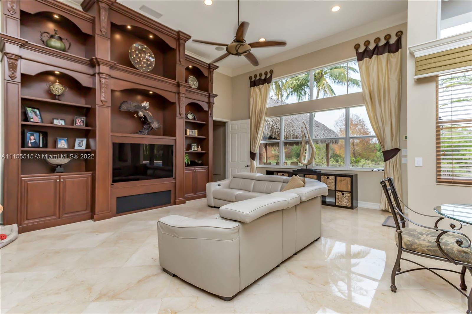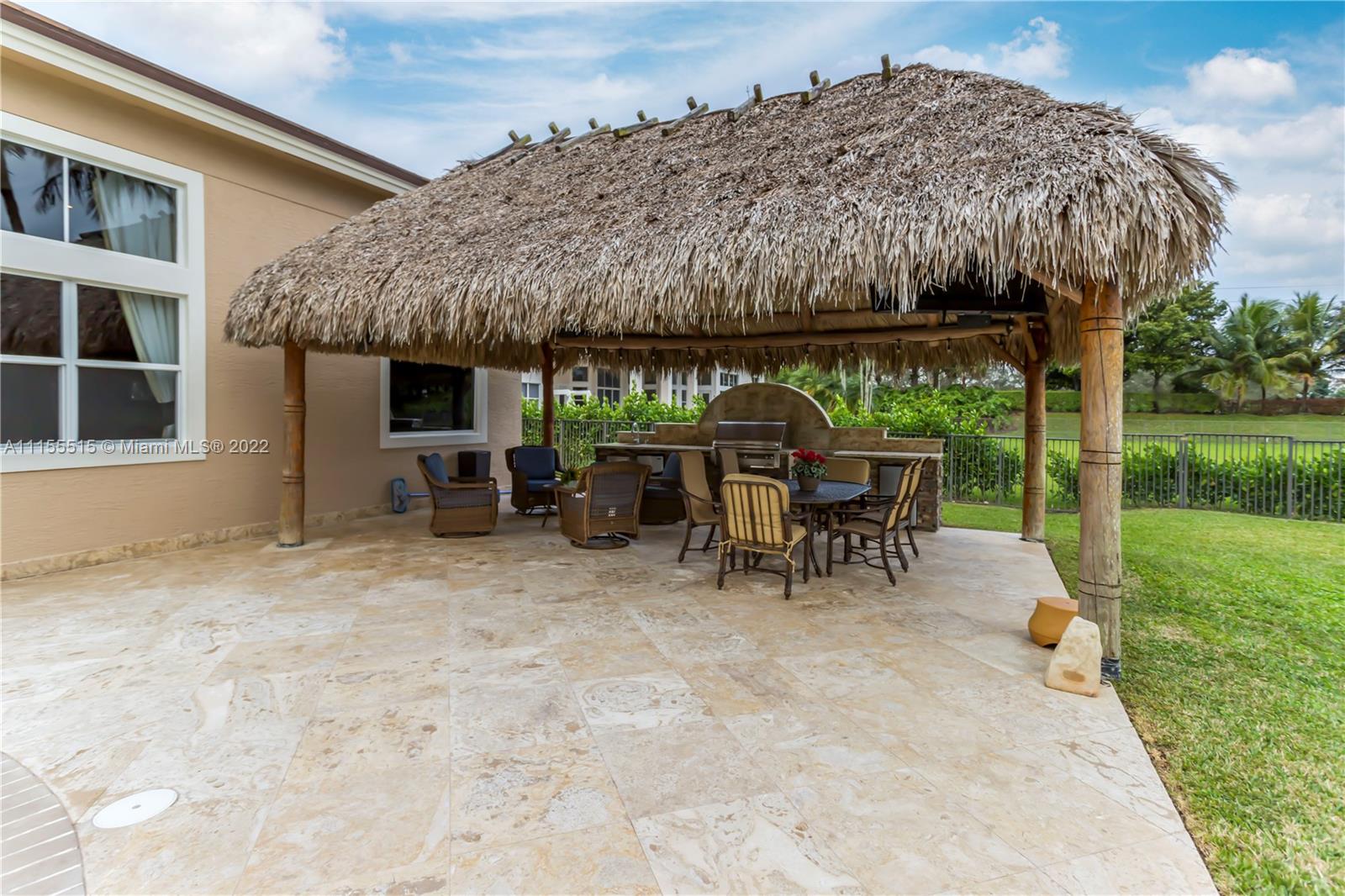 GORGEOUS HOME SITS ON A QUIET CUL DE SAC. ENJOY MOVIE NIGHT WITH YOUR FAMILY IN ITS LARGE CUSTOM THEATER. WOW YOUR FRIENDS WITH YOUR OWN CUSTOM WROUGHT IRON WINE CLOSET & CUSTOM BAR. MASTER BEDROOM FEATURES 2 MASSIVE CLOSETS W/ BEAUTIFUL WOOD TILE. COMMON AREAS FEATURE GORGEOUS MARBLE FLOORING, CROWN MOLDINGS, & TRAY CEILINGS. LARGE KITCHEN HAS AN ENORMOUS AMOUNT OF STORAGE & COUNTERSPACE W BEAUTIFUL GRANITE COUNTERTOPS & CENTER ISLAND. ENJOY YOUR OUTDOOR SUMMER KITCHEN UNDER THE TIKI HUT WHICH INCLUDES 2 FLAT SCREEN TVS, SURROUND SOUND, & A BUILT IN GRILL, PERFECT FOR ENTERTAINING. THIS HOME SITS ON AN OVERSIZED LOT W NO NEIGHBORS BEHIND, ULTIMATE PRIVACY & BEAUTIFUL VIEWS. BRAND NEW ROOF, HURRICANE IMPACT WINDOWS. 3 CAR GARAGE W NEW EPOXY FLOORING & ELECTRICAL CAR CHARGER