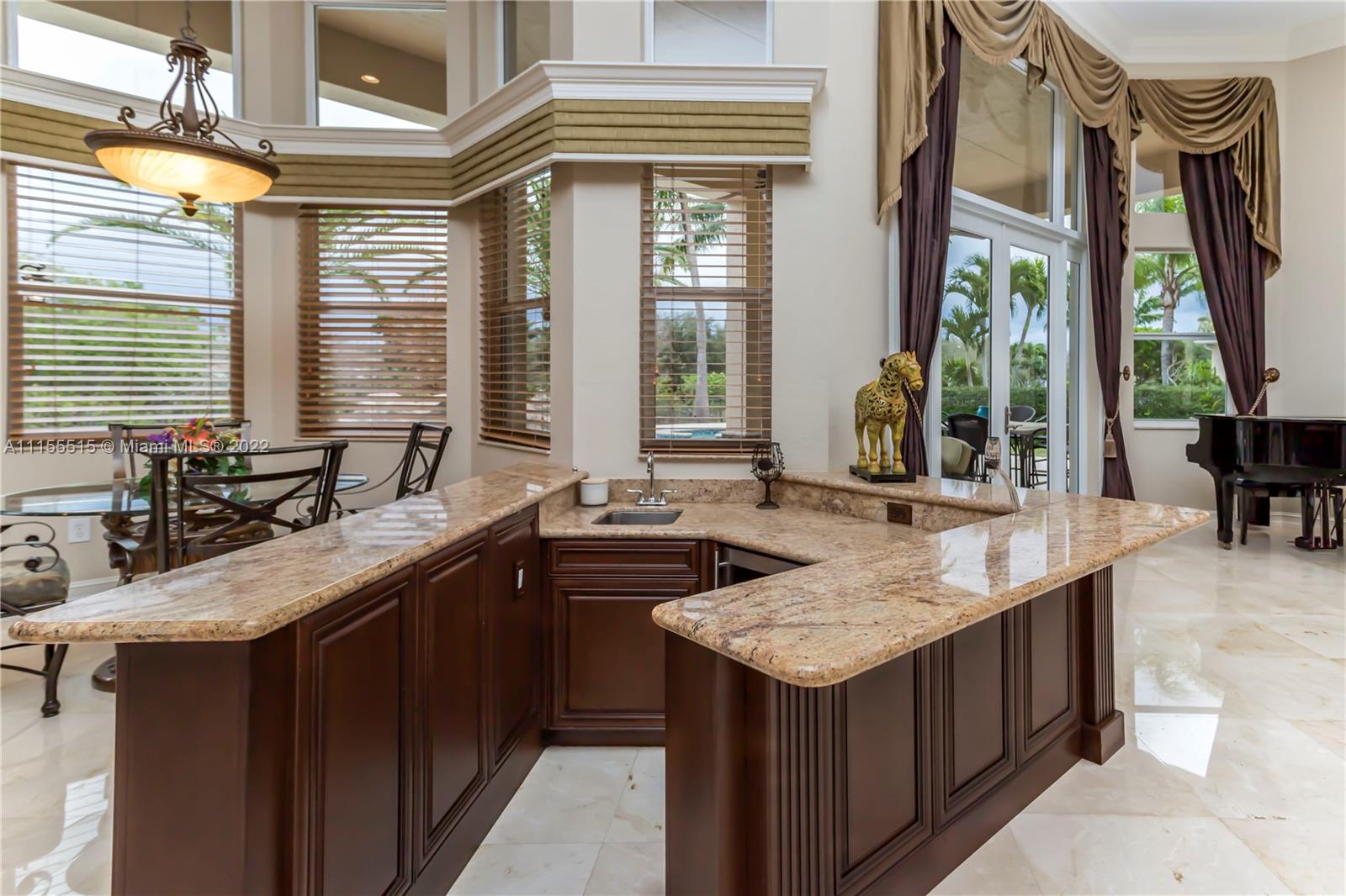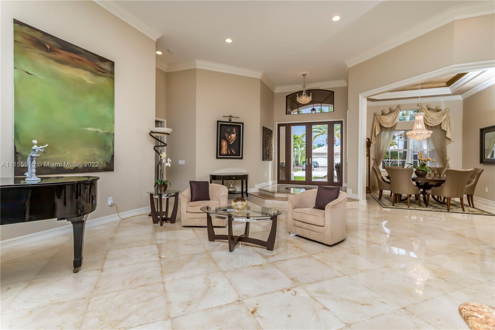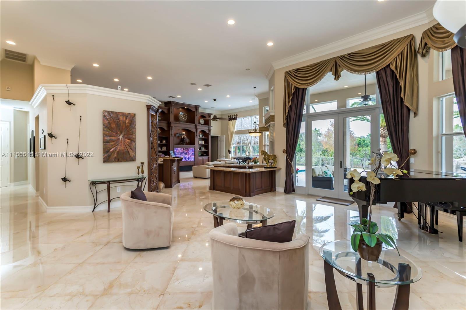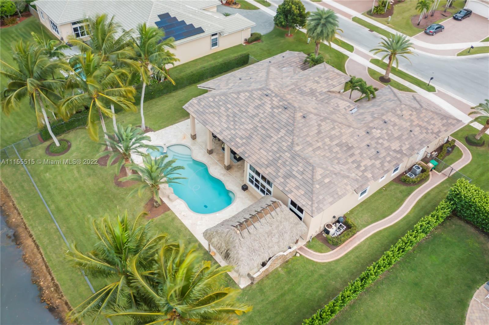 GORGEOUS HOME SITS ON A QUIET CUL DE SAC. ENJOY MOVIE NIGHT WITH YOUR FAMILY IN ITS LARGE CUSTOM THEATER. WOW YOUR FRIENDS WITH YOUR OWN CUSTOM WROUGHT IRON WINE CLOSET & CUSTOM BAR. MASTER BEDROOM FEATURES 2 MASSIVE CLOSETS W/ BEAUTIFUL WOOD TILE. COMMON AREAS FEATURE GORGEOUS MARBLE FLOORING, CROWN MOLDINGS, & TRAY CEILINGS. LARGE KITCHEN HAS AN ENORMOUS AMOUNT OF STORAGE & COUNTERSPACE W BEAUTIFUL GRANITE COUNTERTOPS & CENTER ISLAND. ENJOY YOUR OUTDOOR SUMMER KITCHEN UNDER THE TIKI HUT WHICH INCLUDES 2 FLAT SCREEN TVS, SURROUND SOUND, & A BUILT IN GRILL, PERFECT FOR ENTERTAINING. THIS HOME SITS ON AN OVERSIZED LOT W NO NEIGHBORS BEHIND, ULTIMATE PRIVACY & BEAUTIFUL VIEWS. BRAND NEW ROOF, HURRICANE IMPACT WINDOWS. 3 CAR GARAGE W NEW EPOXY FLOORING & ELECTRICAL CAR CHARGER