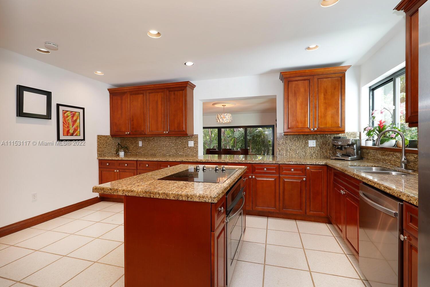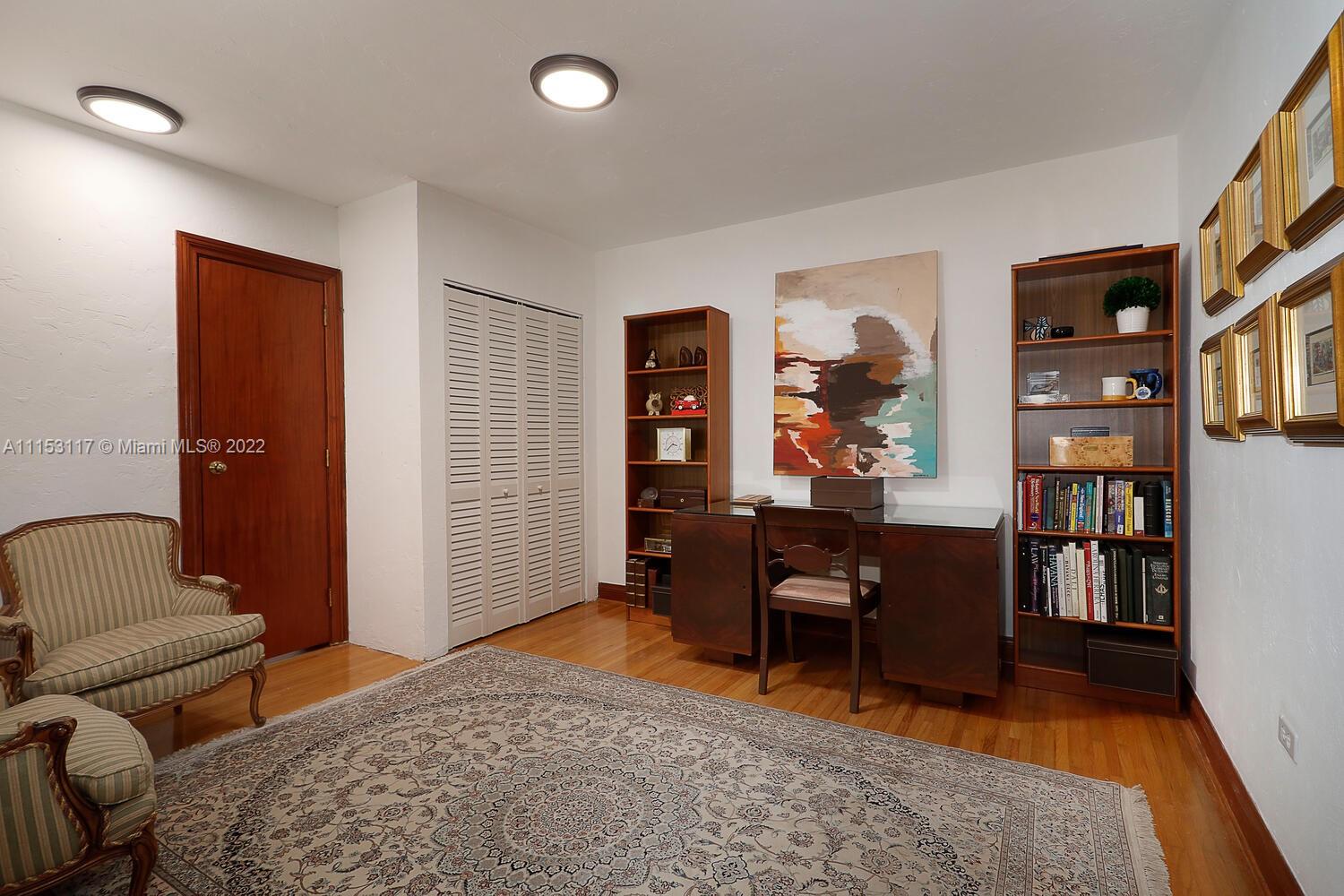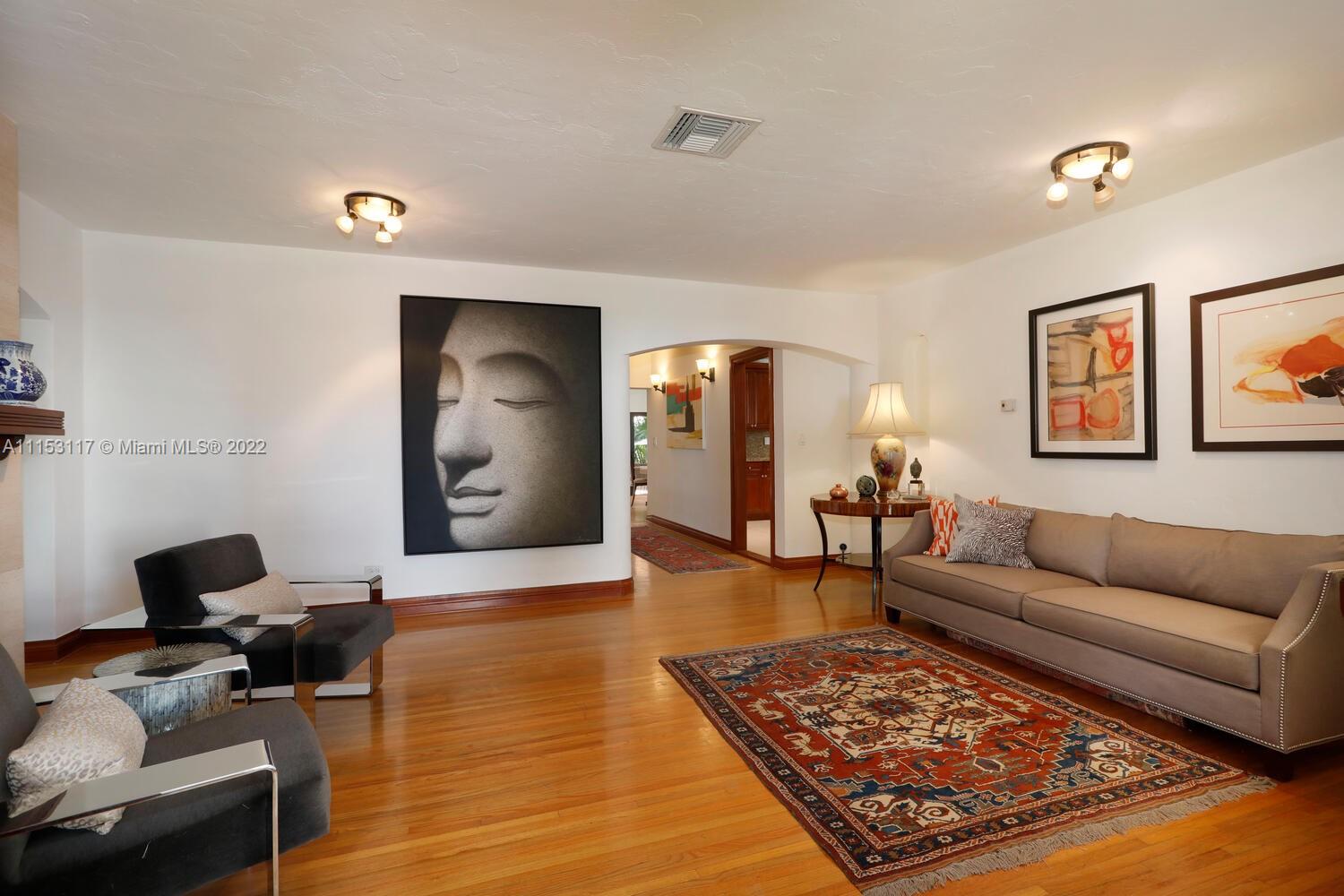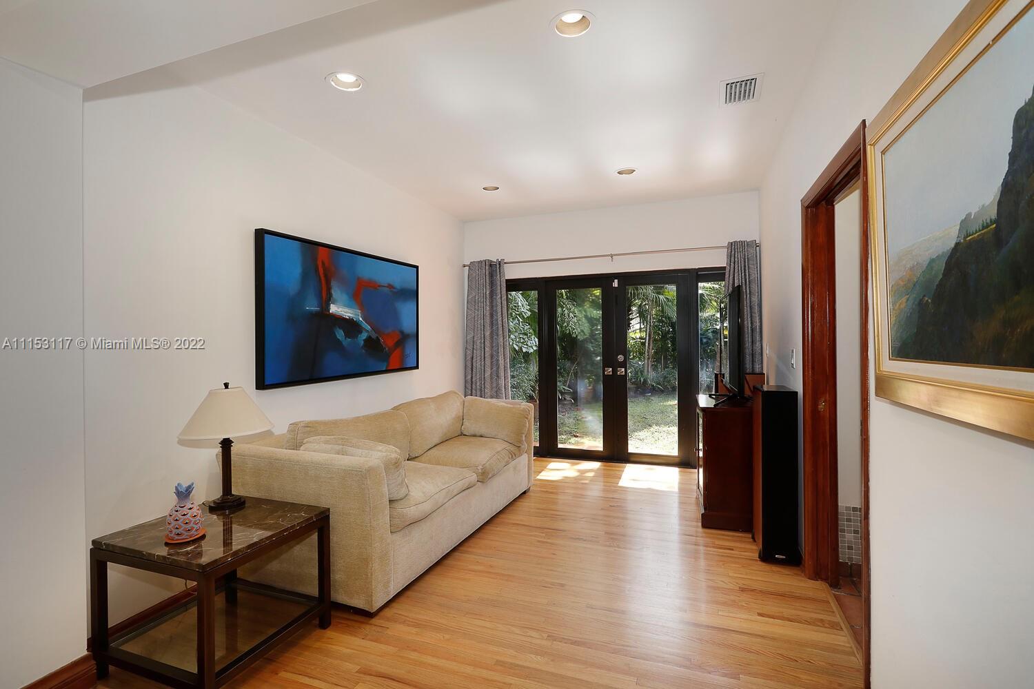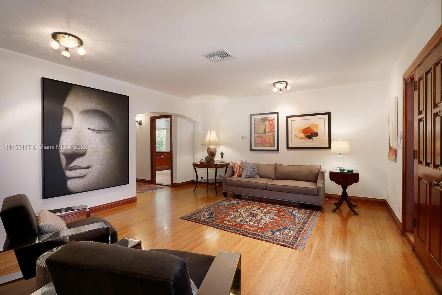 A 4 bedroom 4 bathroom Coral Gables home with pool and 2 car garage has an oversized 13,000 sqft. lot. The spacious kitchen has stainless steel appliances, cooking island and large pantry. The home features hardwood floors, working fireplace, large entertaining terrace overlooking the pool, sauna, and master bedroom sitting area. One bedroom is split from the rest and is ideal for a guestroom, housekeeper, or office. TWO BONUS SPACES one used as a small gym the other as an office. NEW (2021): roof, impact windows & sliding glass doors, sprinkler system, and alarm system. The home is ideally located on a quiet tree lined street a few blocks away from the Venetian Pool and Biltmore Hotel & Golf Course and minutes drive to Granada Golf Course and the Shops at Merrick Park.