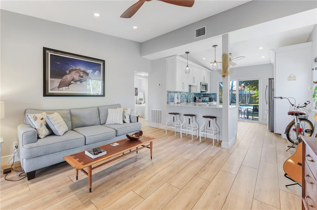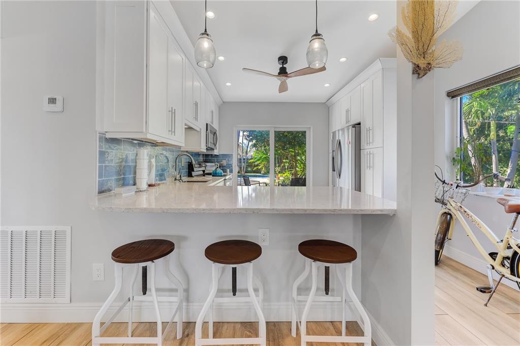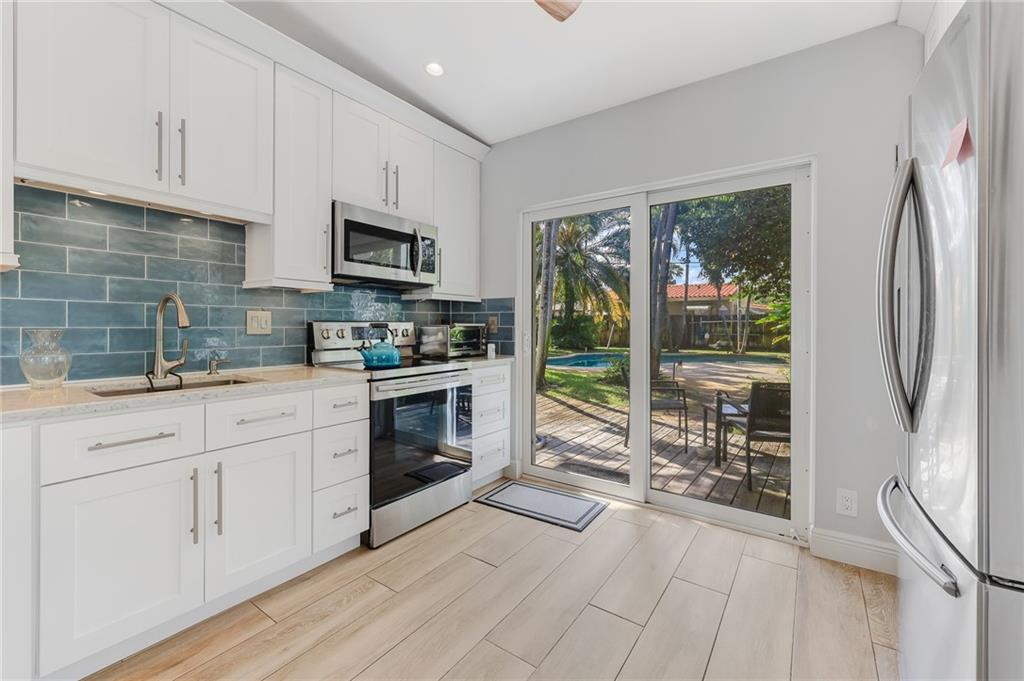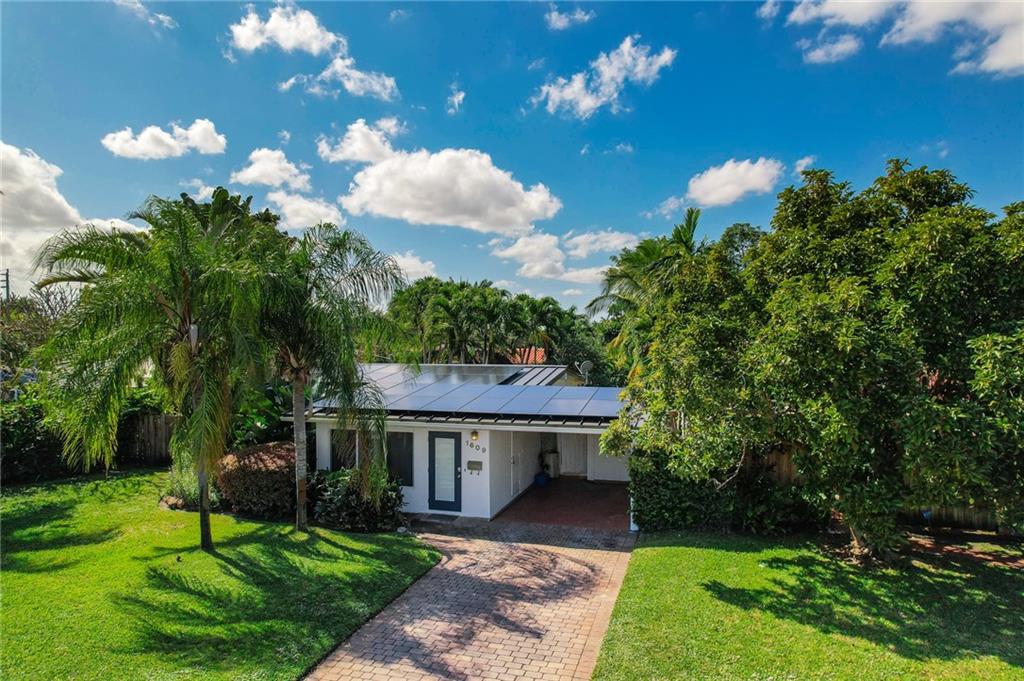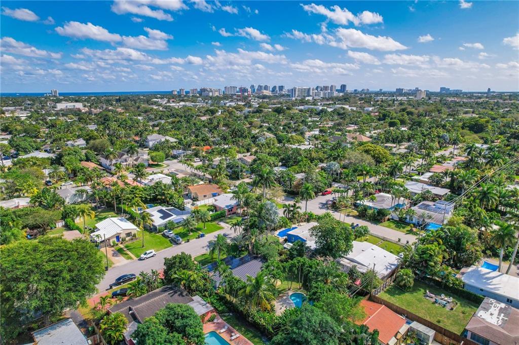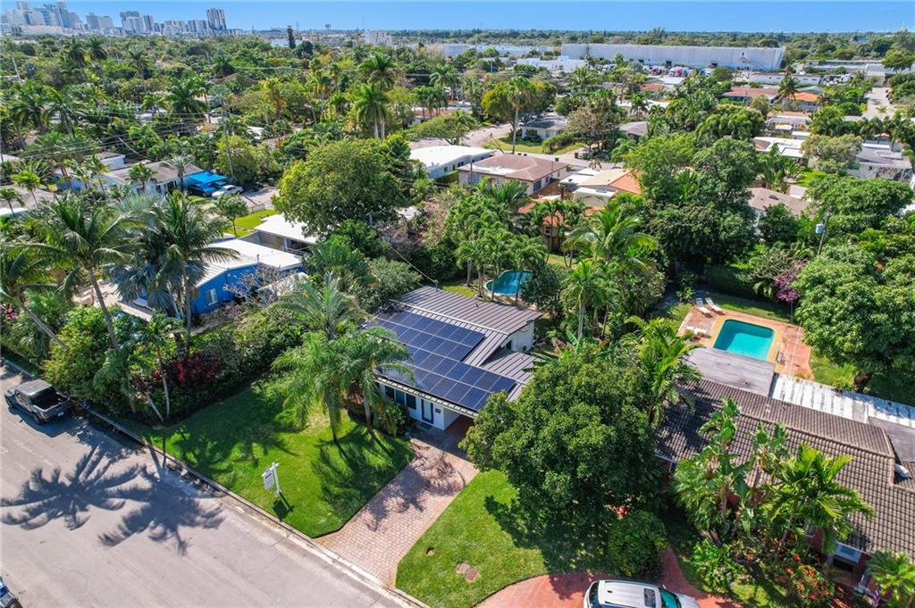 Updated two bedroom one bath energy efficient charming home with vaulted ceilings on one of the largest lots in Poinsettia Heights boasting over 10,123 sq ft. Brand new metal roof, new hurricane impact windows and doors, new kitchen and bath with quartz countertops, wood look tile floors and recently installed solar panels . There is an abundance of space on this lot to add on to or build a large home with plenty of space to create a private oasis with a large scale pool. Poinsettia Heights is one of the most desirable neighborhoods in East Ft Lauderdale where property values are increasing quickly and homes on this street have sold for well into the seven figures. Location is close to Whole Foods, Trader Joes, many fine restaurants, stores, shops, downtown and beach.