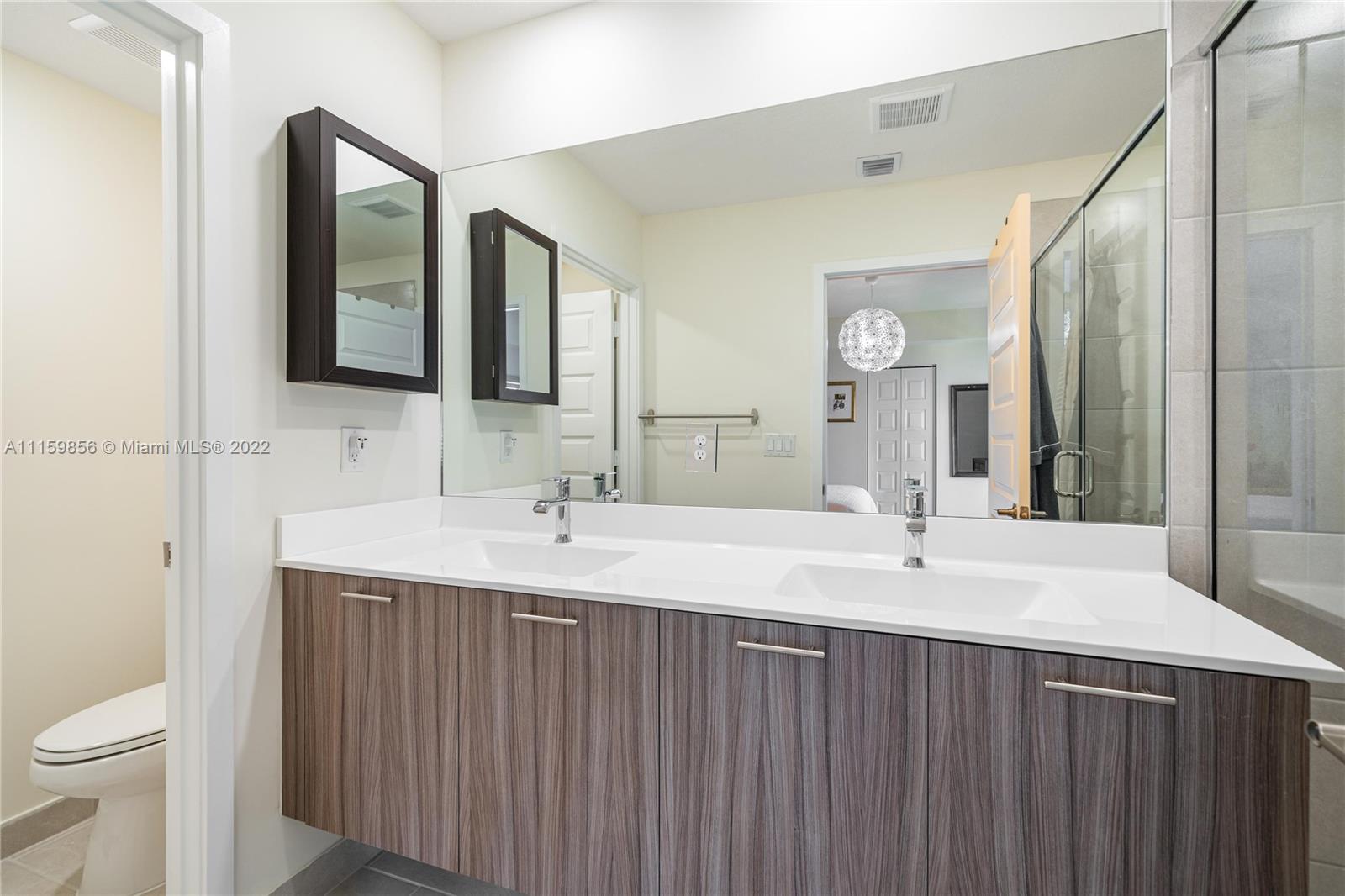 Desirable community, URBANA at Downtown Doral. Rarely available corner unit presents a very functional floor plan with beautiful finishings and upgrades. The three bedrooms are on second floor, as well as washer and dryer. Third floor has a very pleasant and bright family room and two outdoor areas. One of the roof tops was meticulous designed including a high-end BBQ under roof patio, plus an open area with artificial turf. There is also a second terrace if you prefer some private and quiet time. The townhouse is a short walk to this state-of-the-art Clubhouse. Indoor basketball court surrendered by a running path. Not to mention fully equipped gym, kids’ room, and stunning swimming pool.