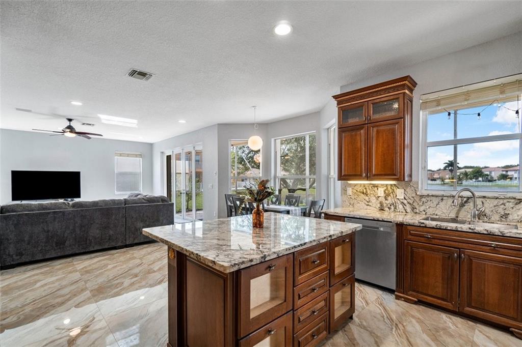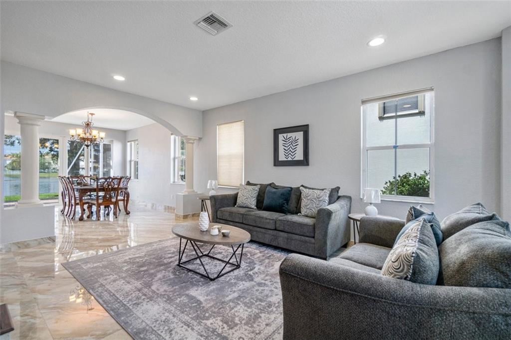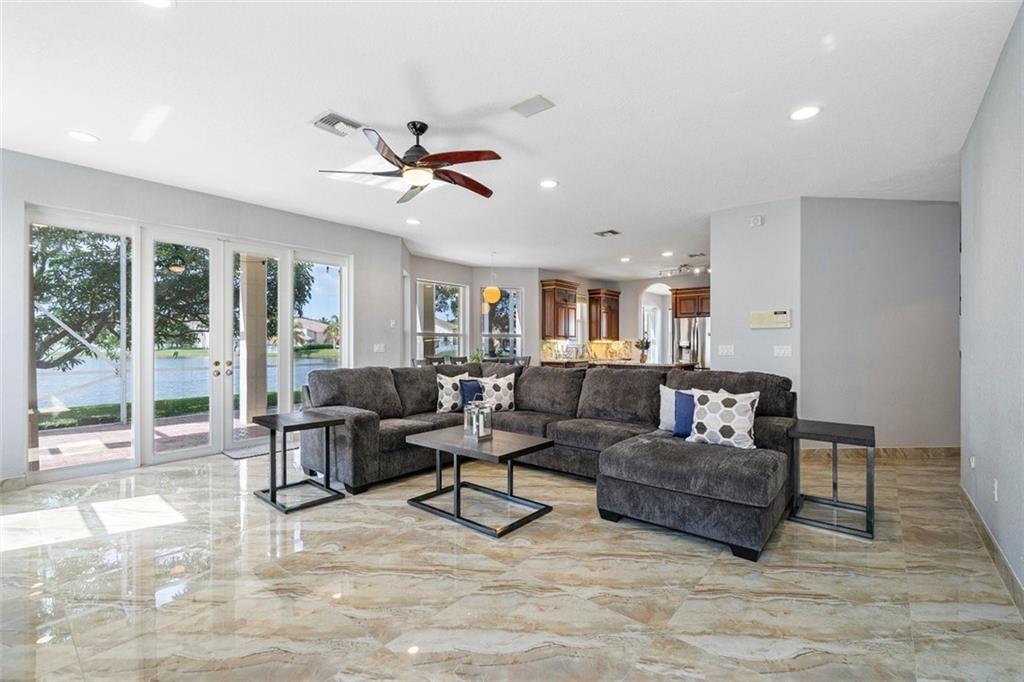 LUXURIOUS & SPACIOUS WATERFRONT HOME IN DESIREABLE GATED RIVIERA ISLES COMMUNITY W/RESORT STYLE AMMENITIES.ENTER THRU DOUBLE GRAND DOORS TO A BEAUTIFUL PORCELIAN STAIRCASE W/ ROD IRON & SOARING CATHEDRAL CEILINGS, EXQUISITE PORCELIAN TILES TROUGHOUT. FORMAL DINING ROOM GOURMET KITCHEN HAS NEW 42" WOOD CABINETS, APPLIANCES,GRANITE COUNTERTOPS & ISLAND, INCLUDING A HUGE FAMILY ROOM W/A SPACIOUS SITTING AREA OVERLOOKS THE SERENE LAKE. SECOND FLOOR HAS GERMAN LAMINATED WOOD FLOOR.UPSTAIRS HAS A HUGE MASTER SUITE W FULL BALCONY LENGTH OF THE HOUSE OVERLOOKS LAKE & SUNSETS. WOODEN WALK IN CLOSETS + STORAGE. THE MASTER BATH HAS A SEPARATE SOAK TUB, HIS & HERS SEPARATE BATHROOM SINK ALONG WITH A SHOWER. THERE ARE 2 BRAND NEW AIR CONDITIONERS FOR BOTH FLOORS, ALL NEW PLUMBING THROUOUT THE HOME. SEE