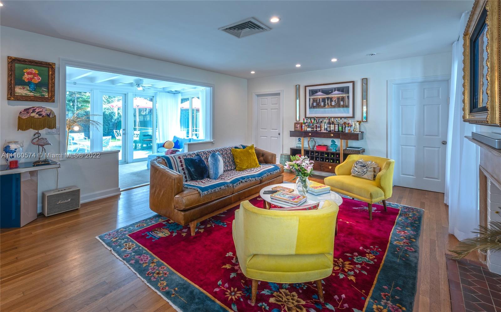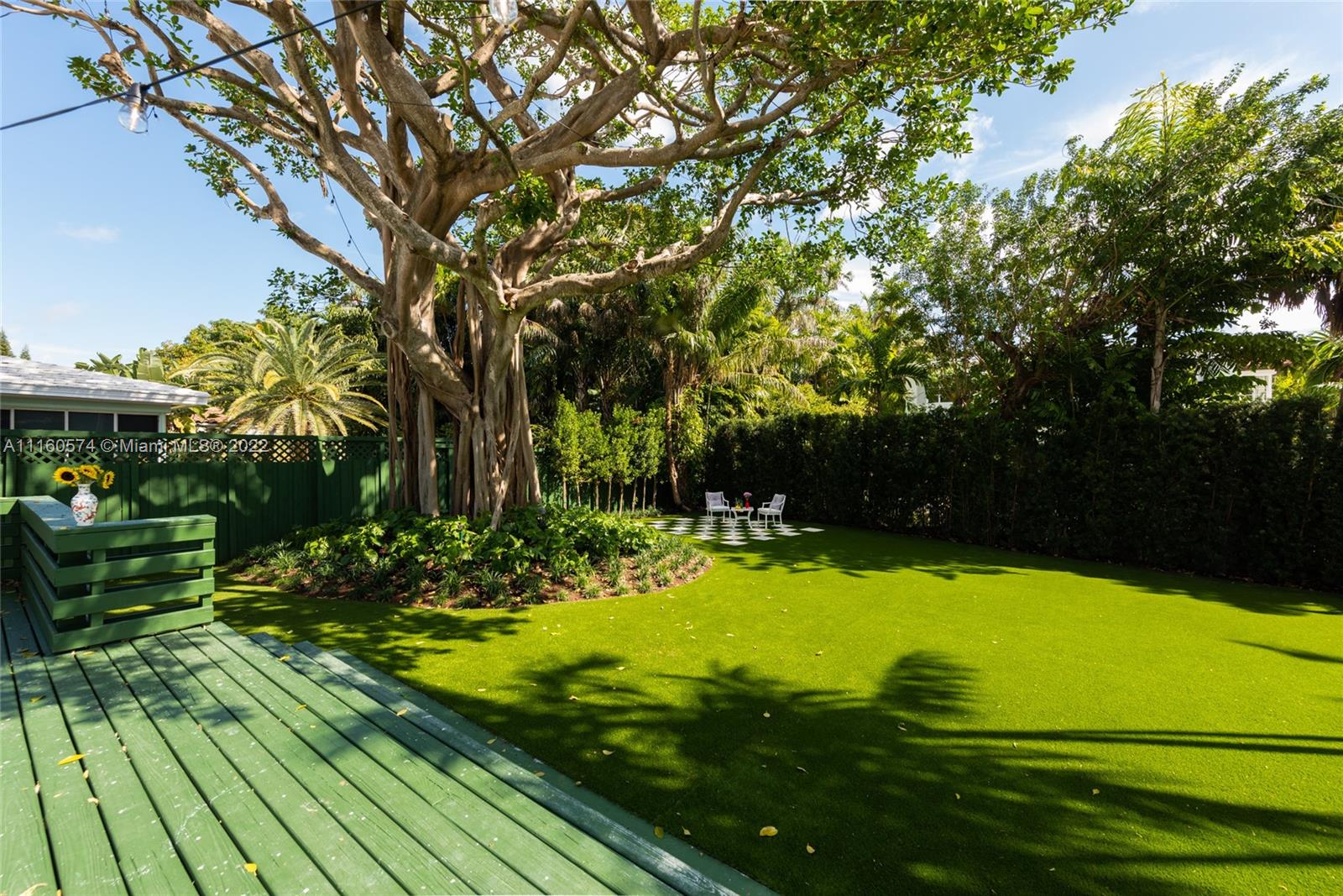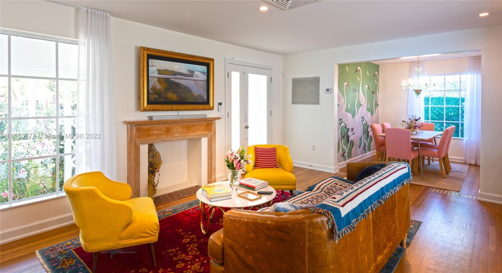 A delightfully charming 3 bedroom, 3 bath home in coveted Mid Beach. Wonderful architectural details abound featuring hardwood and terrazzo floors, fireplace, and volume ceilings. Formal living and dining plus a beautiful new kitchen highlighting custom white cabinetry, marble countertops, and backsplash with new stainless-steel appliances including a Wolf gas range with a built-in grill. A cheerful and welcoming Florida Room overlooks an extensive wood deck and large private yard with glorious banyan tree. Custom impact windows and doors allow for natural light to flow freely accenting the homes tremendous charm. Generous outdoor lighting creates the perfect ambiance for evenings on the deck, relaxing, or star gazing.