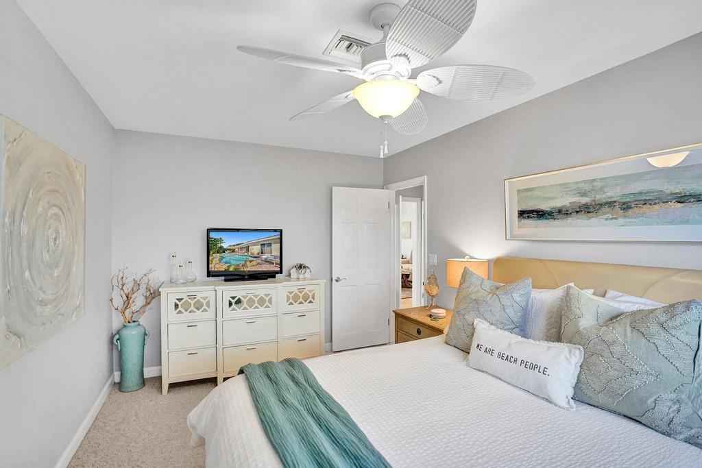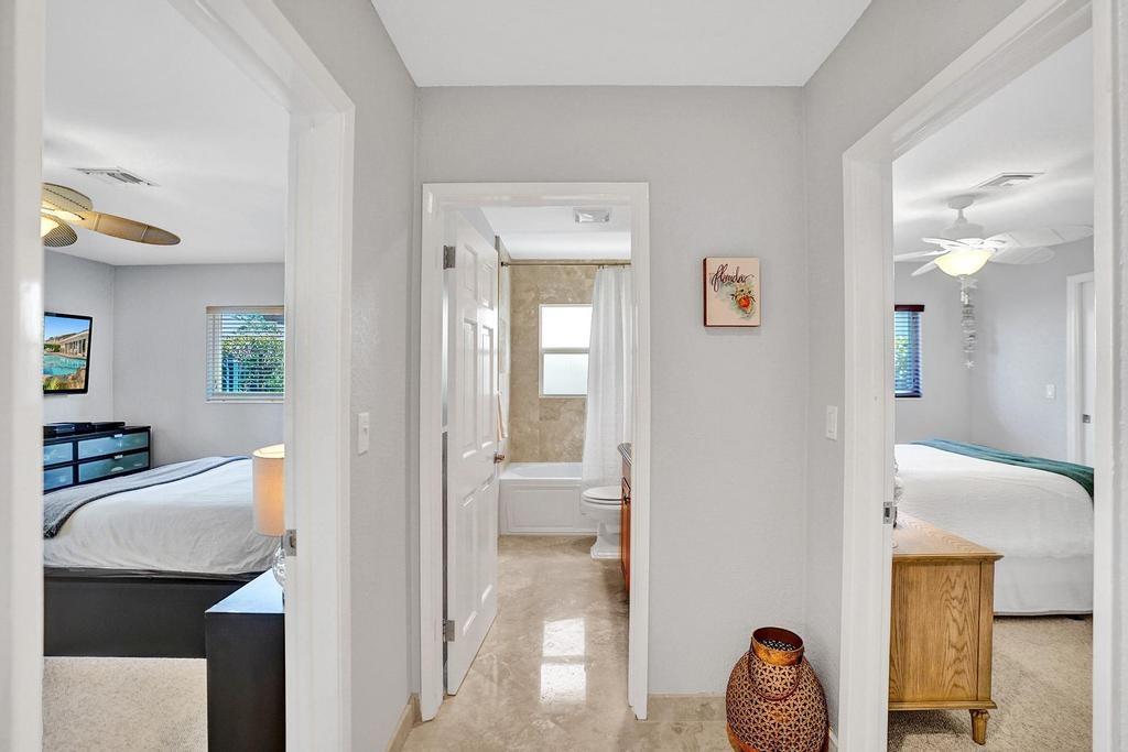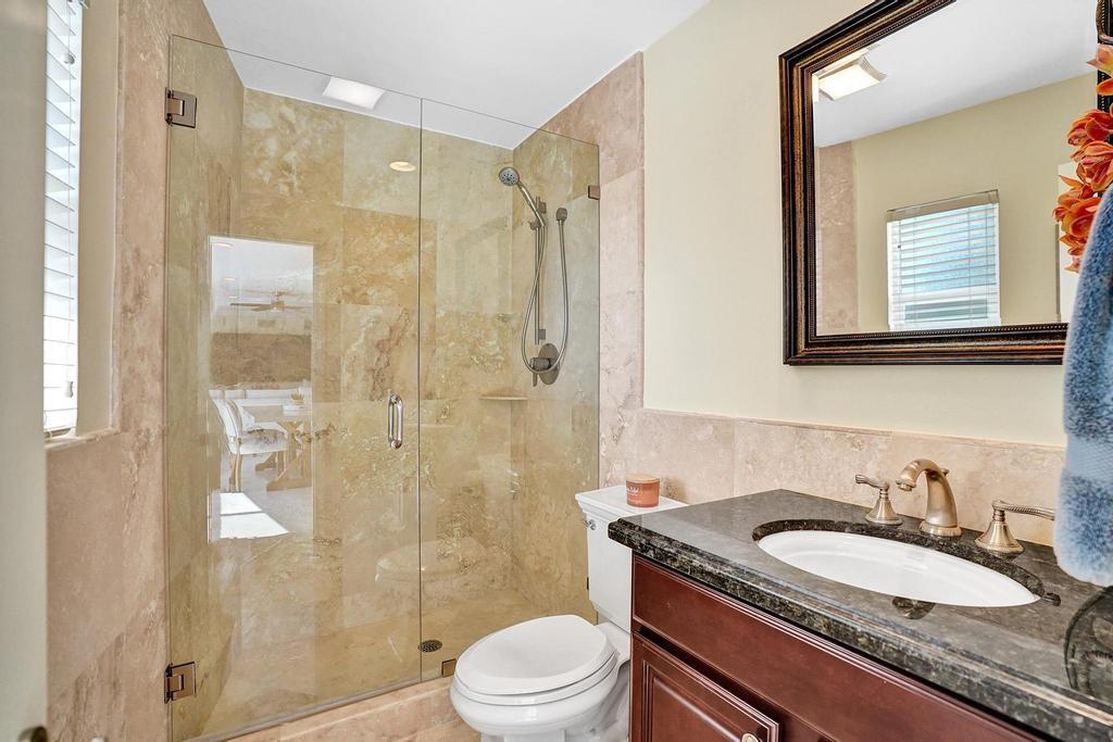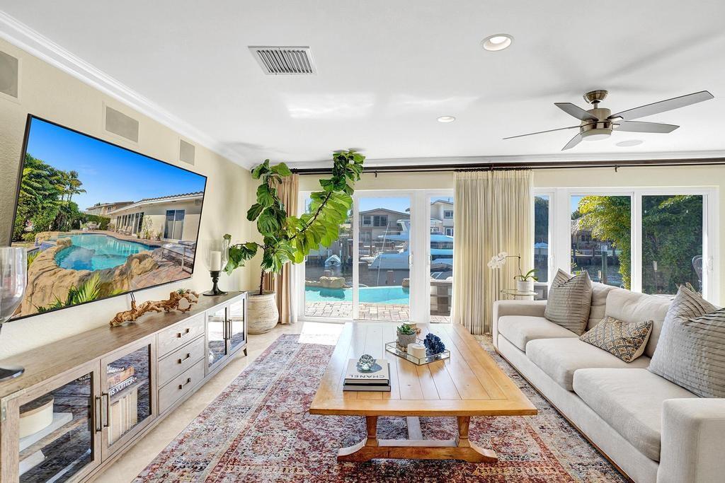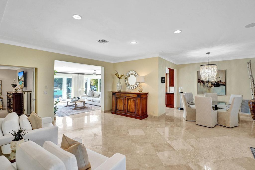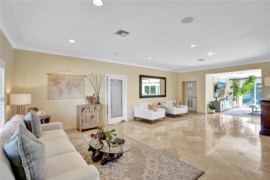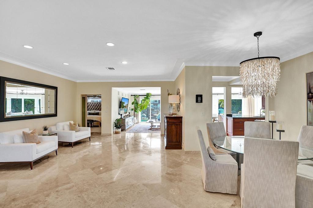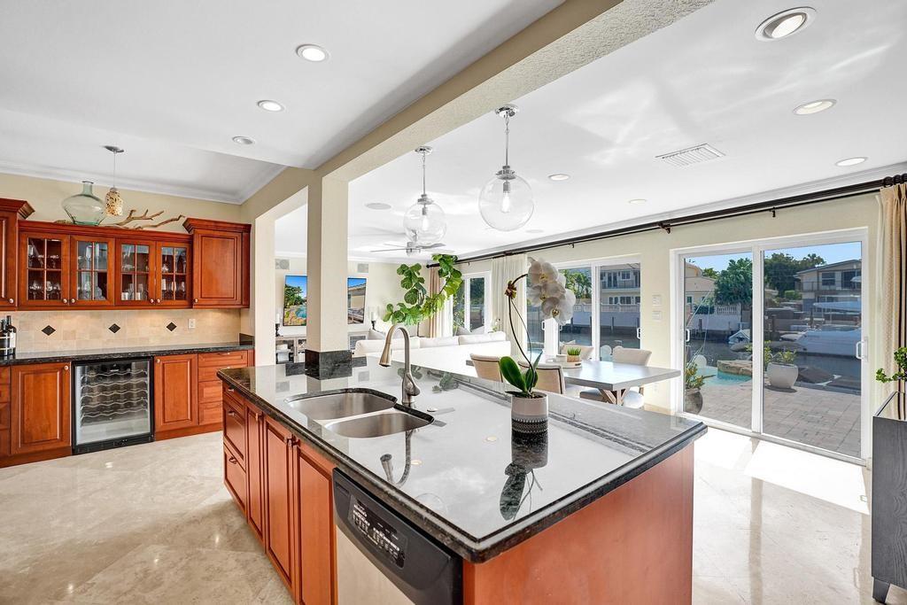 This home exudes the epitome of the South Florida lifestyle! Bright, open and beachy with a private infiniti pool, 80 feet along the wide, deepwater canal and beach access across the street. Hard to find 9 foot ceilings, stunning marble floors and impact windows and doors are a few of the special features. The floor plan has a perfect flow for entertaining with a large great room, 2 wine coolers, separate bar and coffee bar, large island and new 48" Kitchenaid refrigerator. Even the garage is outfitted with custom flooring and cabinetry and a new secondary refrigerator. Plus, a new A/C in 2020 and almost 9 ft. flood elevation. This is a stunning home in the single entry, secluded Bermuda Riviera neighborhood. Guard house has cameras and zoned for Bayview Elementary School disctrict!