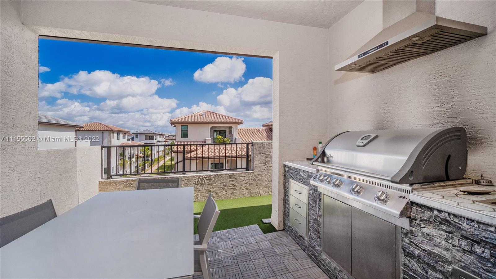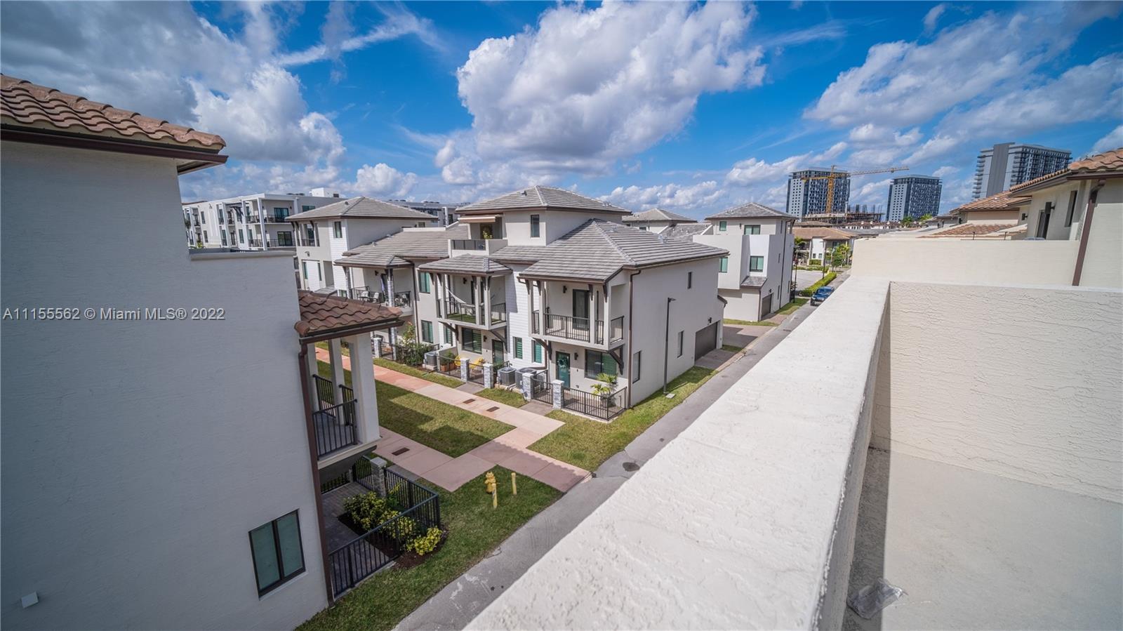 This three-story townhouse features 3 bedrooms, 2 full bathrooms, and 2 half bathrooms with a spacious 2 car garage. The property is located in a double-wide corner, with plenty of natural light. The first floor features a spacious open floorplan shared between the family room, kitchen and dining room. All three bedrooms are located on the second level. The primary bedroom features its own private balcony, two spacious walk-in closets, and ensuite bathroom with double vanities. The third floor is home to the media room and two beautiful patios, a covered patio with an outdoor kitchen, and an uncovered terrace, perfect for entertaining. Located in the heart of Downtown Doral, enjoy resort-style amenities, access to world-class education just steps away from restaurants, shopping and parks