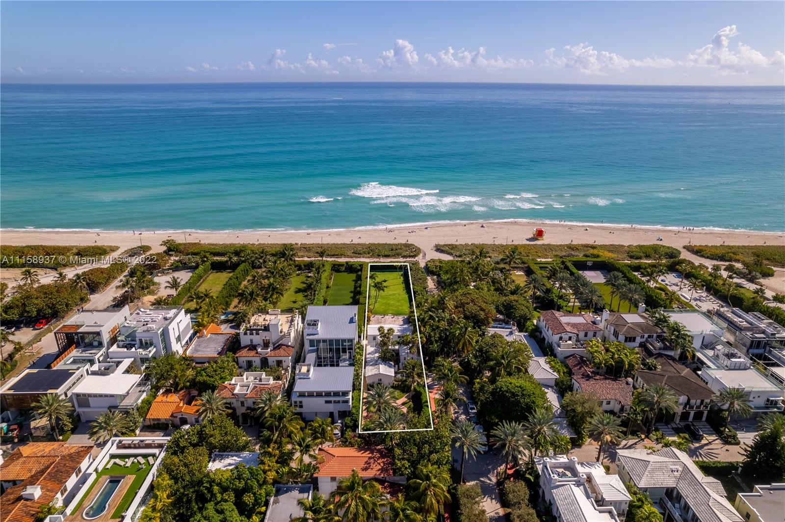 Live directly on the ocean with unobstructed views of the Atlantic Ocean and directly on the sand of Miami Beach, this beautiful two-story beach bungalow features four bedrooms and four bathrooms, a circular driveway, balcony and a two-car garage, in a private gated property framed by soaring palms. The open floorplan is filled with natural light and features a kitchen, living room and Florida room. The expansive backyard is perfect for entertaining or enjoy a tranquil life on the ocean on this 16,000 square foot lot. Minutes from exclusive shops and restaurants of Bal Harbour, parks and entertainment, this property is truly special, the best value property south of Golden Beach.