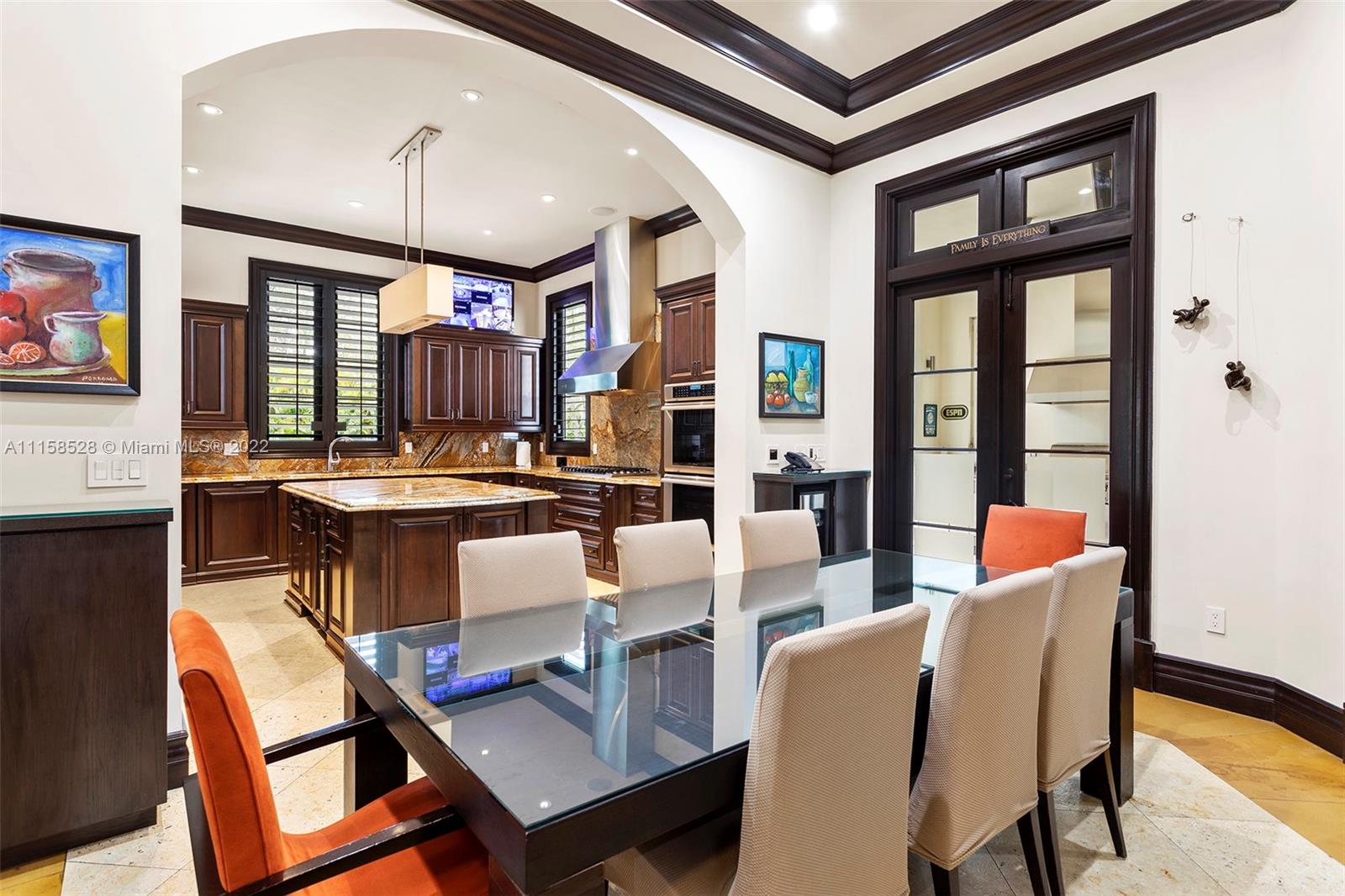 Sensational! Utterly rich in architectural design & Tuscan inspired grand residence in sought-after prominent Stritter Estates in N.Pinecrest! Situated on a picturesque, lushly landscaped deep acre with majestic palms and mature tropical plantings. Masterfully crafted with exquisite & elegant living and dining rooms. Soaring ceilings, marble and hardwood floorings. Gourmet chef's kitchen. Lavish master w/luxurious bath! All generous sized en- suite bedrooms, addl. playroom, office, media room & familly room. Elevator and a full-house generator. Spectacular oversized patio with summer kitchen. Sumptuous resort style heated pool/spa and magnificent grounds. Curated basketball court.3 car-garage plus carport. Luxurious appointments in every turn! A piece of Paradise!! (See Broker's remarks)