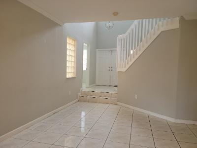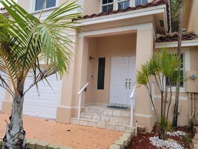 Beautiful 4 bedroom 2 1/2 bath townhouse with 2 CAR GARAGE, no rear neighbors.School inside complex, Miramar Regional Park, shopping, dining and I75 within 2 miles. The downstairs is tiled,Brazilian teak on stairs, upstairs manu wood! Freshly painted,formal dining area,separate living room, florida room leads out to beautiful tiled and fenced patio (great for entertaining). Monthly maintenace includes xl pool/spa/fitness center, basketball,tennis and more. Hoa maintains lawn, watering and 77 channel cable. Open kitchen boasts stainless appliances and connects to florida room and leads out to patio.HOA SAYS NO APPROVAL WAIT, NO RENTAL RESTRICTIONS. Complex has 2 exit/entrances.