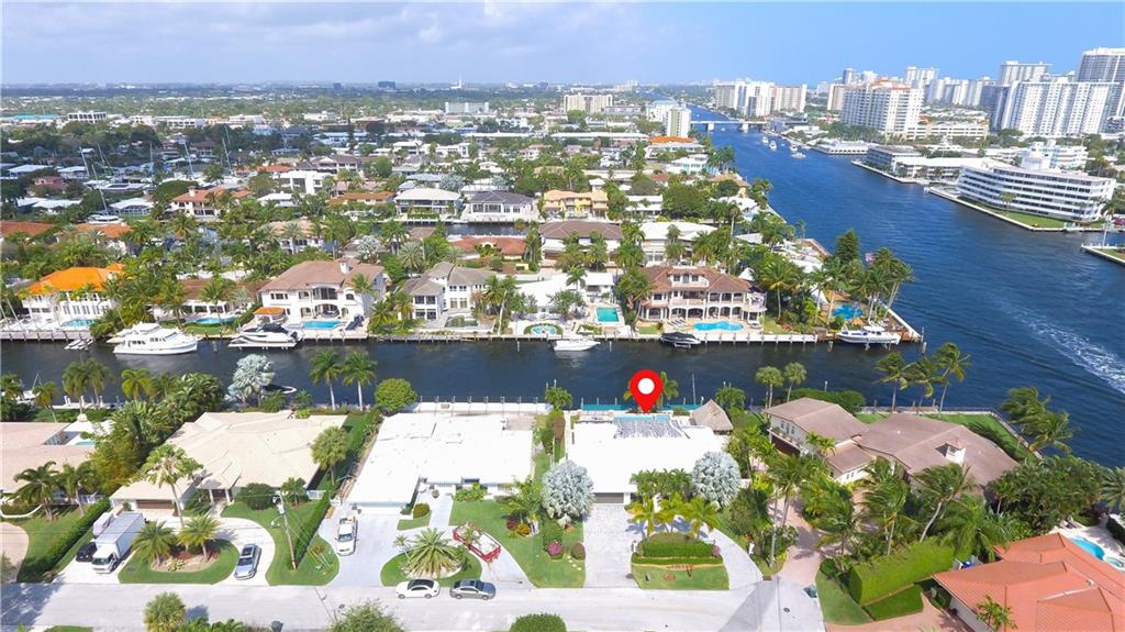 Best value on the water in Coral Ridge. One story home with three bedrooms and three baths located next to the point of the street providing angled views of the Intracoastal Waterway. No fixed bridges and 100 feet of waterfront make this ideal for boaters. The home has been updated throughout, including hurricane impact windows and is ready to move in. The large two car garage and gated circular drive provide privacy and parking. A split floor plan for bedrooms with an open kitchen, dining, family/living in between. The covered back patio overlooks the beautiful pool, spa, dock and waterway. There is also a thatched tiki hut summer kitchen for backyard dining and entertaining. Located in the Bayview Elementary School zone, close to shopping and minutes to the beach & Las Olas.