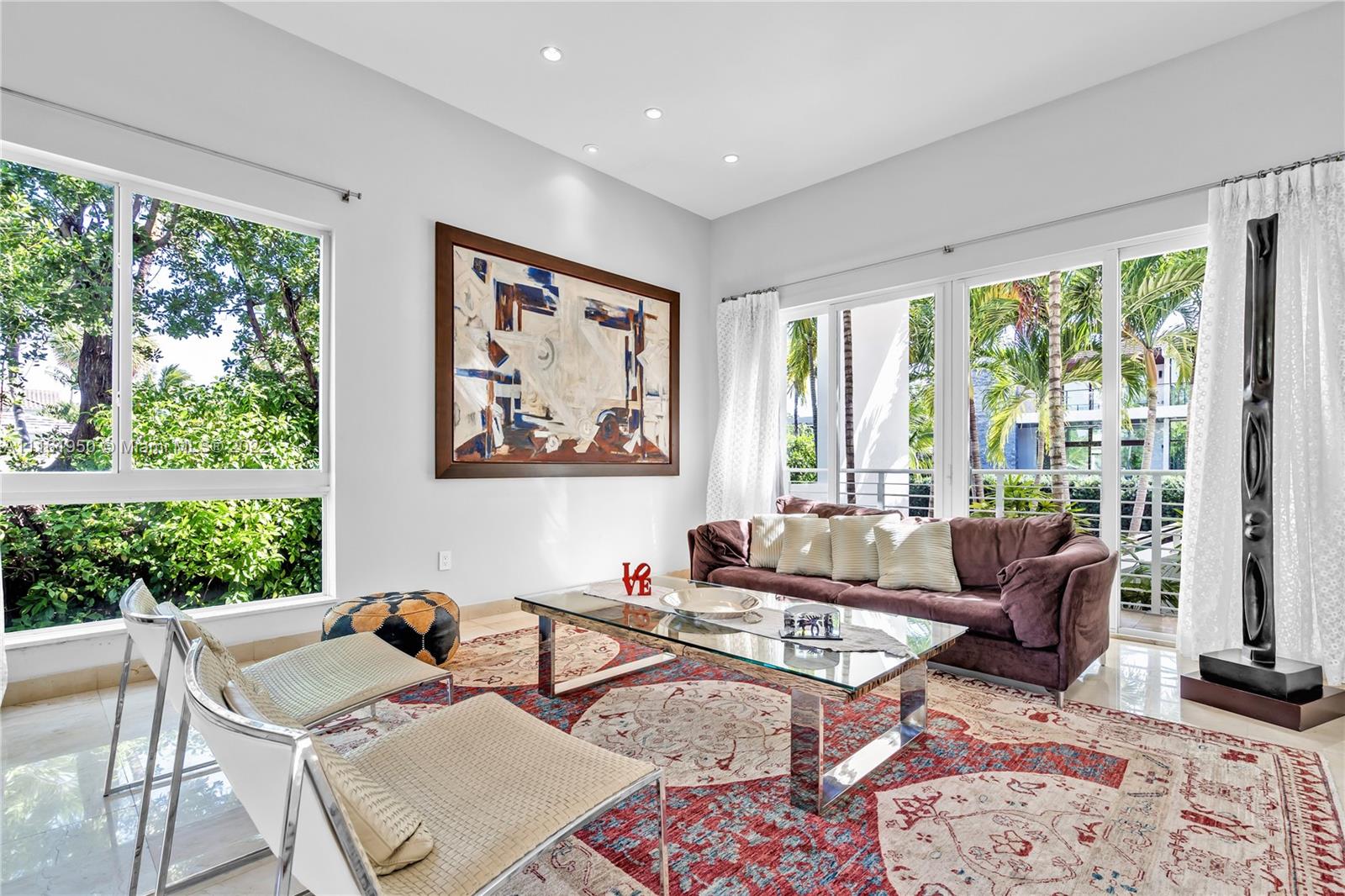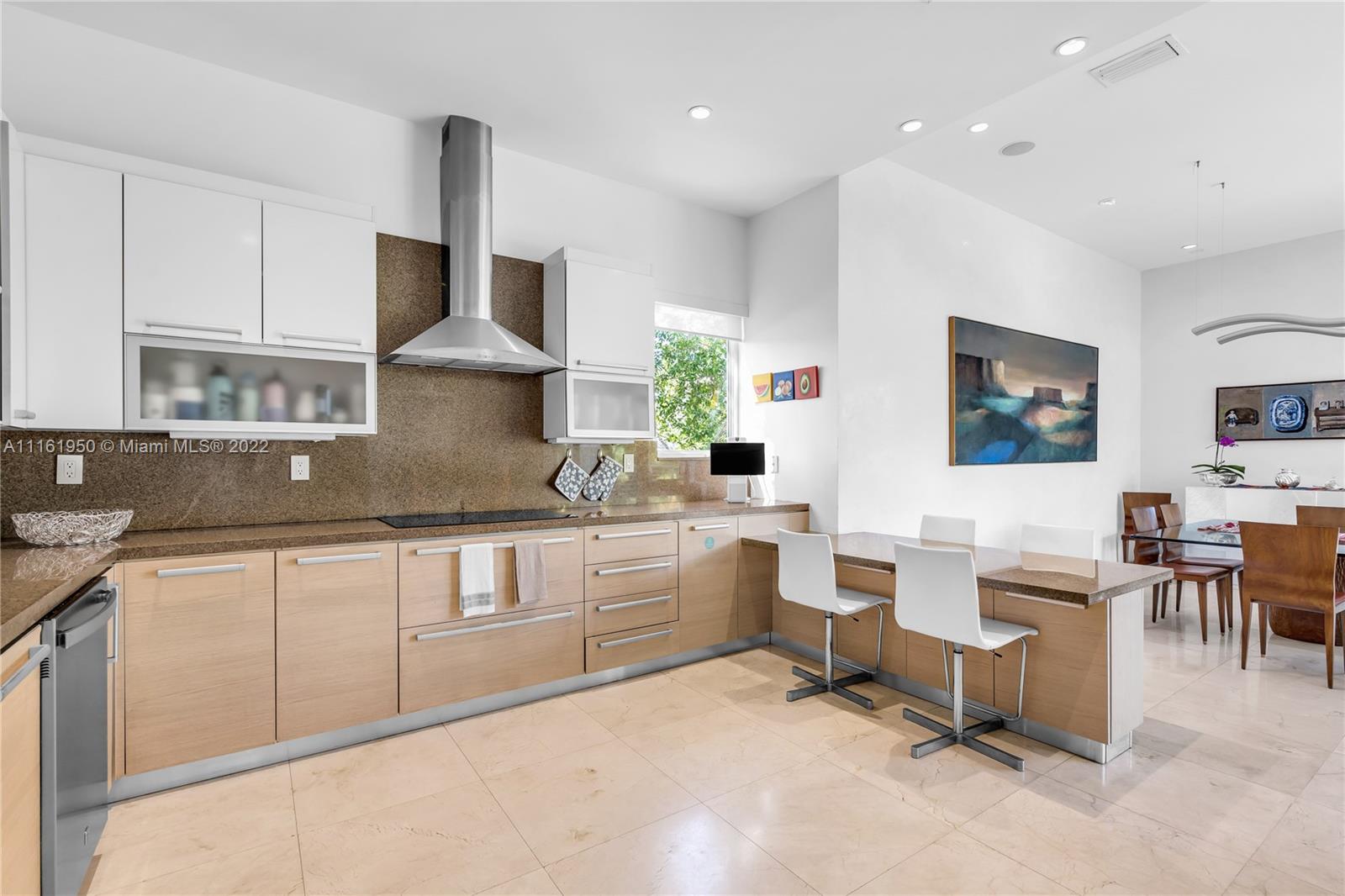 Beautiful modern home located in the heart of Key Biscayne just steps away from Harbor Drive and brand new Harbor Park. The property features 5 bedroom and 5.5 bathrooms. Very spacious and bright, ample living area overlooking a covered terrace on the pool. The large kitchen opens to a big dining area facing the garden that could be easily converted into a family room. Guest bedroom/home office with private bathroom located on the mezzanine. Separate home entrance from carport with lots of extra storage. On second level you will find the master suite and 3 other bedrooms with en suite bathrooms. A big terrace outside the master bedroom connects to the rooftop overlooking the key