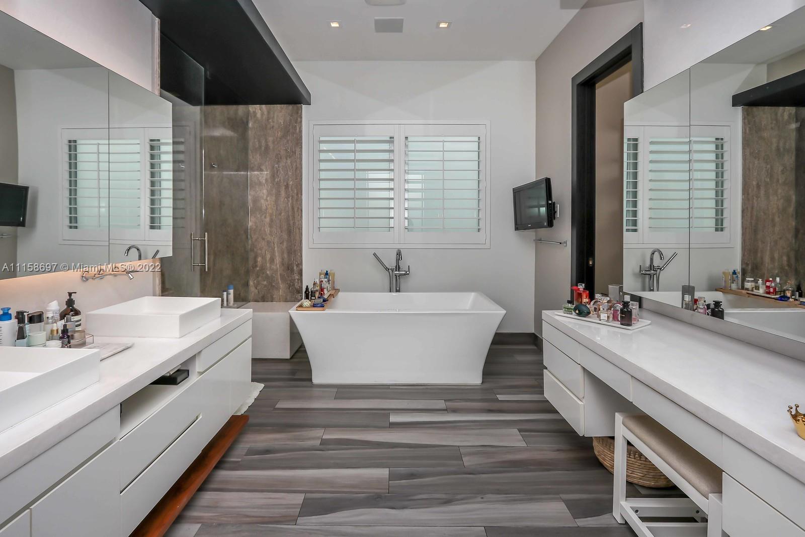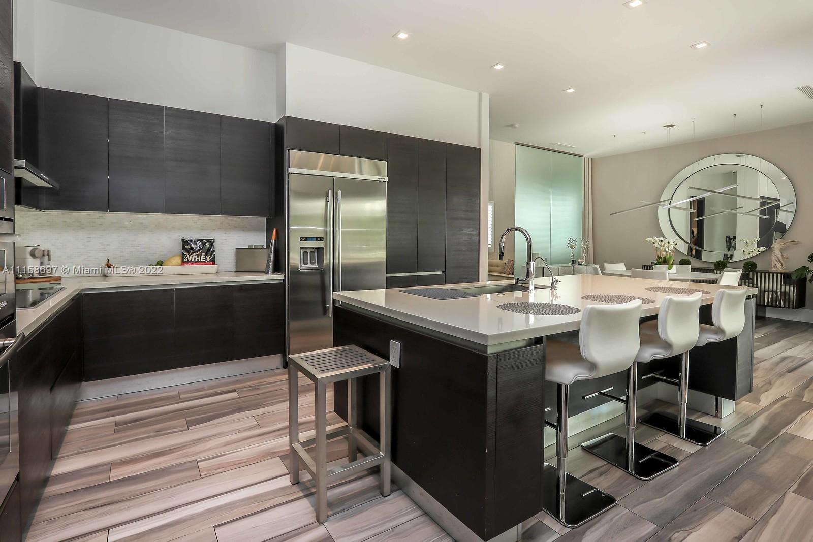 Contemporary single-family in one of the best complexes in Doral, The Oasis Park Square. This stunning home with an oversized lot features 4 bedrooms + loft, 5 bathrooms, steam on master bathroom, custom closets, Italian cabinets, ss appliances, a glass wine cellar showpiece, high impact windows, a lot of storage, and an extra refrigerator in the garage area, PERSONAL ROOFTOP retreats with an outdoor kitchen, a private jacuzzi tub, and an office with 1/2 bathroom, THE BACKYARD is ideal for entertaining, with a nice pergola, sitting area, full outdoor kitchen (pizza oven, teppanyaki, burner, BBQ) and stunning swimming pool (salt system). EXTRA FEATURES the unit has 2 additional water meters, one for the sprinklers and one for the pool, also a 220v TESLA charger outside of the garage.