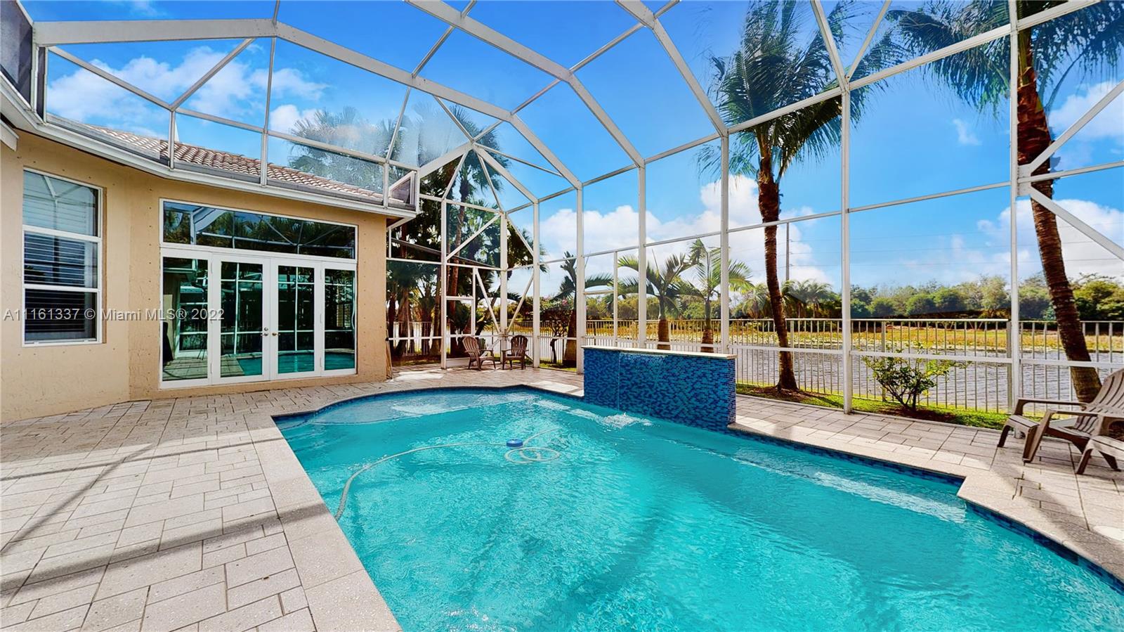 Beautiful single story lake front home in Weston Hills. Property has been remodeled throughout and has 5 bedrooms and 3 Full bathrooms, One of the bedrooms is used as an office. Very open floor plan. Gourmet kitchen with stainless steel appliances and granite counter tops. Beautiful backyard with tropical landscaping, pool has been remodeled with waterfall and a screened patio. All exterior doors are high impact, both air conditioners and air handlers have been replaced. Weston A+ Schools