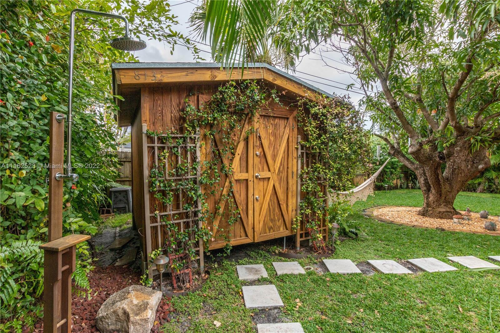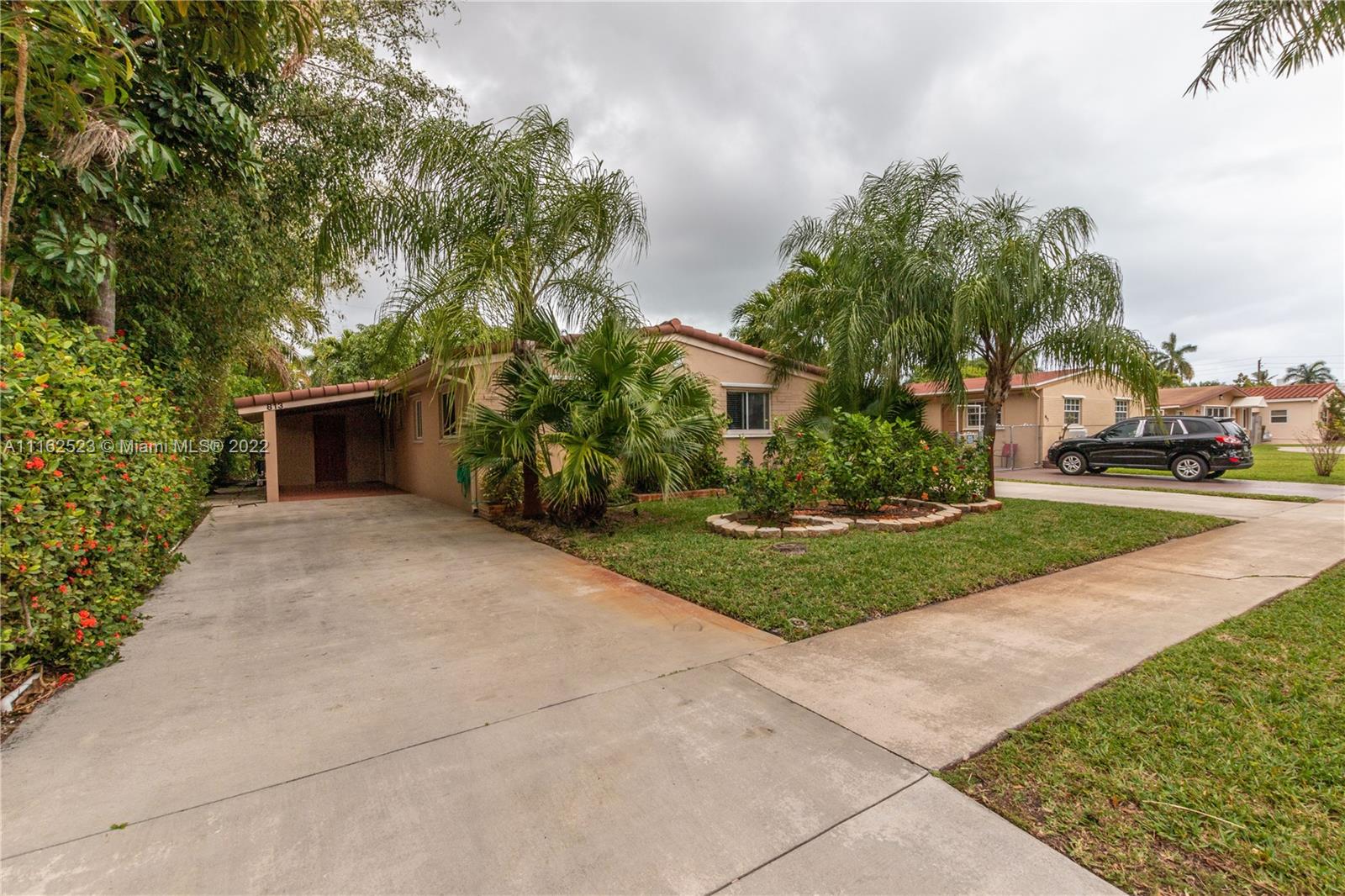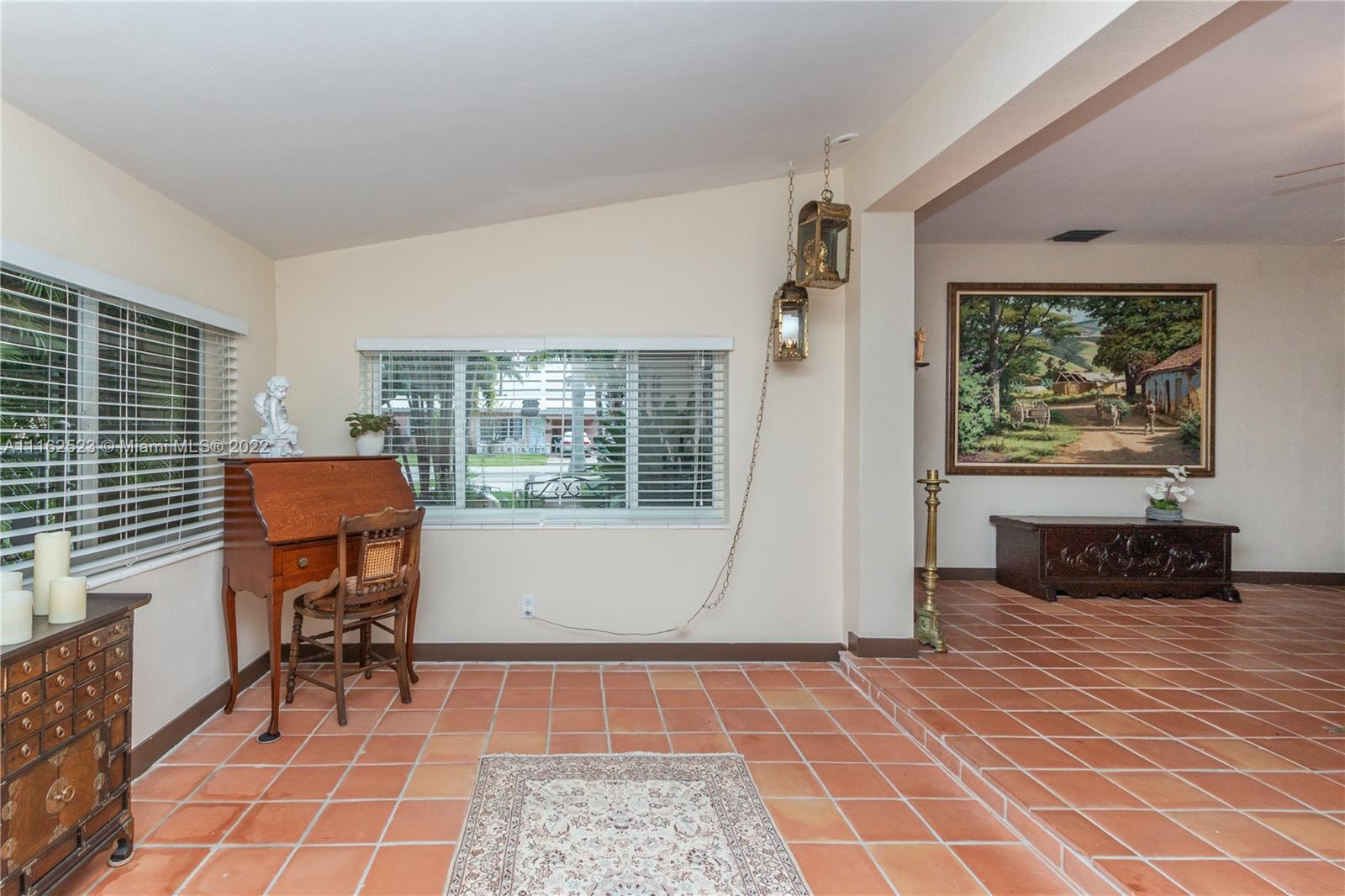 Charming 3/2 home on a quiet street of old-time residents in East Hallandale. Shows pride of ownership. Updated to modern Spanish manorial style, it features Mexican rustic terracotta floor tiles accounting for warmth in balanced contrast with airy white walls; kitchen solid wood cabinets, granite countertops and newer stainless-steel appliances; laundry room; cedar wood covering in closets; certified hurricane exterior doors. High impact glass sliding door opens onto a serene and spacious grass backyard with a wooden shed/workshop, summer shower, fountain, culinary herbs and a mature mango tree with various orchid plants. Carport, driveway and parking space for up to 6 cars. Short distance to shops, fine dining, Gulfstream racetrack, Ft Lauderdale Int’l airport and 1.3 Miles to the beach