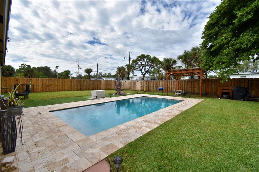 Beautifully gated corner lot home. Sits on double wide lot (2 lots) seller combined. Could potentially be separated if buyer chooses. 3 bdrm 2 bthrm split floor plan with a very spacious backyard. Crystal blue swimming pool nicely paved, custom wood pergola, screened back patio. Kitchen features upgraded granite counter tops and cabinets, stainless steel appliances, beautiful laminate flooring, washer & dryer, walk-in closets. Neighborhood is close to highways, downtown Las Olas, schools and parks.