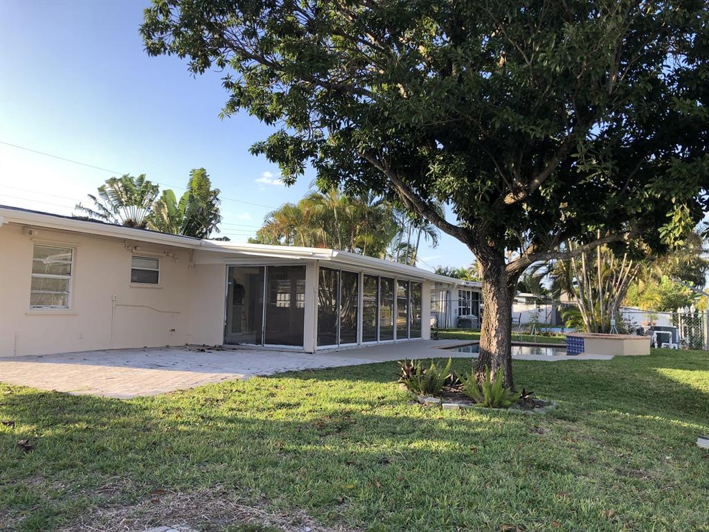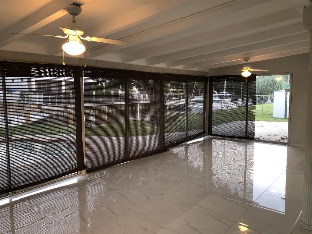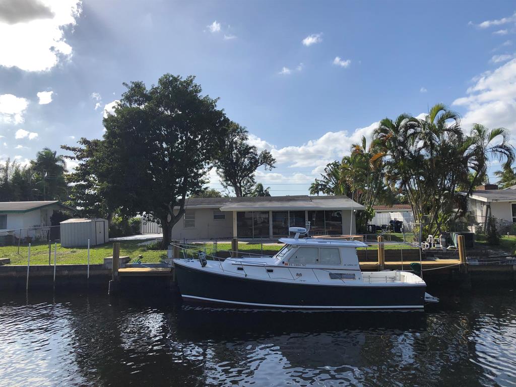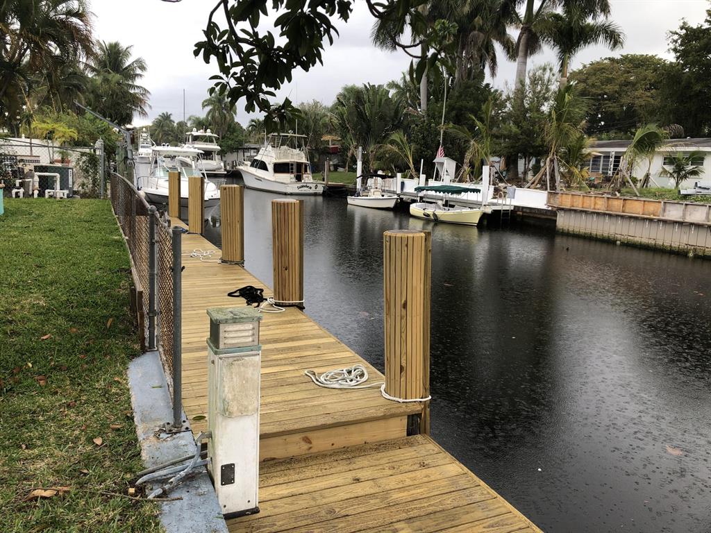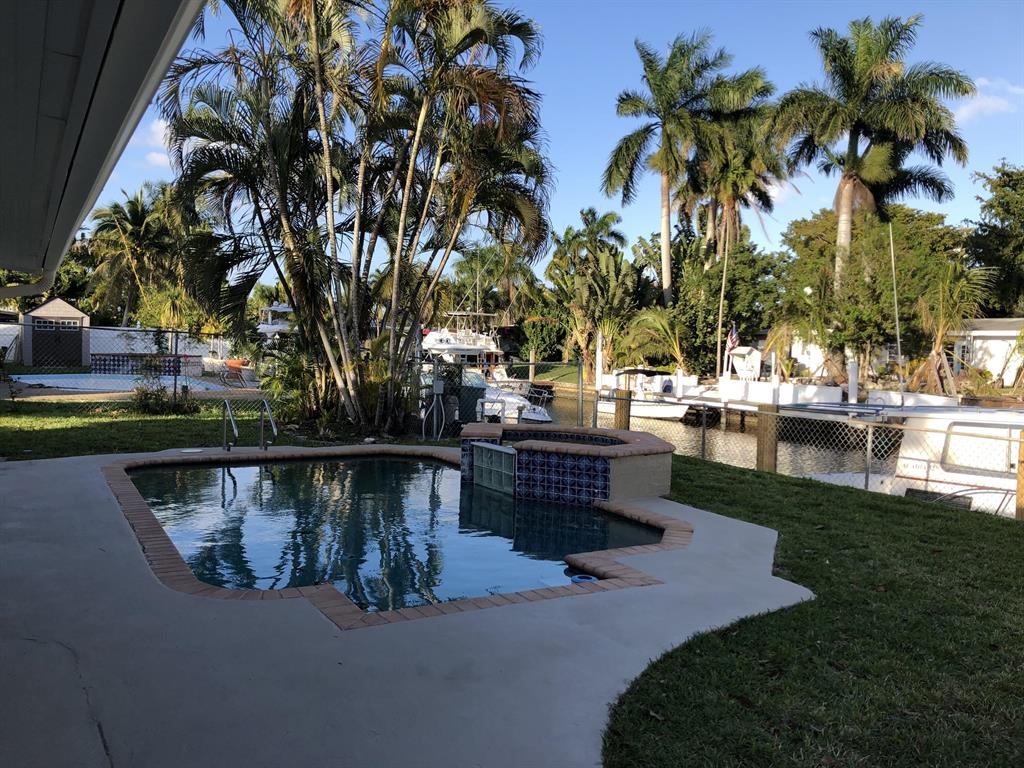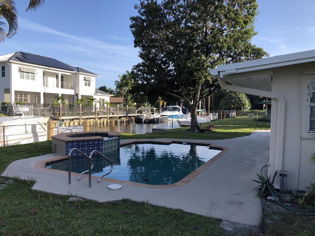 Gorgeous 4/2 90 ft. waterfront, pool home with deep water Ocean Access (only fixed bridge 54 Ft.) with NEW 53ft. dock. Large 9899 sq. ft. lot is 3 lots from the New River and has 90 ft. for large or multiple boat(s) and concrete pad for parking trailer and/or RV. The moment you walk through the front door you'll revel in the open concept views to the pool and waterfront. Bright & airy open floor plan, vaulted ceilings and Florida room. Kitchen island and adjacent dining room sure to be a gathering place for friends and family. Refurbished bathroom, master has large walk-in closet with built in-dresser, large shower. Beautiful tile floors in entire living area, tile in 3 bedrooms and new carpet in 4th bedroom, which has private entrance. Freshly painted. MOVE-IN READY. Centrally located.