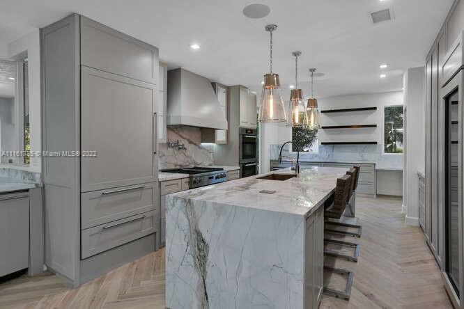 Beautiful and fully remodeled house in the gated community of Palm Estates on 22400 square foot of lusciously landscaped land. This lovely home has 4944 sqf under AC, abundance of natural light, 10 foot and vaulted ceilings, 5 bedrooms, 5 bathrooms, powder room, formal dining room, family room, 3 seating areas and a large 2 car garage. Italian flooring throughout, new gourmet kitchen, chef's island, waterfall marble counter-tops, Miele Professional gas cook-top, double oven with French grill, Subzero refrigerators, 100 bottle wine cooler and generator. This house has it all! With French lamppost light, three lined manicured access, this extraordinary home is also located near Matheson Park, Fairchild Tropical Garden and some of the top schools in South Florida.