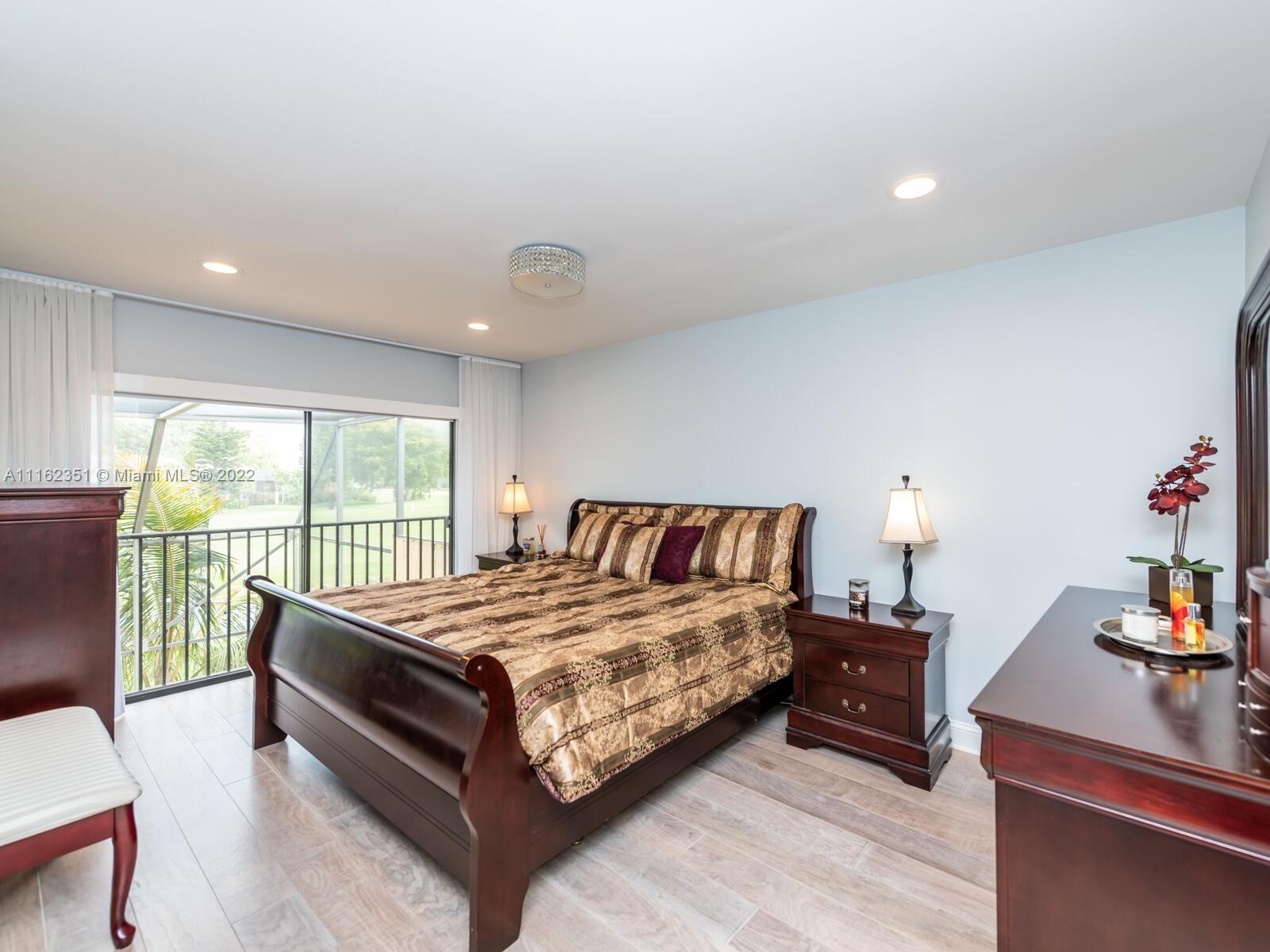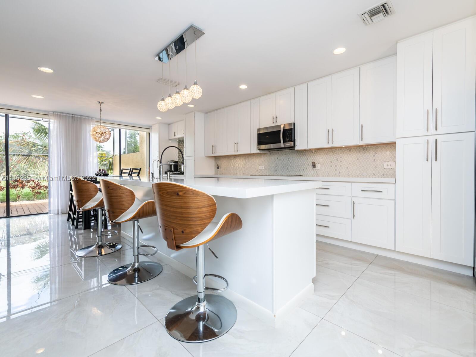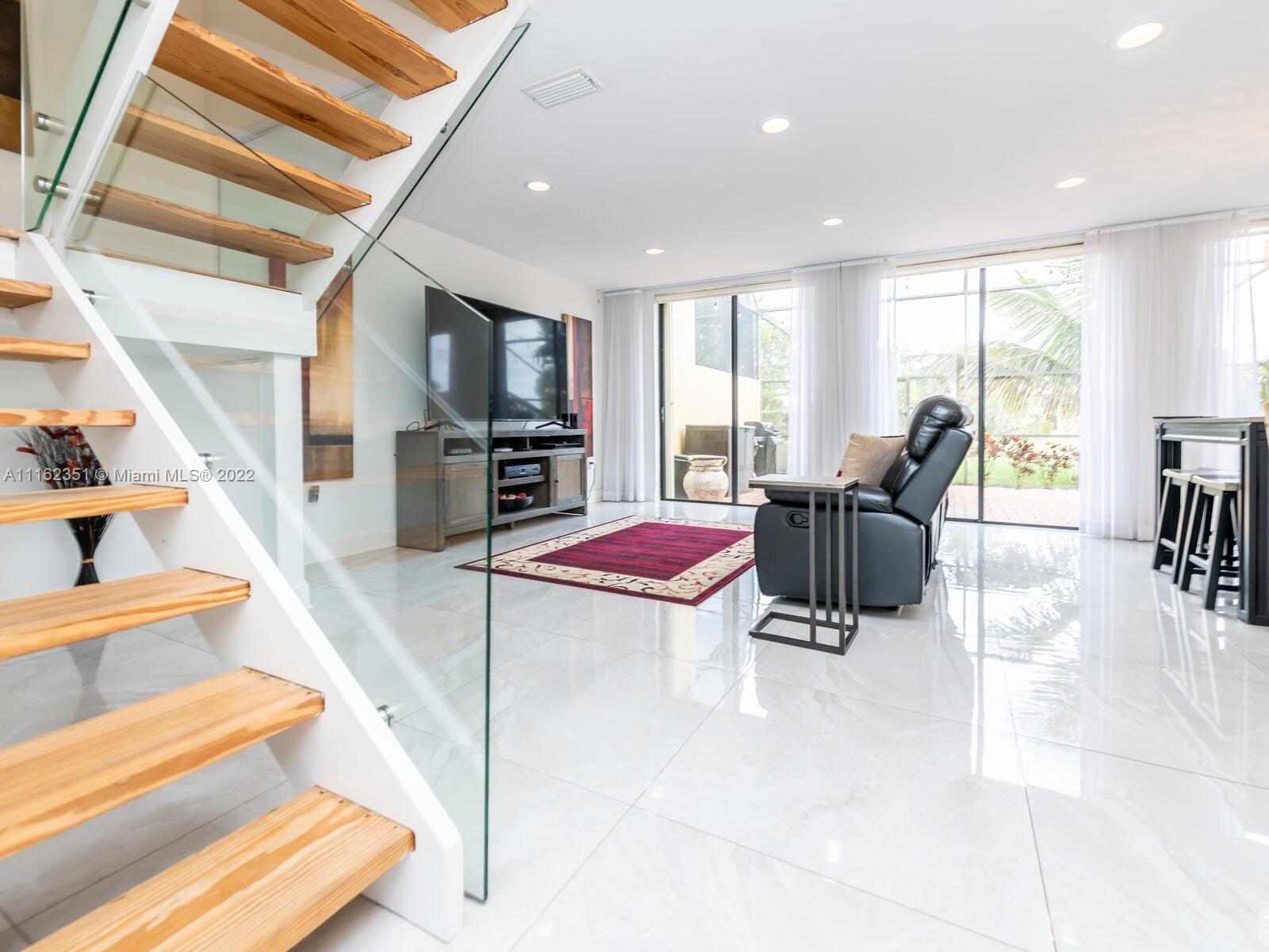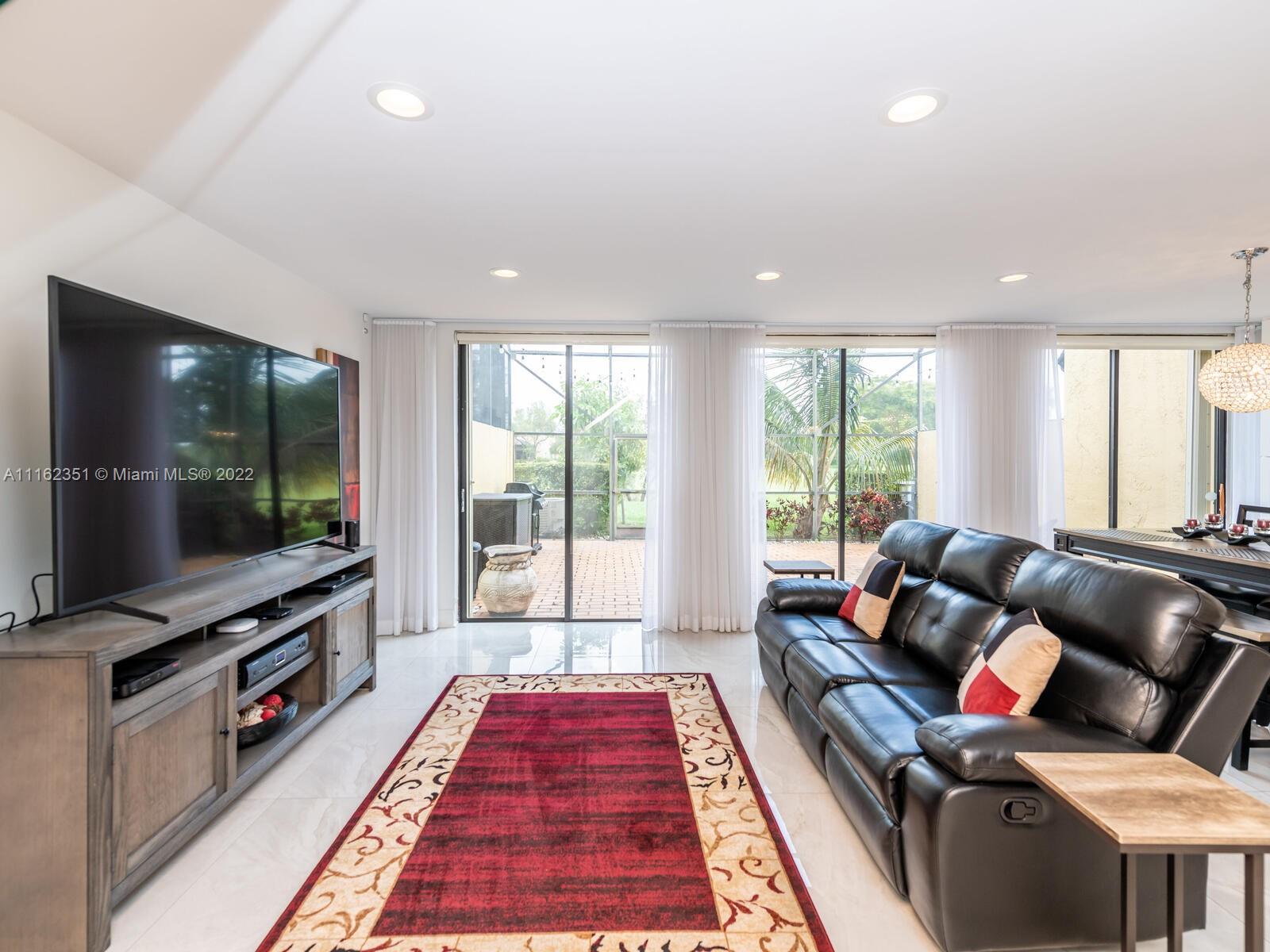 GOLFER'S PARADISE! Fully remodeled w/great materials such as porcelain (32x32) & hardwood floors. It features open kitchen & designer bathrooms. Kitchen has reversed osmosis water filter, new s/s appliances, wine rack & cooler, mini fridge. Recessed lights, Alexa/Apple home ready. Light switches w/z-wave. Bedrooms w/blackouts & sheer curtains, all custom closets, Master closet converted to walking closet. Hurricane proof garage door, Accordion shutters. Garage w/racks & freezer. Sheer curtains & roller blinds, screened terrace & spacious backyard facing Golf course. Great gated community w/18 holes golf course, tennis & basketball courts, gym, pool, playground and restaurant. No subject to appraisal. Assoc. includes roof, ext. paint, water, insur. wifi & cable. *DO NOT DISTURB TENANT*