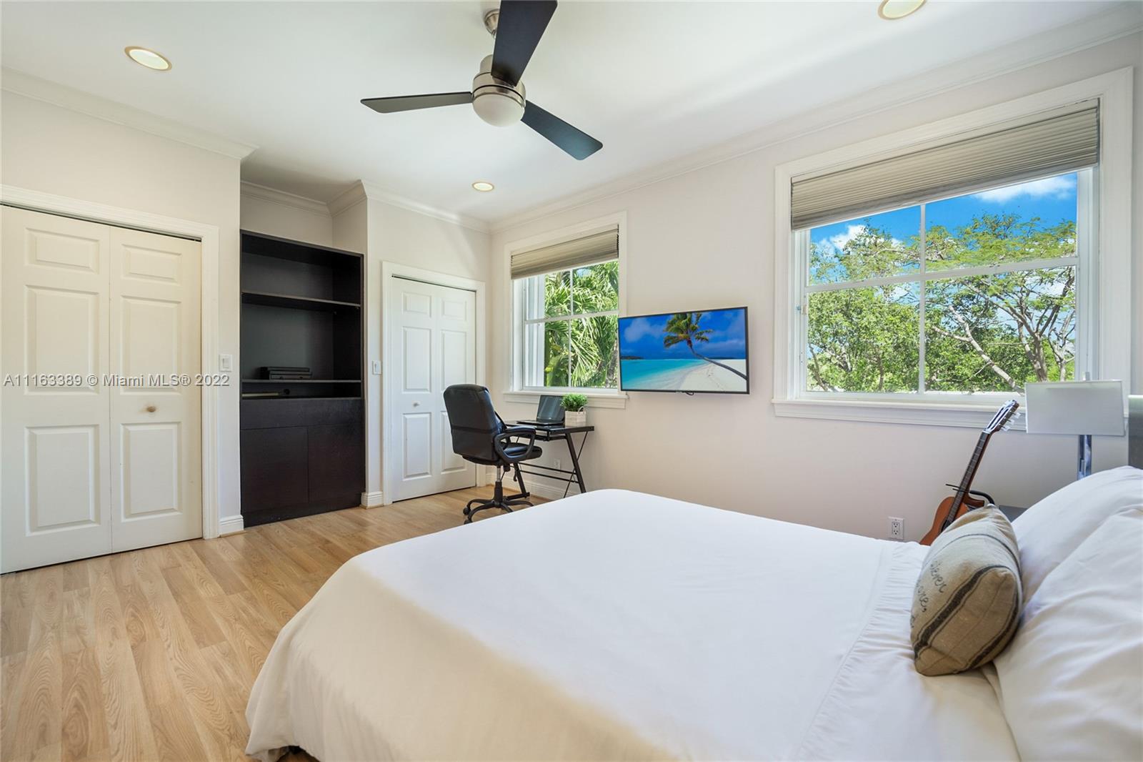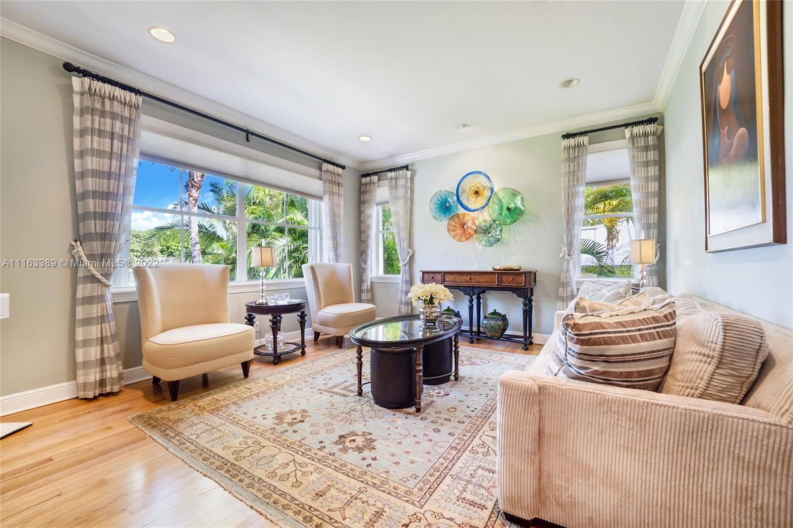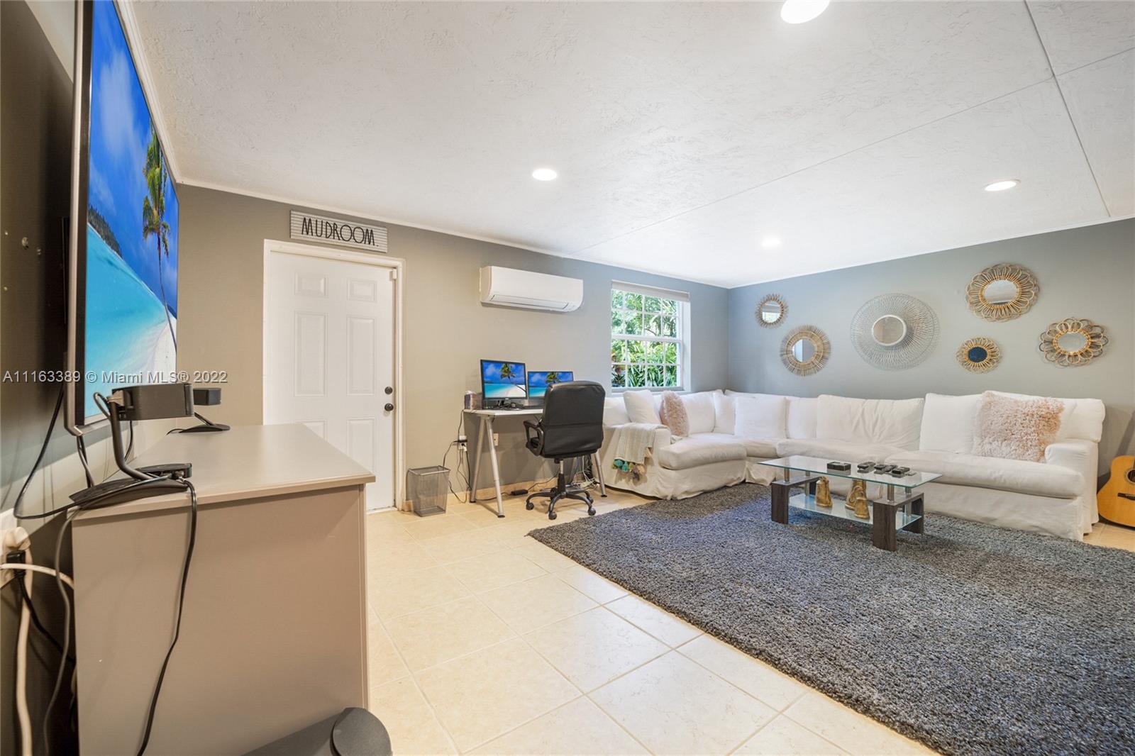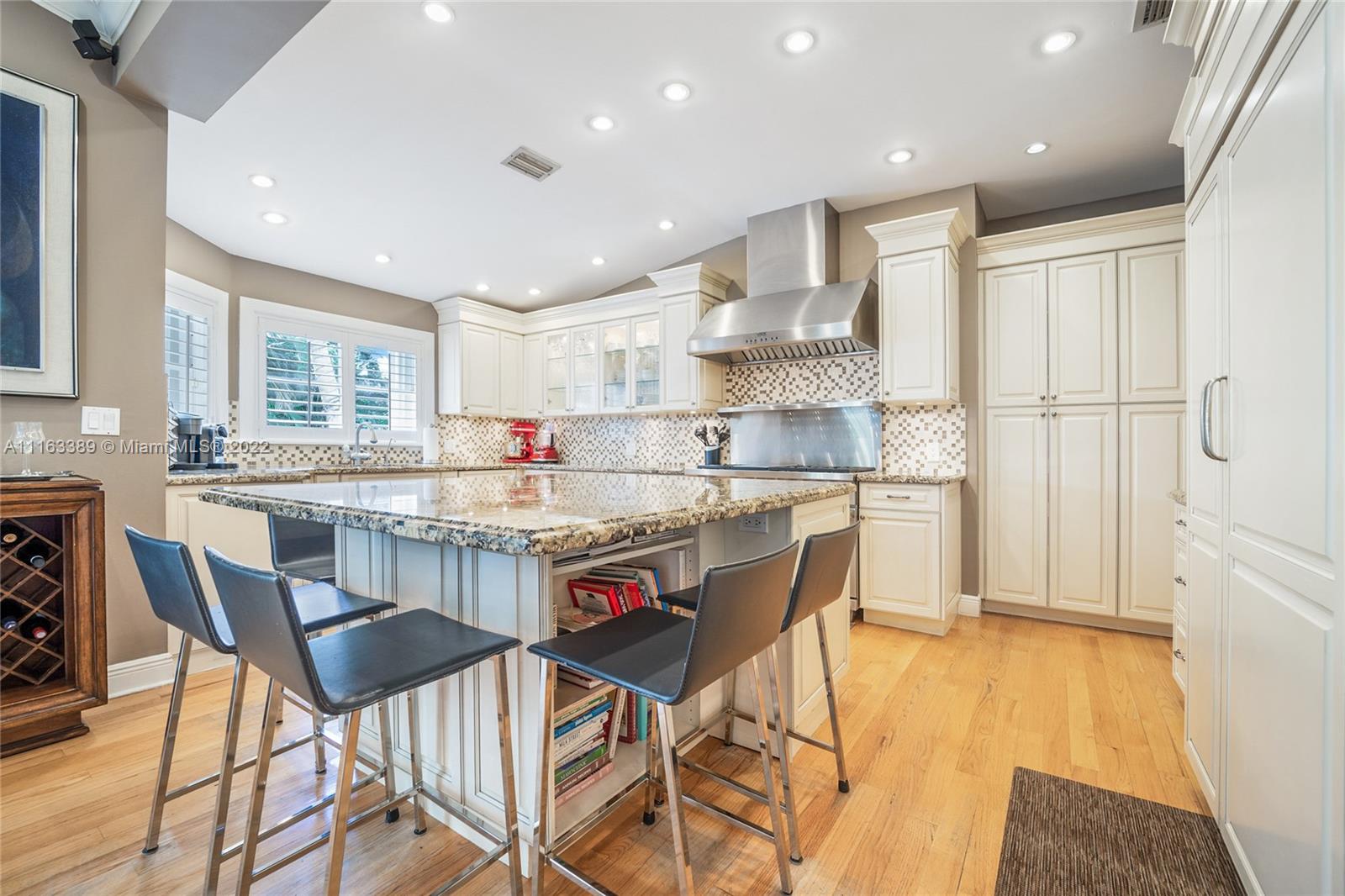 Beautiful elevated Key West style split level home located on the very desirable Myrtlewood Lane. Open layout with vaulted ceilings, combining spacious family room with large, beautiful kitchen equipped with high end appliances. Separate formal living room and dining room. 4 Bedrooms (fourth bedroom converted into an office) and 3 1/2 bath bathrooms. Double car garage converted into extra bedroom, full size bathroom and entertainment room. Family room opens to ample outside area with tiled sundeck and patio with Chicago brick pavers. New roof (2018). Hurricane shutters. Hard wood floors. Full house generator. Great house for entertaining. Beach Club membership. Seller will assign all interest in Grand Bay Club membership to buyer (pool, beach, etc.), subject to Club approval.