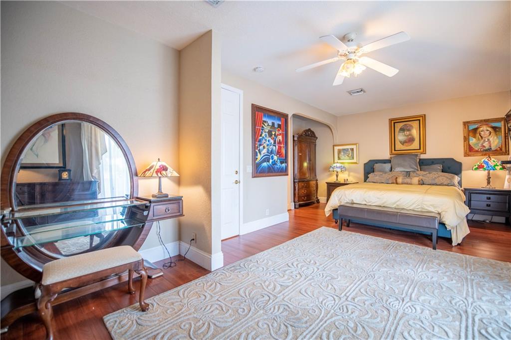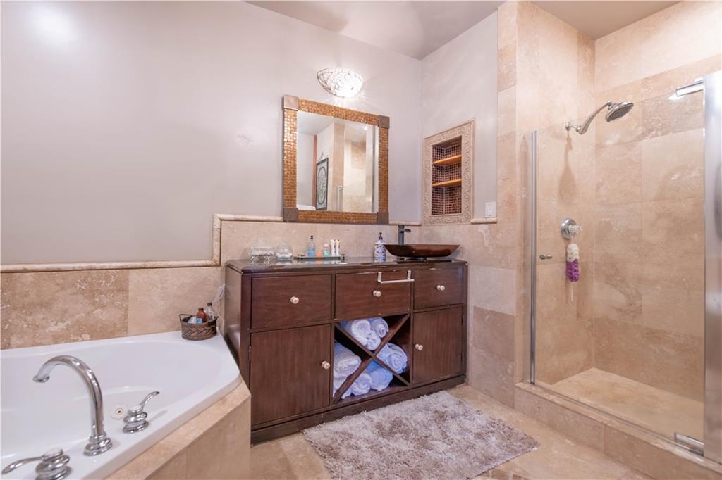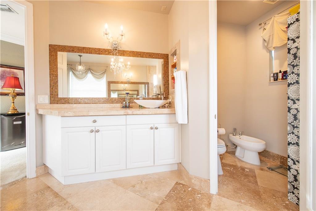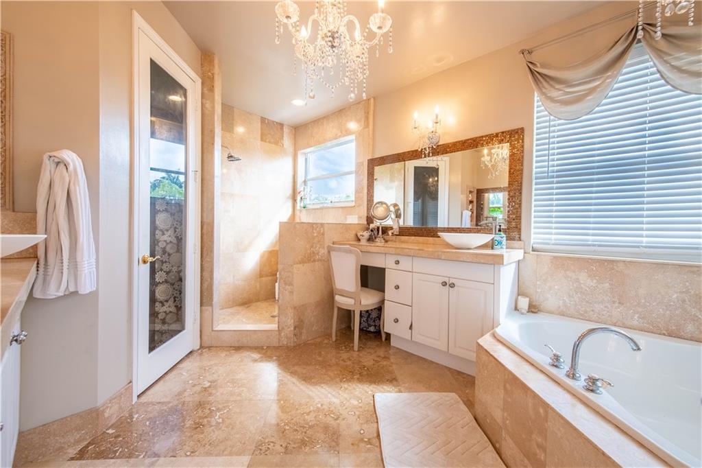 Magnificent and spacious corner lot features 5 oversized bedrooms and 6 bathrooms. The first floor has marble floors throughout and includes 2 bedrooms & 3 full bathrooms with new Jacuzzi, formal living & dining room, gourmet kitchen with real wood cabinetry & granite countertops, new microwave, breakfast area, large family room, and new water heater. Custom oak staircase. The second floor offers a huge master bedroom with a veranda and a remodeled bathroom with new Jacuzzi tub, the 2 guest bedrooms are en-suite with remodeled bathrooms including 2 new Jacuzzis tub, and new A/C unit. The outdoor space has a beautiful private patio, new fence, new canopies, lush landscaping, and an outside cabana bathroom.