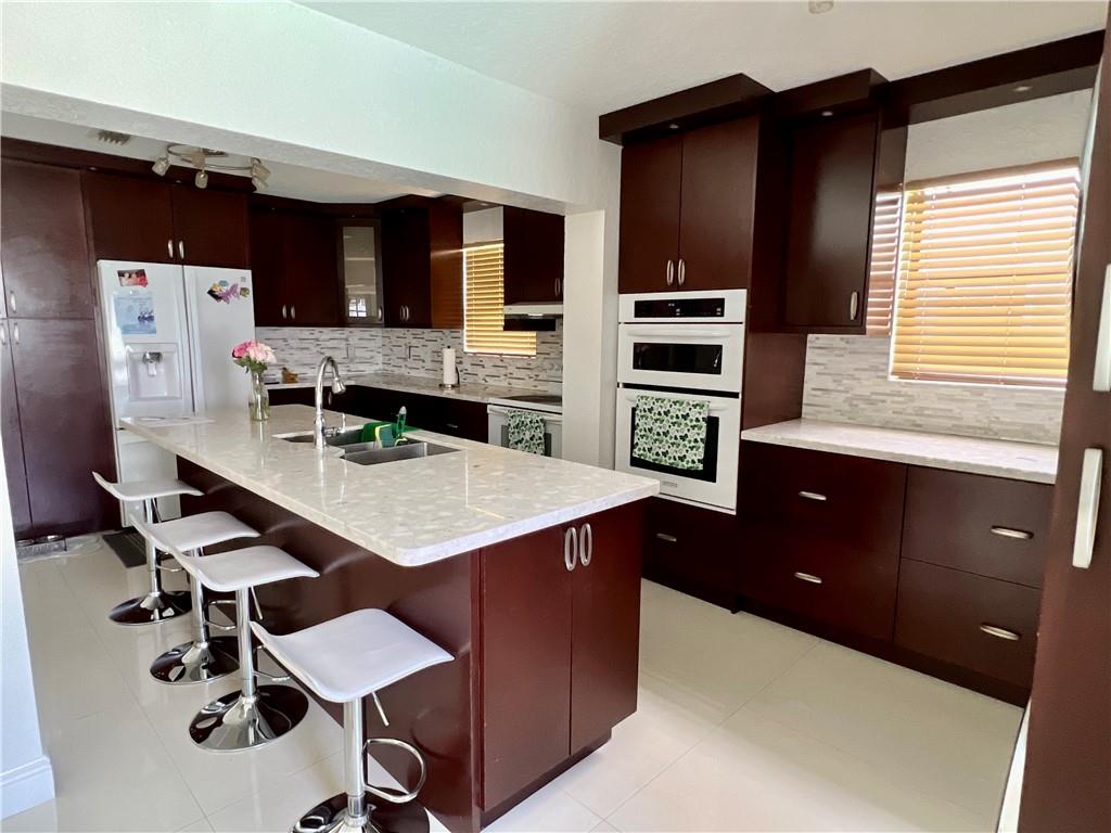 Beautiful 3/2 single family home with pool. This home features a remodeled kitchen with 3 ovens, tiled floors, modern bathrooms and beautiful, private backyard with pool. A must see, ready for move-in.