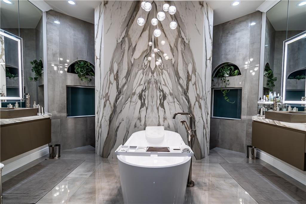 Stunning home, nothing like it on the market. Shows like a luxury resort. Spectacular 4 bedrooms 4 1/2 bath. First floor master bedroom has 2 huge walk in closets and bathroom that feels and looks like spa. Top of the line Italian porcelain floors runs throughout the main level of the home. Gorgeous wood floors on stairs and second level. Huge walled back yard, brand new marble pavers and an enormous salt water pool that has two sun shelves and hot tub. Professional outdoor kitchen and bar station. Custom kitchen, latest appliances, 48inch range, large pantry room and tons of storage. Oversized laundry with two washing machines, brand new generex generator powers whole house, 3 car garage with Apoxy flooring and lots of storage, lots of attic space. To much to list. A must see.