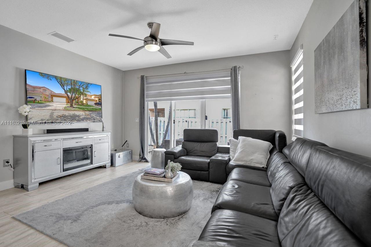 Great floor plan in this single family home situated in the beautiful neighborhood of Melrose Cove in Monarch Lakes. You are minutes away from brand new shopping centers, restaurants and more. West Miramar has it all!! The home has a stunning and spacious renovated kitchen that is open to the family room. Bathroom elegantly remodeled. Lovely window treatments, and fenced back yard perfect for entertaining. Low HOA with great amenities from basketball courts, kids playground and pool area.