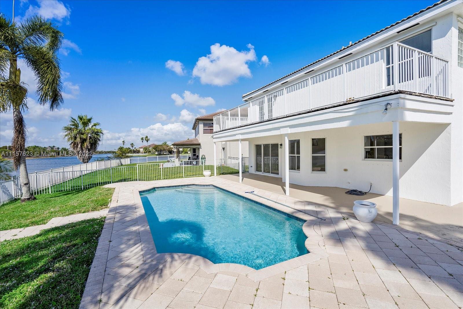 Gorgeous pool and lakefront home in the heart of Silver Lakes. 5/3 home with a 3 car garage in a gated community. One bedroom downstairs with one full bathroom downstair. Home is very airy and bright with tons of windows. All brand-new tile downstairs. Open layout with vaulted and tall ceilings. Quartz countertops and all brand new appliances. Kitchem also includes bar area. Master bedroom has a full size balcony overlooking the pool and lake. 2 walk in huge master closets. The best part the master has a soaking tub! New shower and New shower floors!