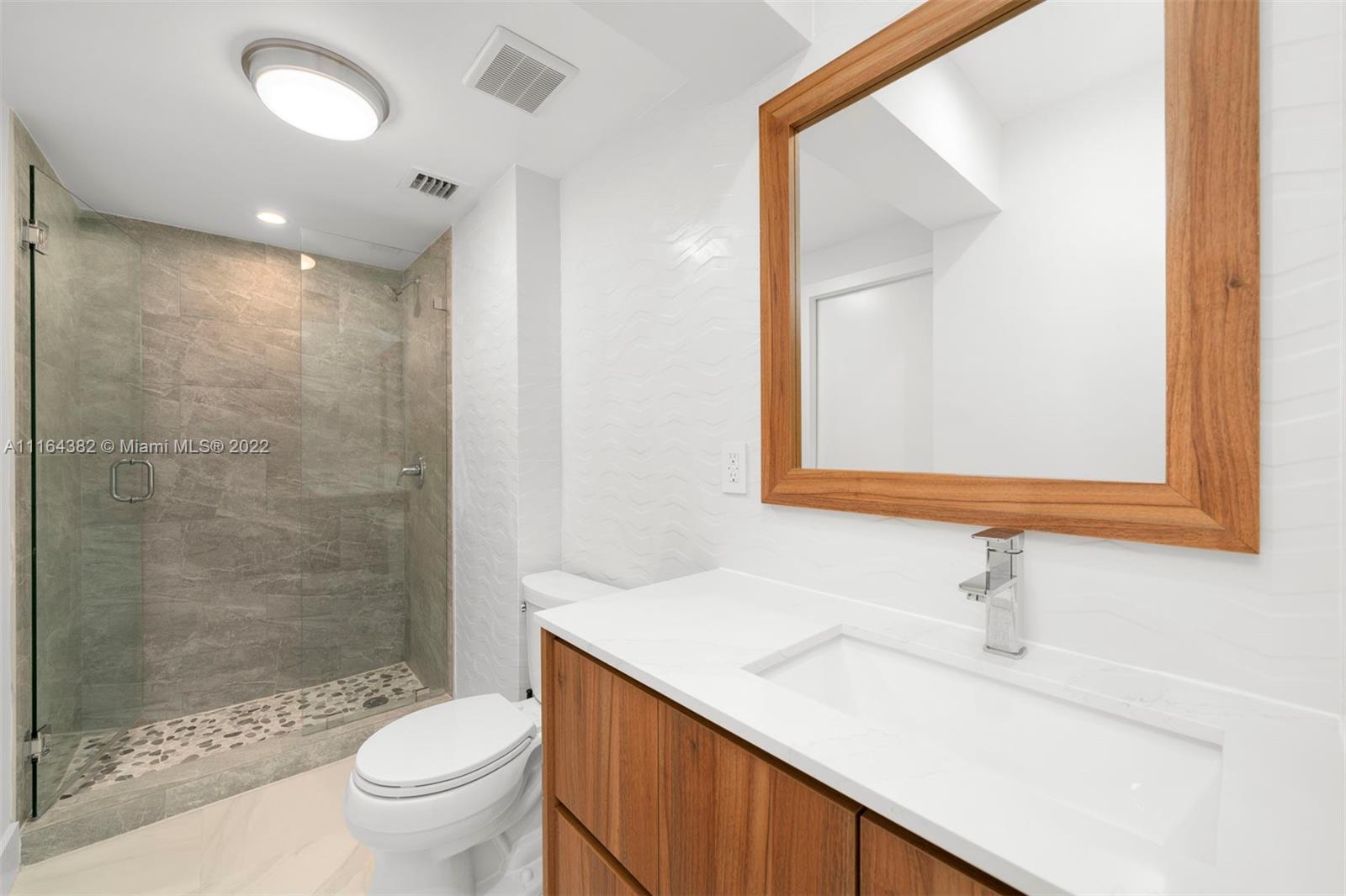 Completely renovated home in a gated community with outstanding views of Normandy Shores Golf Club! This home is complete with 3 en suite bedrooms with features including brand new impact windows and doors, new custom kitchen cabinets, quartz counter tops, new appliances, laundry room, and updated plumbing. Enjoy complete indoor/outdoor living as there is a full summer kitchen complete with a BBQ and outdoor shower and powder room.