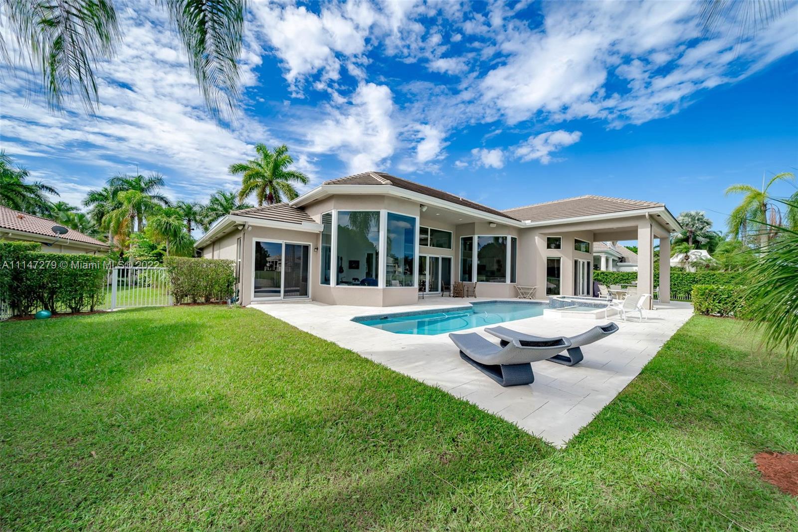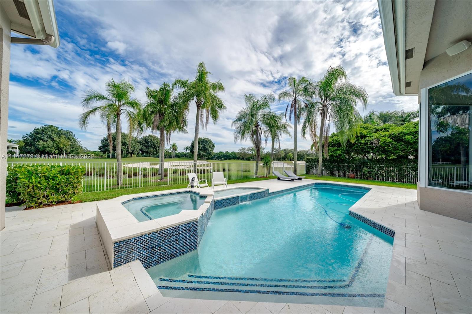 Gorgeous custom home sat on a beautiful golf course lot in the prestigious community of The Reserve in Weston Hills Country Club. Step into luxury with gleaming marble flooring and lots of natural light. Brand new impact windows and doors throughout the house. 4 bed/ 4.5 bath + Office. Fully upgraded kitchen with white quartz countertops and large eat in island. Wood floors in all bedrooms, upgraded bathrooms, custom built closets, central vac, electronic blinds and more. Long golf course views from your sparkling pool, fully fenced and private. Great curb appeal with a large driveway with side entry 3 car garage. Perfect for entertaining guests! This home is kept in pristine condition and ready to move in.