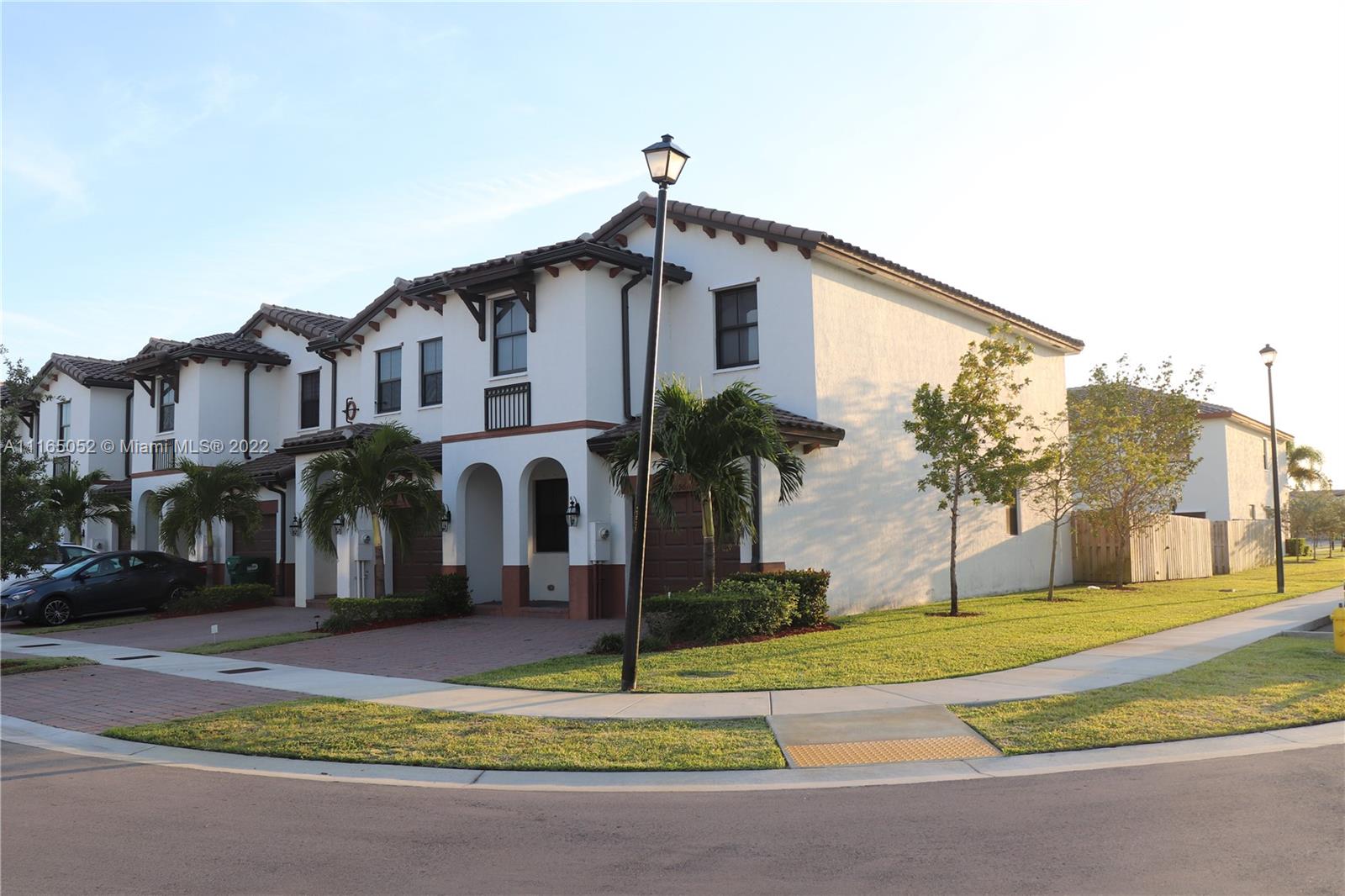 Corner Townhouse at the Gated Community ASTORIA AT DORAL. 4 bedrooms, 3 bathrooms. One bedroom and full bathroom downstairs. Very quiet and family oriented community. Excellent location, near school, Publix, CVS, restaurants, Principal highways, etc. Huge Club house with pools, gym and beautiful amenities. PLEASE READ BROKER REMARKS.