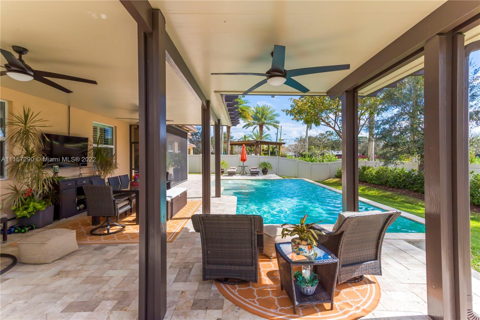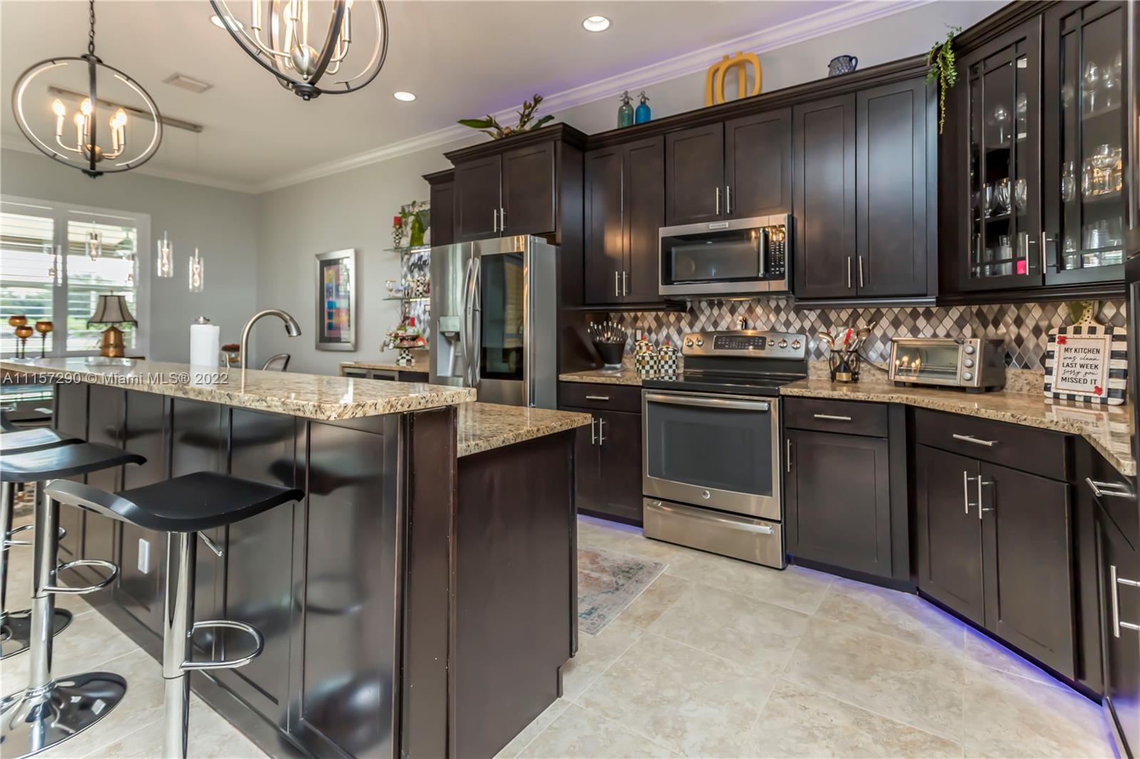 IMMACULATE & STUNNING 1 STORY POOL HOME! OPEN KITCHEN W ISLAND/COUNTER, STAINLESS STEEL APPLIANCES (BRAND NEW FRIDGE & MICROWAVE) COFFEE BAR/WINE BAR, GRANITE COUNTERS & WOOD CABINETS W/MOSAIC TILE BACKSPLASH. GORGEOUS TILE & WOOD FLOORING THROUGHOUT. SPLIT FLOOR PLAN W FABULOUS MASTER SUITE, TRAY CEILING, MASTER BATH W/ DOUBLE VANITIES, JACUZZI TUB, SEPARATE SHOWER. CUSTOM CABINETRY IN ALL CLOSETS, LAUNDRY ROOM & GARAGE. ELEGANT FIXTURES & ACCENTS, FRESHLY PAINTED, CROWN MOLDING, PLANTATION SHUTTERS; LAUNDRY ROOM W/SINK. COVERED PATIO W/ELECTRIC RETRACTABLE SCREEN! LOUNGE IN REFRESHING SALTWATER POOL OR RELAX UNDER NEW PERGOLA W/ CEILING FANS! COMPLETELY FENCED IN & IMPACT WINDOWS THROUGHOUT! ONLY 26 HOMES IN AMAZING DAVIE COMMUNITY LOCATED NEAR 595, 75, TURNPIKE & SAWGRASS EXPRESSWAYS!