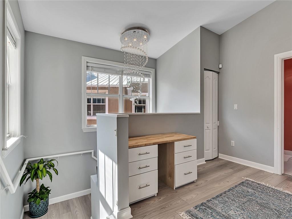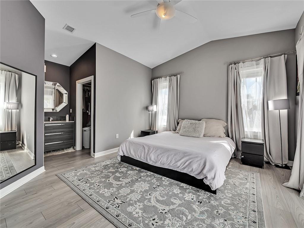 • Интерьер:ClosetCabinetry, FirstFloorEntry, HighCeilings, LivingDiningRoom, MainLivingAreaEntryLevel, UpperLevelMaster, WalkInClosets