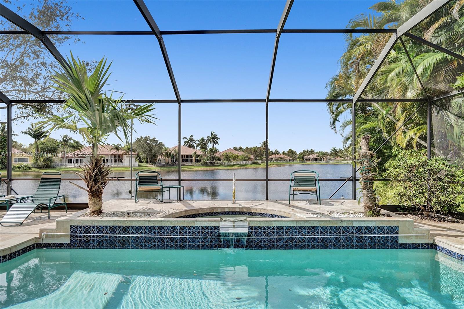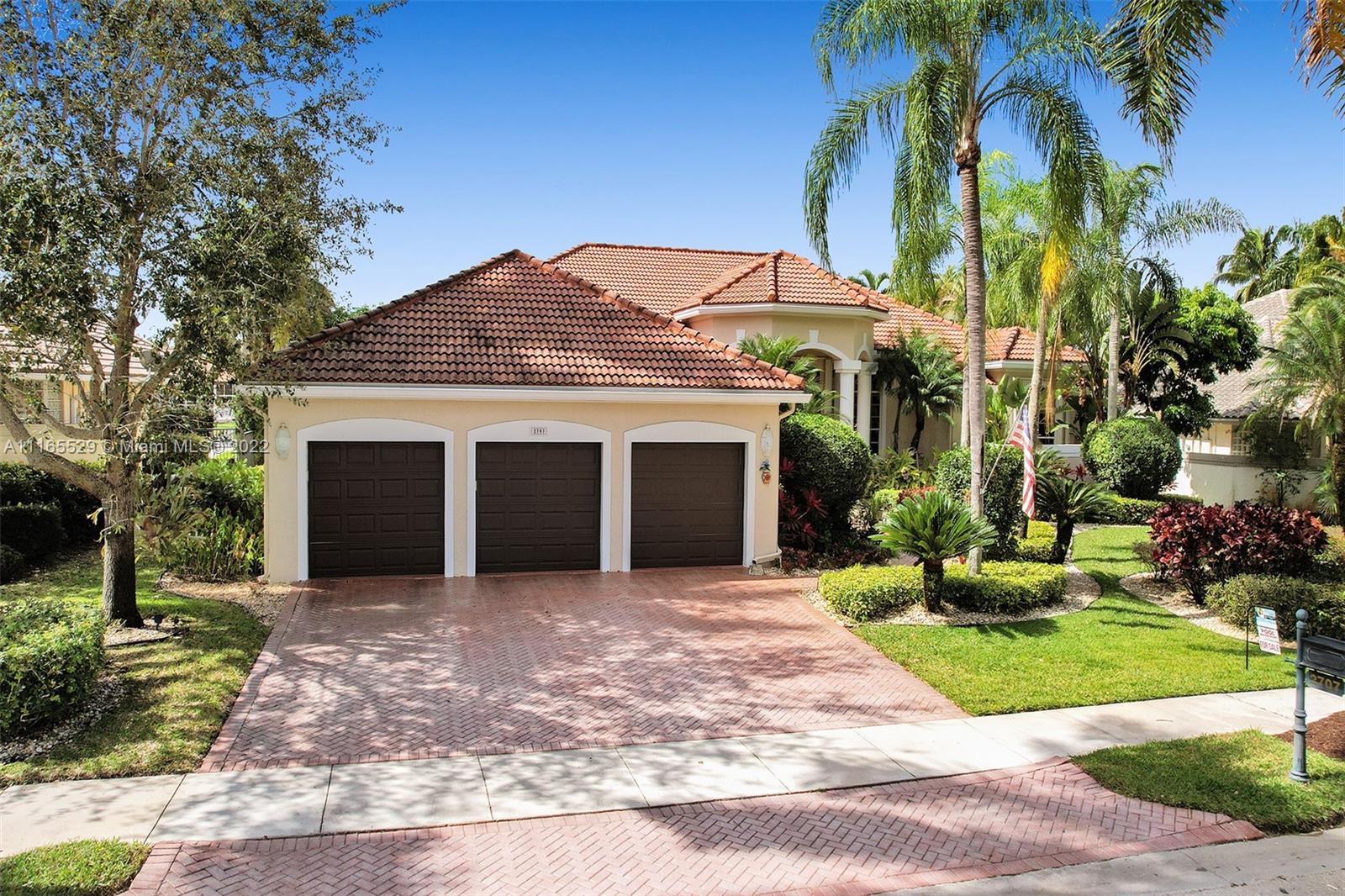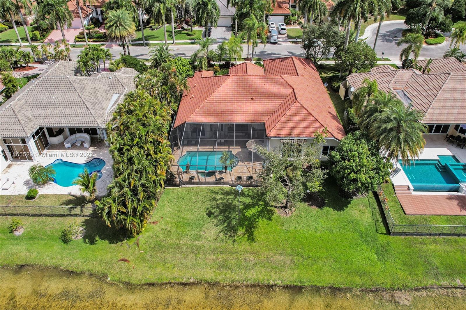 TUCKED ON A ROYAL PALM TREE-LINED CUL-DE-SAC STREET IN THE GATED COMMUNITY OF WESTON HILLS CC. CUSTOM ONE-STORY HOME WITH INCREDIBLE LONG LAKE VIEWS. 5 BED/+ OFFICE/ 5 FULL BATH 3 CAR. RENOVATED MASTER BATH WITH VESSEL TUB, GRANITE COUNTERTOPS, AND OVERSIZED SHOWER. MARBLE FLOORING THROUGHOUT LIVING AREAS. RENOVATED MODERN KITCHEN WITH GRAND CENTER ISLAND, STAINLESS STEEL, REFRIGERATOR, AND GRANITE COUNTERTOPS. RENOVATED TRAVERTINE POOL DECK WITH HEATED POOL/SPA WITH EXPANSIVE SCREENED POOL DECK, PLUS ADDITIONAL SIDE YARD WITH 2 AWNINGS AND ROOM FOR PLAY-SET. PLENTY OF ROOM IN THE LARGE BACKYARD. FRESHLY PAINTED INTERIOR. NEW ROOF 2020. FULL ACCORDION HURRICANE PROTECTION.
