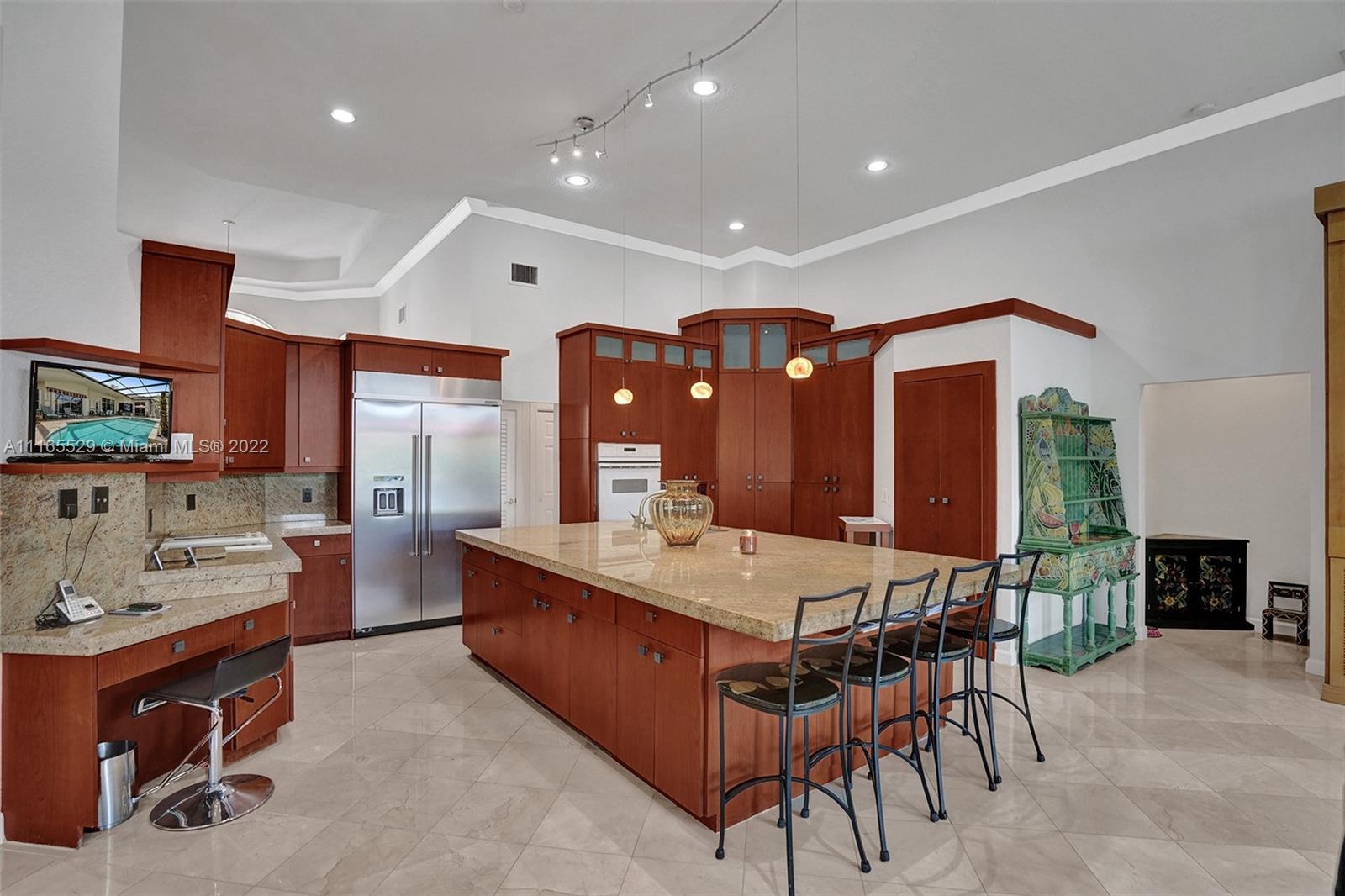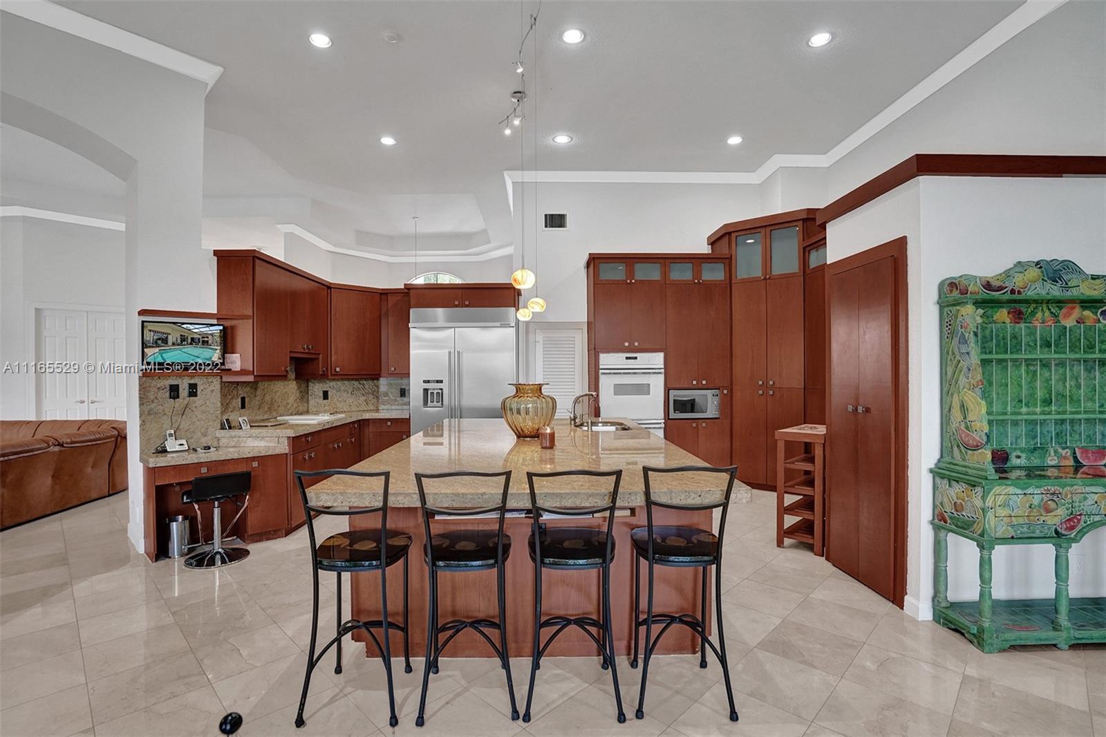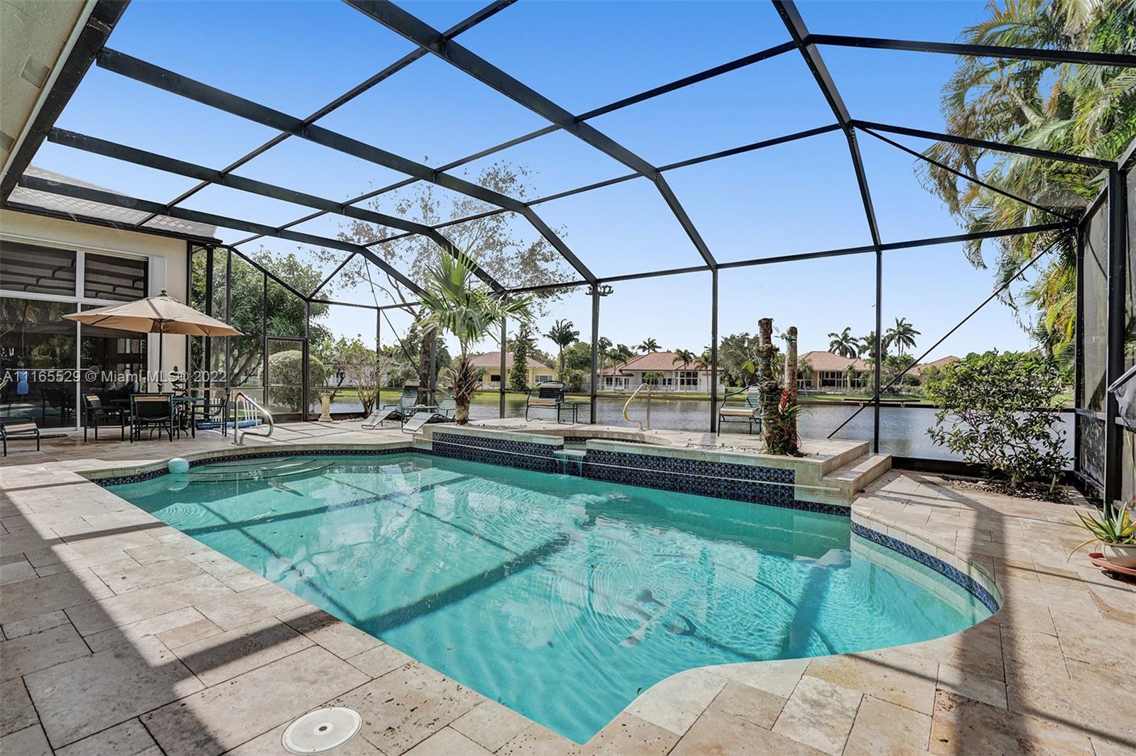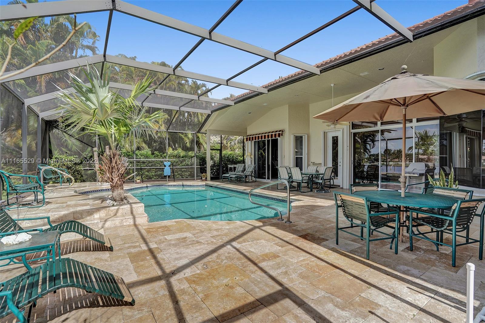 TUCKED ON A ROYAL PALM TREE-LINED CUL-DE-SAC STREET IN THE GATED COMMUNITY OF WESTON HILLS CC. CUSTOM ONE-STORY HOME WITH INCREDIBLE LONG LAKE VIEWS. 5 BED/+ OFFICE/ 5 FULL BATH 3 CAR. RENOVATED MASTER BATH WITH VESSEL TUB, GRANITE COUNTERTOPS, AND OVERSIZED SHOWER. MARBLE FLOORING THROUGHOUT LIVING AREAS. RENOVATED MODERN KITCHEN WITH GRAND CENTER ISLAND, STAINLESS STEEL, REFRIGERATOR, AND GRANITE COUNTERTOPS. RENOVATED TRAVERTINE POOL DECK WITH HEATED POOL/SPA WITH EXPANSIVE SCREENED POOL DECK, PLUS ADDITIONAL SIDE YARD WITH 2 AWNINGS AND ROOM FOR PLAY-SET. PLENTY OF ROOM IN THE LARGE BACKYARD. FRESHLY PAINTED INTERIOR. NEW ROOF 2020. FULL ACCORDION HURRICANE PROTECTION.