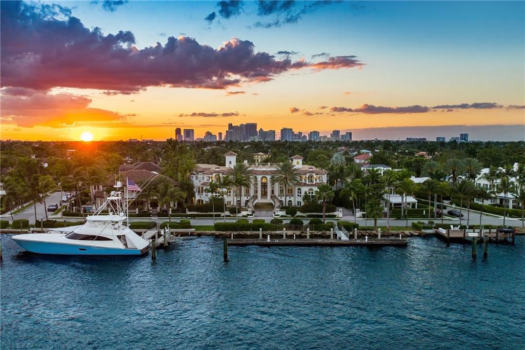 Magnificent estate in the highly desirable Idlewyld neighborhood! This gated property affords sensational Intracoastal views w/mega yacht dockage. Upon arrival, you are greeted by a grand double staircase leading to a breathtaking great room. Features include theater, elevator, family & formal dining rooms, 2 offices, VIP guest suite & gym. Equipped w/security cameras, audio & alarm systems. Custom reimagined chef's kitchen w/La Cornue gas range, high-end appliances & marble countertops. Large main suite w/sitting area overlooking the Intracoastal, morning bar, bathroom w/dual vanities, water closets & walk-in closets. Rooftop terrace w/360 degree views of the ocean, Intracoastal & City. Private backyard w/heated pool, BBQ & cabana bath. Just minutes to Las Olas dining, shops & FTL Beach.