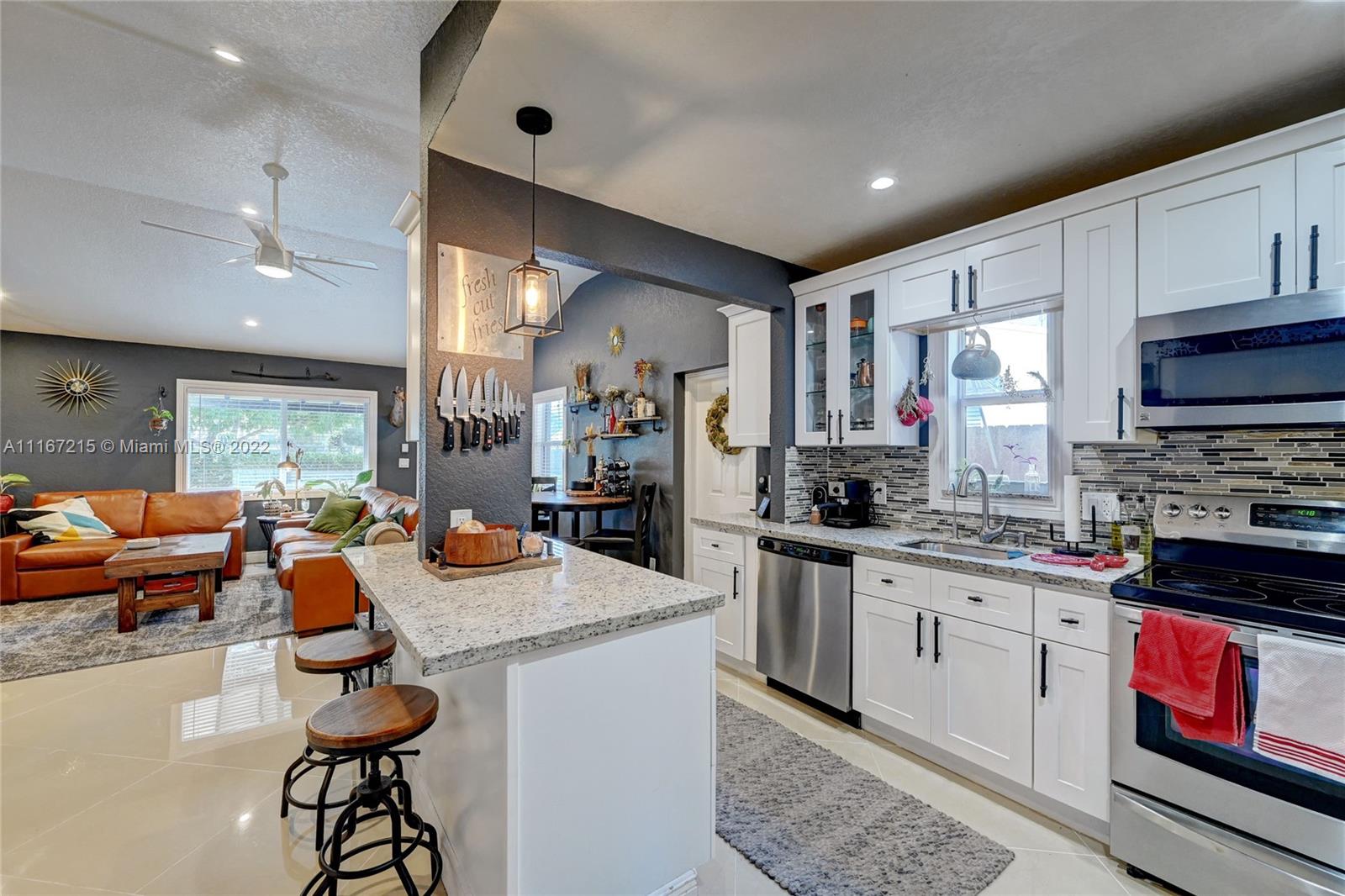 Make your memories in this lovely 3/2 home located in Progresso neighborhood. Property features remodeled kitchen, SS appliances, granite counter tops, new bathrooms, 24x24 porcelain floors throughout, RainSoft water treatment, freshly painted, newer a/c and tankless water heater. With impact windows, open living area with volume ceilings and spacious bedrooms. Large fenced back yard with lots of fruit trees, a shed for extra storage and a cozy fire pit perfect for entertaining. Updated sprinkler system and more. Close to Wilton Manors and Downtown Fort Lauderdale, with easy access to main highways.