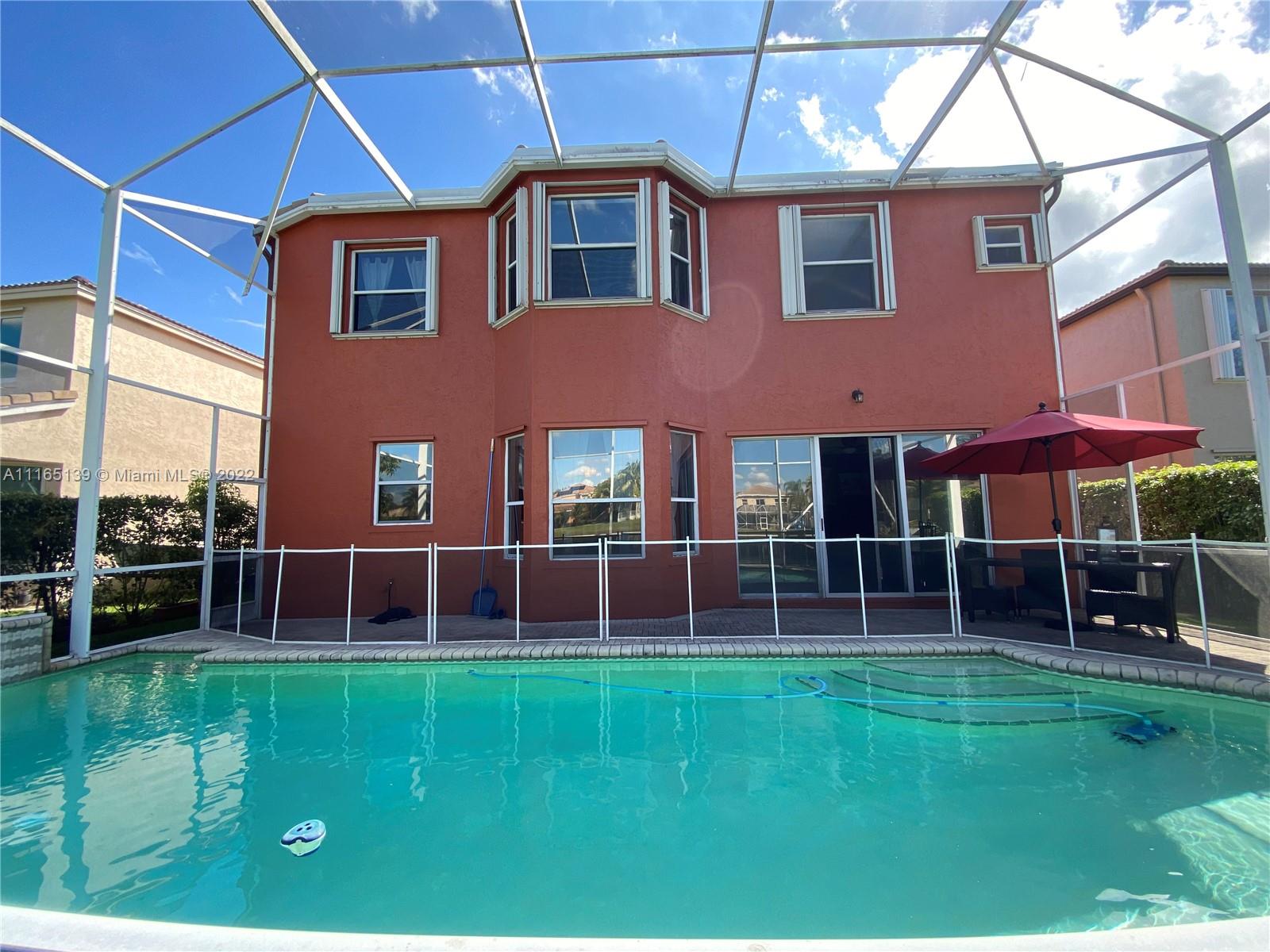 Absolutely beautiful, 2-story waterfront, pool home in the desirable community of Riviera Isles. 5 bedrooms 3.5 baths, plus large loft. Home is Spaciously and tastefully designed for entertaining, offering open floor plan, completely updated kitchen, stone countertop, wood cabinetry, kitchen island and stainless steel appliances, overlooking a generous family room. Master bedroom with sitting area, spacious masterbath, double vanity and separate tub and shower. And, an extra large walking closet. Enjoy your evening on your backyard with expansive view of the lake. Child fenced Screened in pool. COMMUNITY offers: Resort style club house with kitchen access, Heated Olympic size pool with Jacuzzi, fitness center, yoga class, basketball and tennis court. All near turnpike and I-75. A+ schools