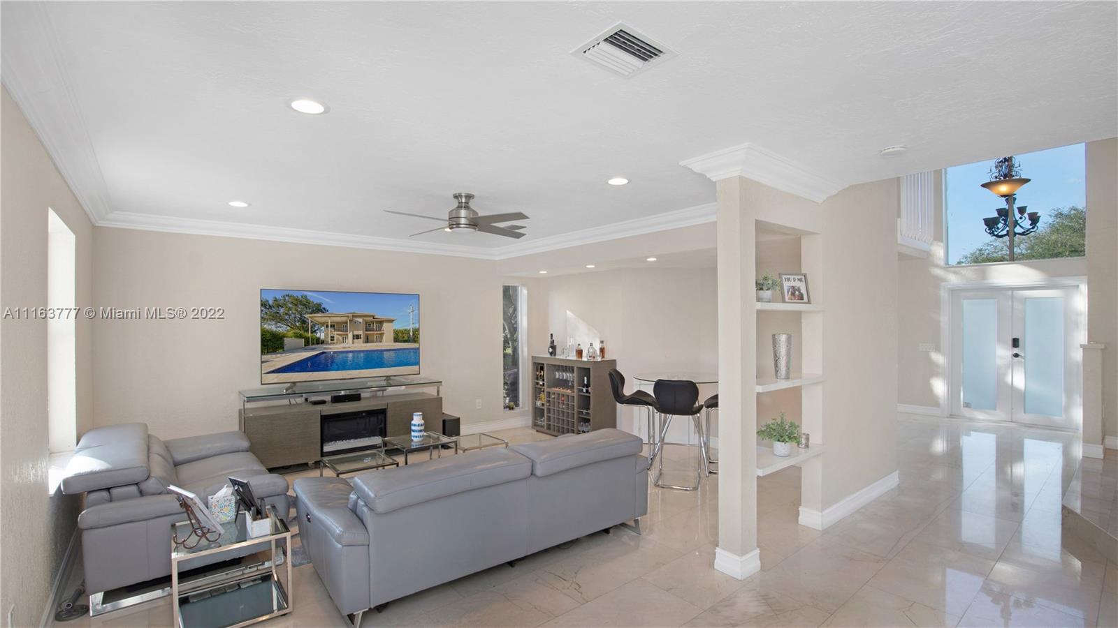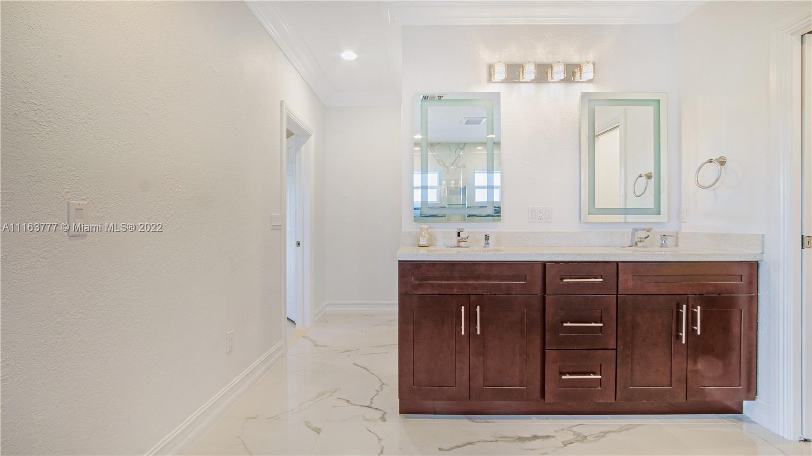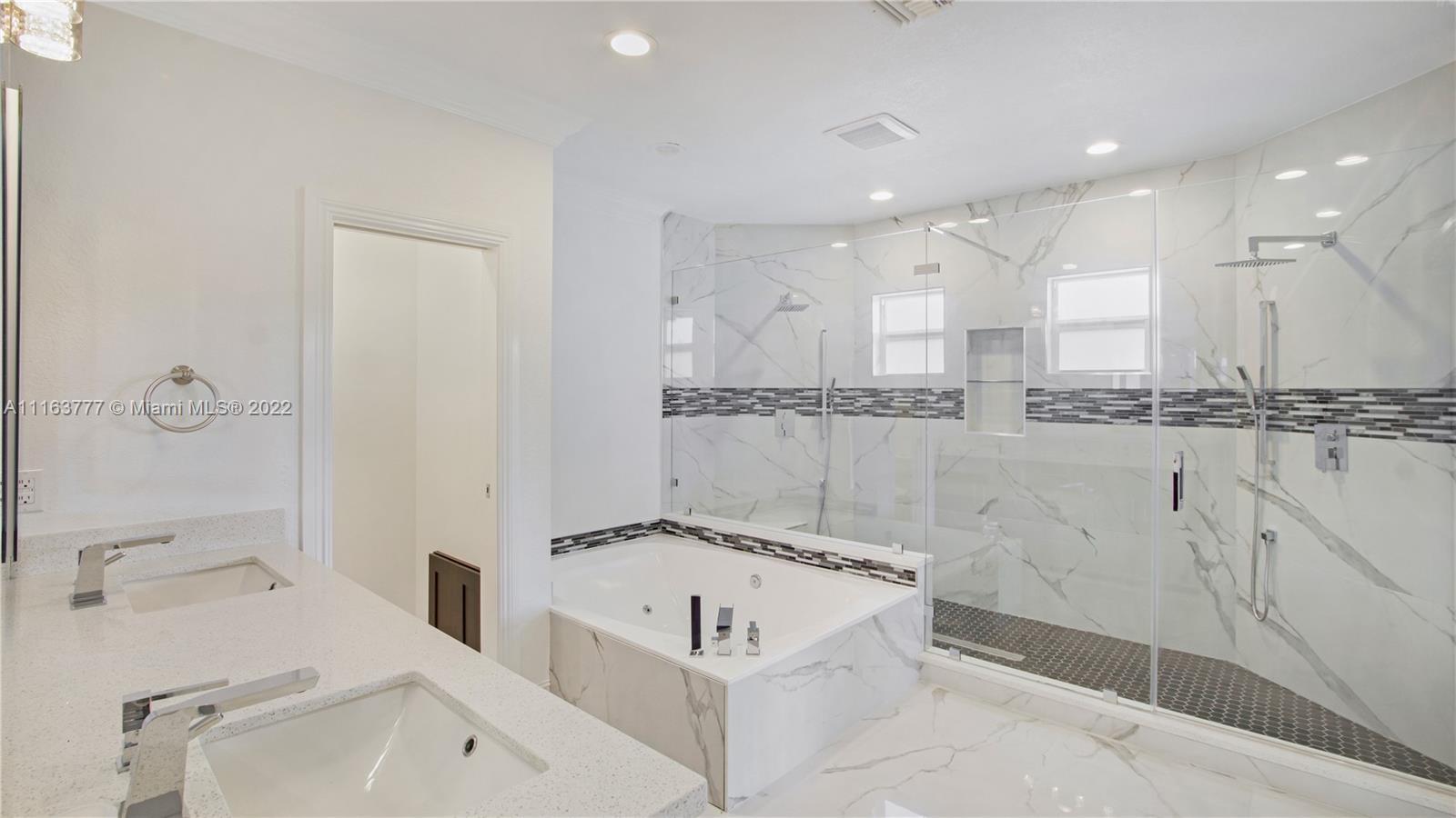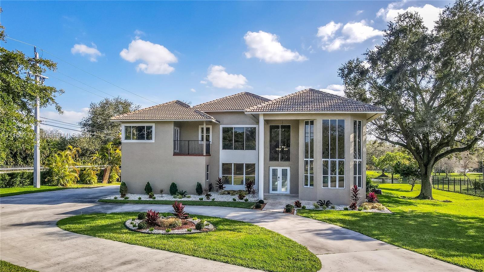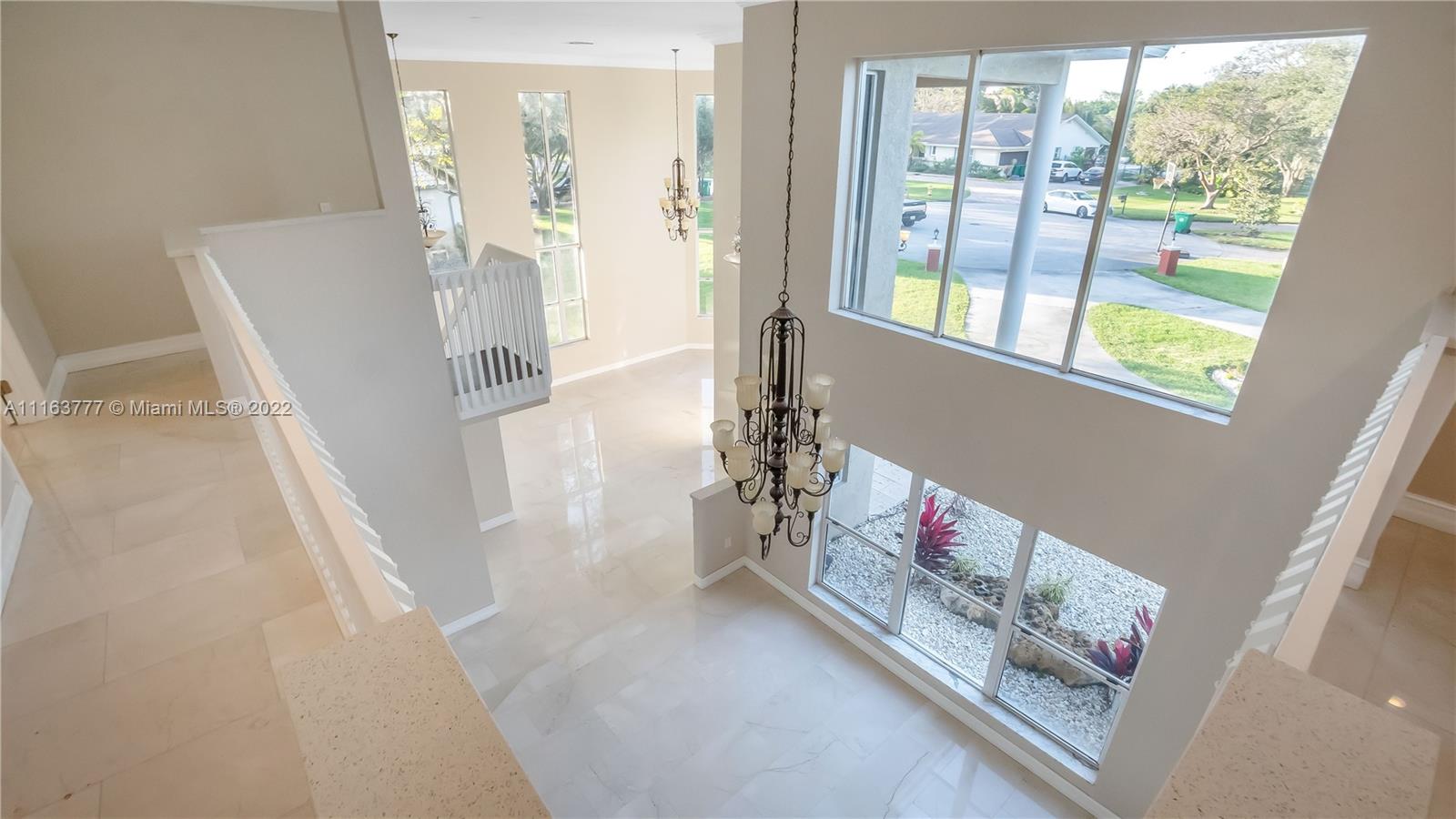 This beautifully remodeled 2 story single family home located in the highly desired community of Whispering Pines on over an acre of land and fantastic lake views could be your dream home. Home located on a Cul-de-sac features volume ceilings, 4 bedrooms, 3.5 bathrooms, marble floors throughout, new roof 2019, 2 AC units 2017 (4 tons each), 2 hot water heaters 2017, 9 impact glass doors installed in 2020, huge pool 20x40 with separate jacuzzi tub, over 2,000 sq ft of brand new travertine pool deck, brand new diamond brite in pool, brand new kitchen with quartz counters, top of the line stainless steel appliances, each bedroom has its own balcony, brand new landscaping with prewired of outdoor lighting, circular driveway, A+ rated schools, close to highways, shops and restaurants.