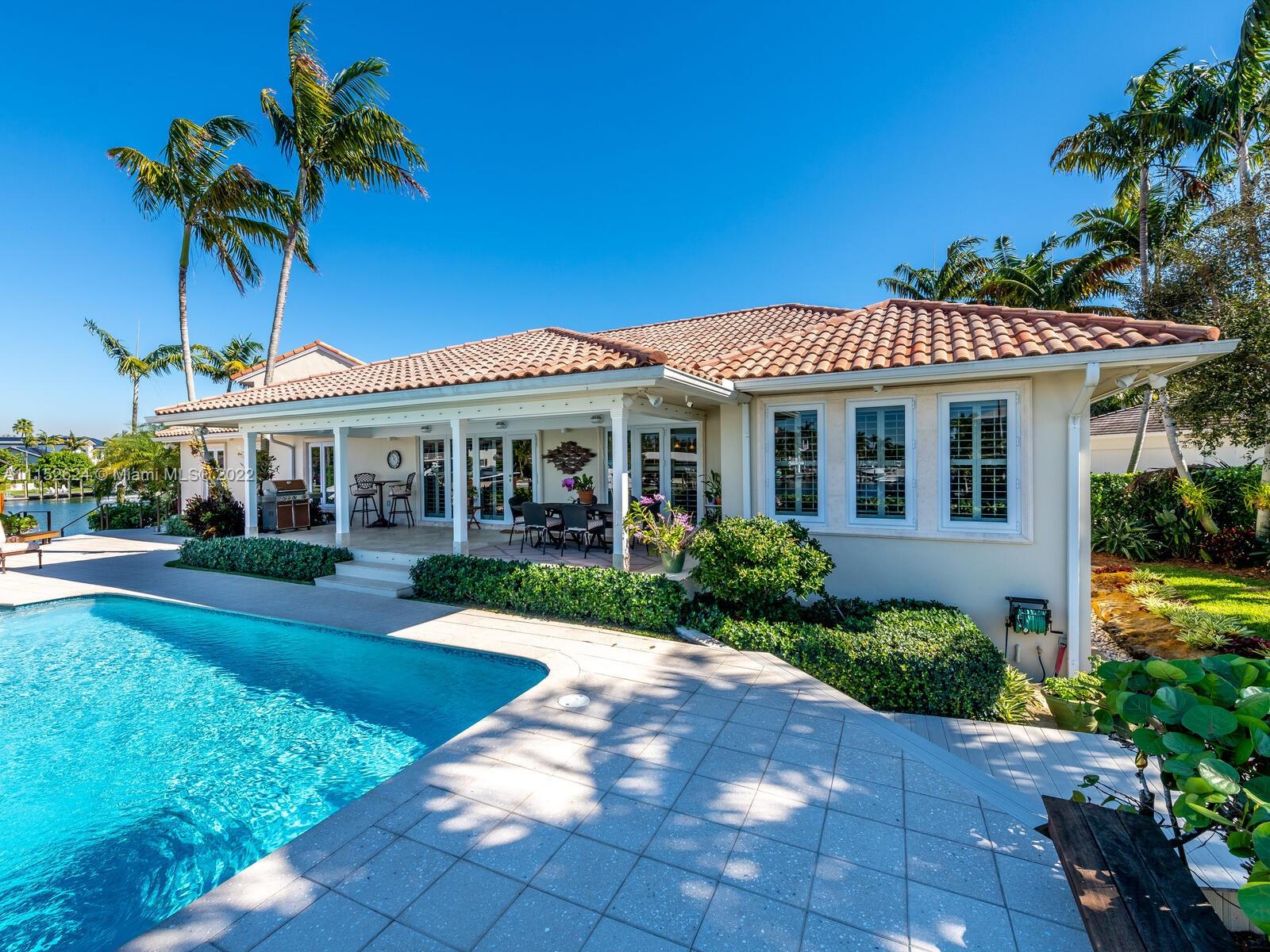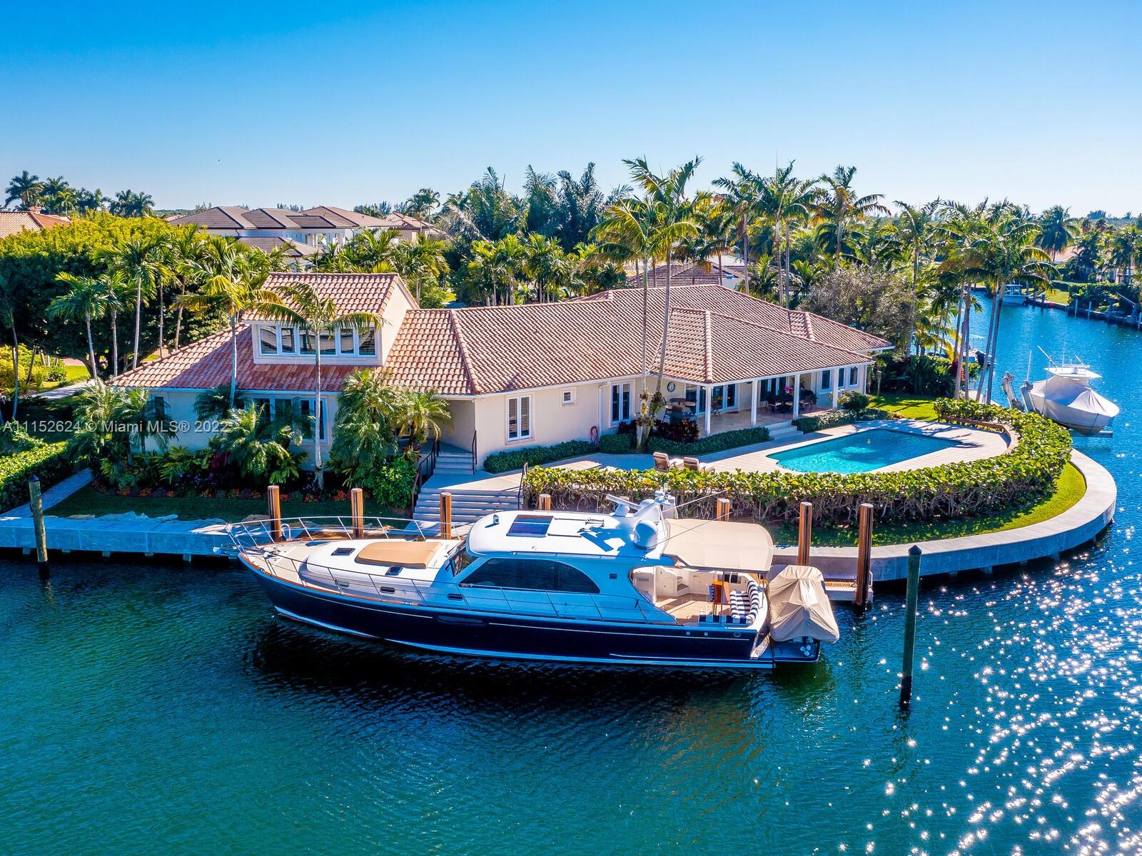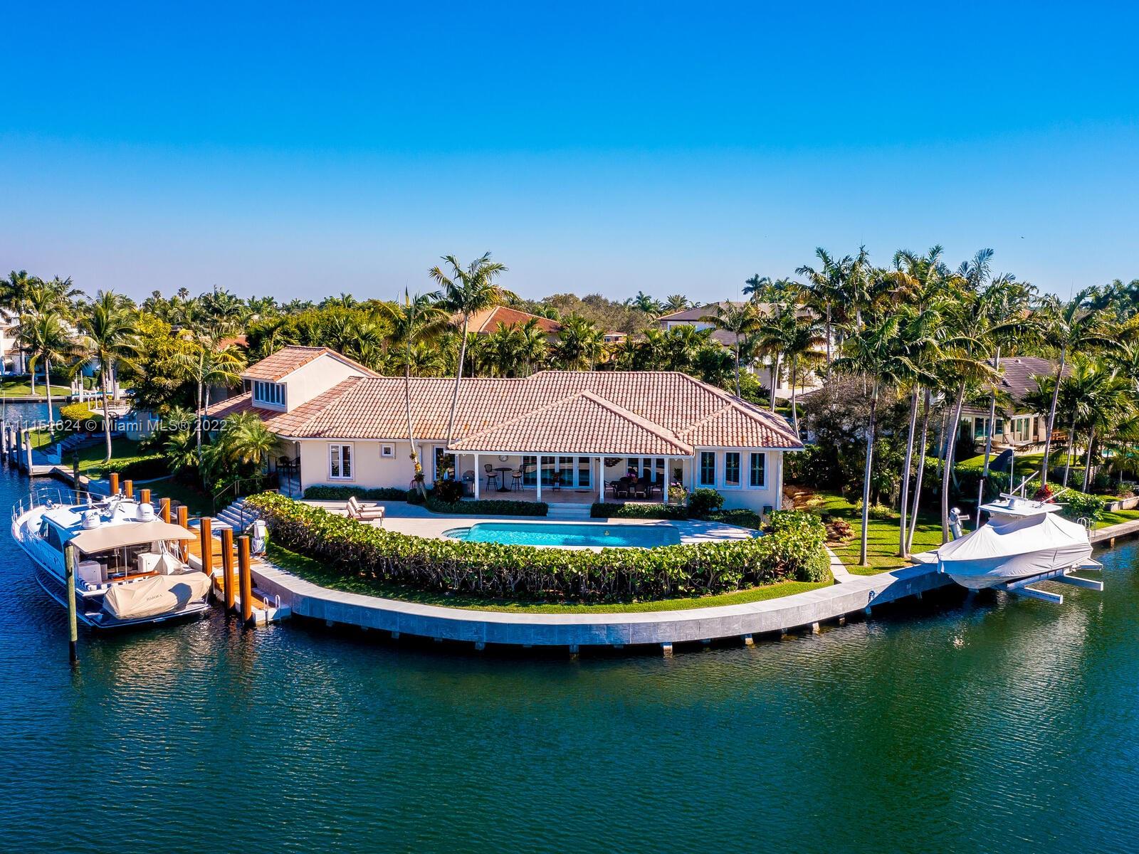 Serious boaters' home boasting 240' of prime water frontage on rarely avail 16k+ point lot in Gables by the Sea. Resort-style covered terrace/pool & meticulously landscaped gardens overlook expansive waterway w/new, raised seawall, 11 new mooring pilings, 60' dock, 20k lb boat lift & dedicated AC yacht utility rm. Updated Tommy Bahama style 4BD 4BA 1971 home features main floor bedrooms w/2nd level Captain's office overlooking the wide turning basin for easy navigation of 90' yacht. 2-car gar, generator, alarm system/cameras, tv's/speakers, custom cabinetry. Full impact doors/windows by La Finestra, 3-zone AC/s, separate laundry room & pantry, all PVC plumbing. Located in City Beautiful, Coral Gables w/access to the finest in schools, amenities and municipal services & neighborhood park.