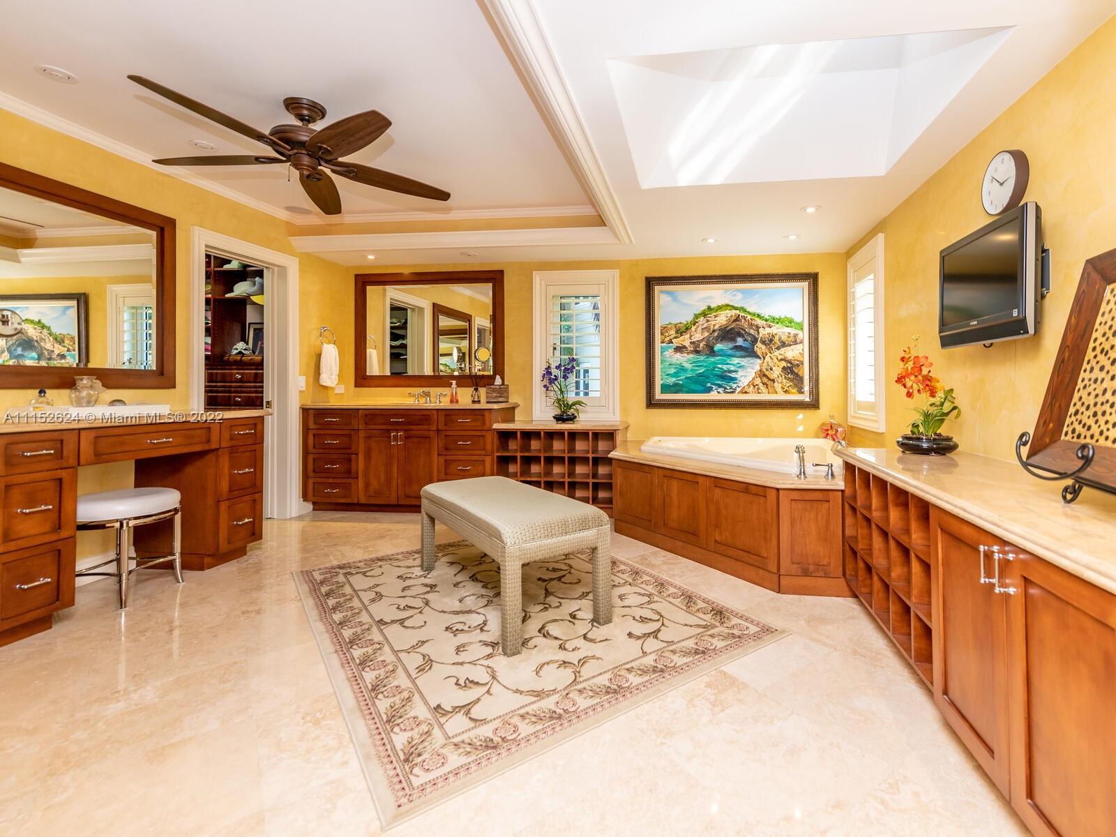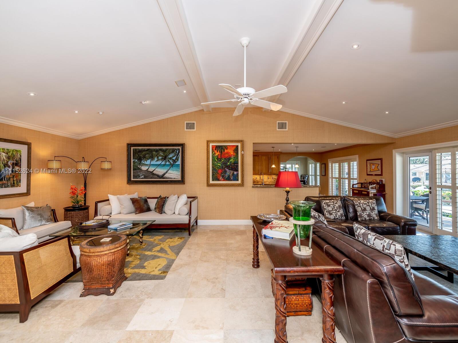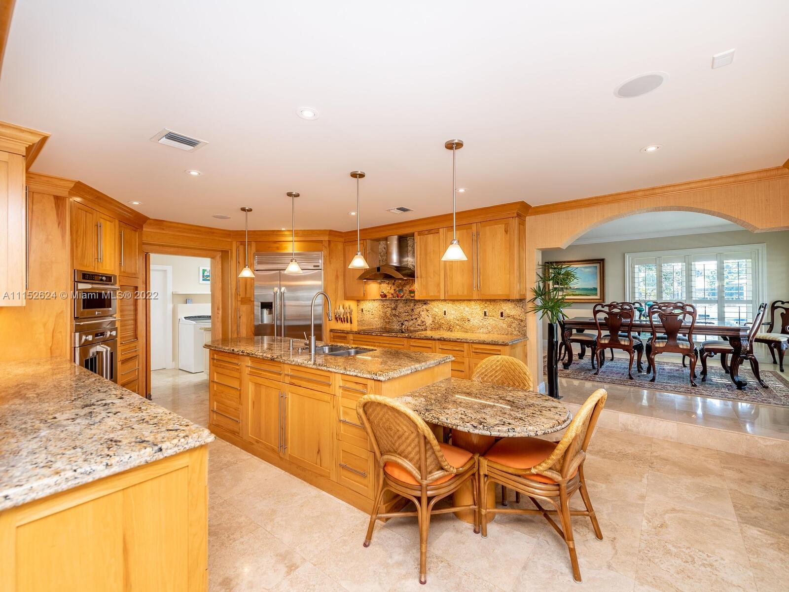 Serious boaters' home boasting 240' of prime water frontage on rarely avail 16k+ point lot in Gables by the Sea. Resort-style covered terrace/pool & meticulously landscaped gardens overlook expansive waterway w/new, raised seawall, 11 new mooring pilings, 60' dock, 20k lb boat lift & dedicated AC yacht utility rm. Updated Tommy Bahama style 4BD 4BA 1971 home features main floor bedrooms w/2nd level Captain's office overlooking the wide turning basin for easy navigation of 90' yacht. 2-car gar, generator, alarm system/cameras, tv's/speakers, custom cabinetry. Full impact doors/windows by La Finestra, 3-zone AC/s, separate laundry room & pantry, all PVC plumbing. Located in City Beautiful, Coral Gables w/access to the finest in schools, amenities and municipal services & neighborhood park.